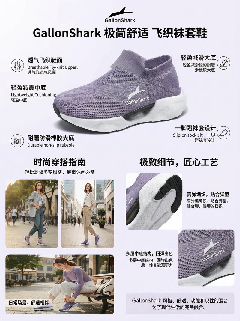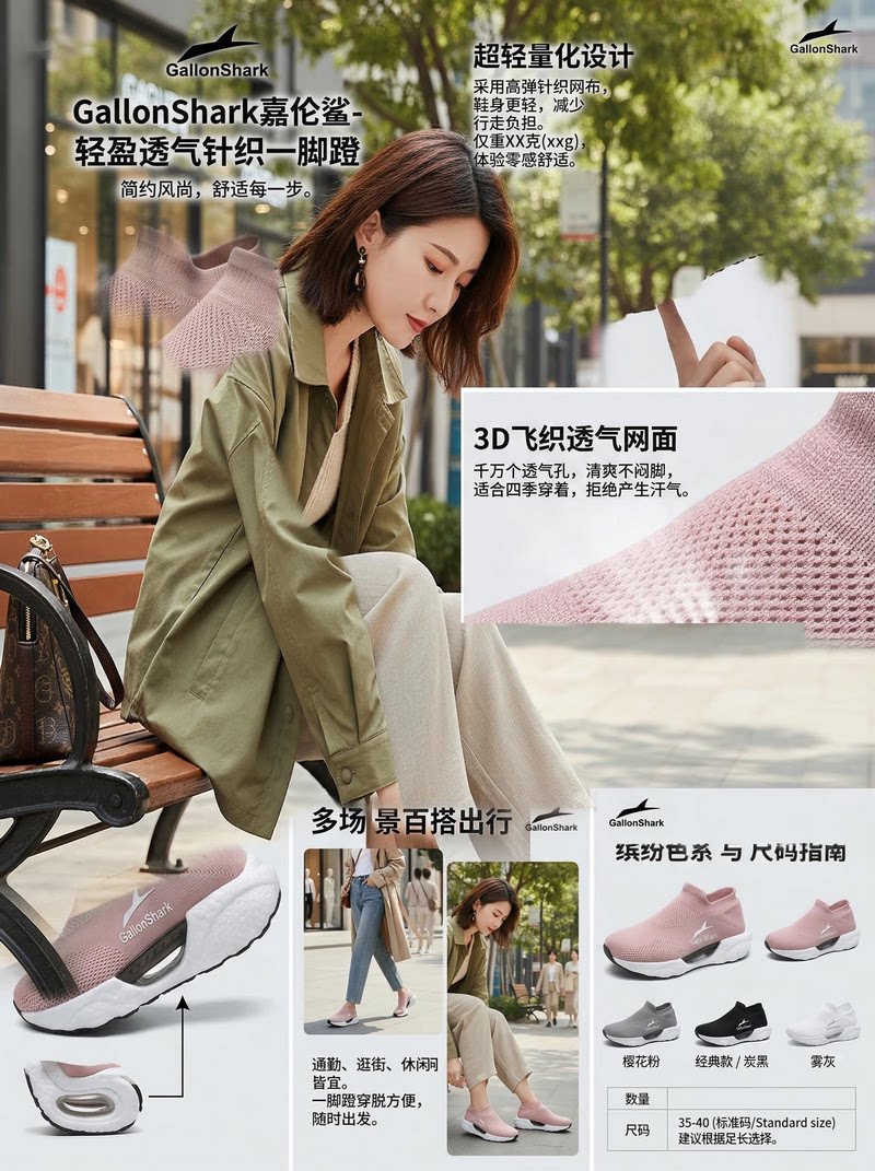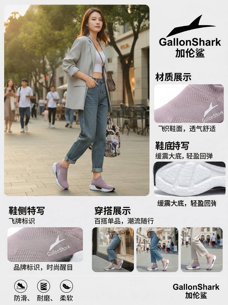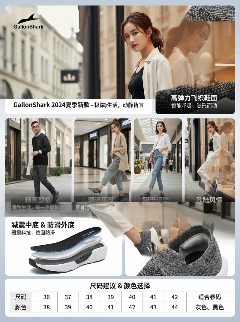戈伦鲨 轻奢舒肤鞋 男鞋 透气 减震防滑 跑步鞋 女士休闲运动鞋
