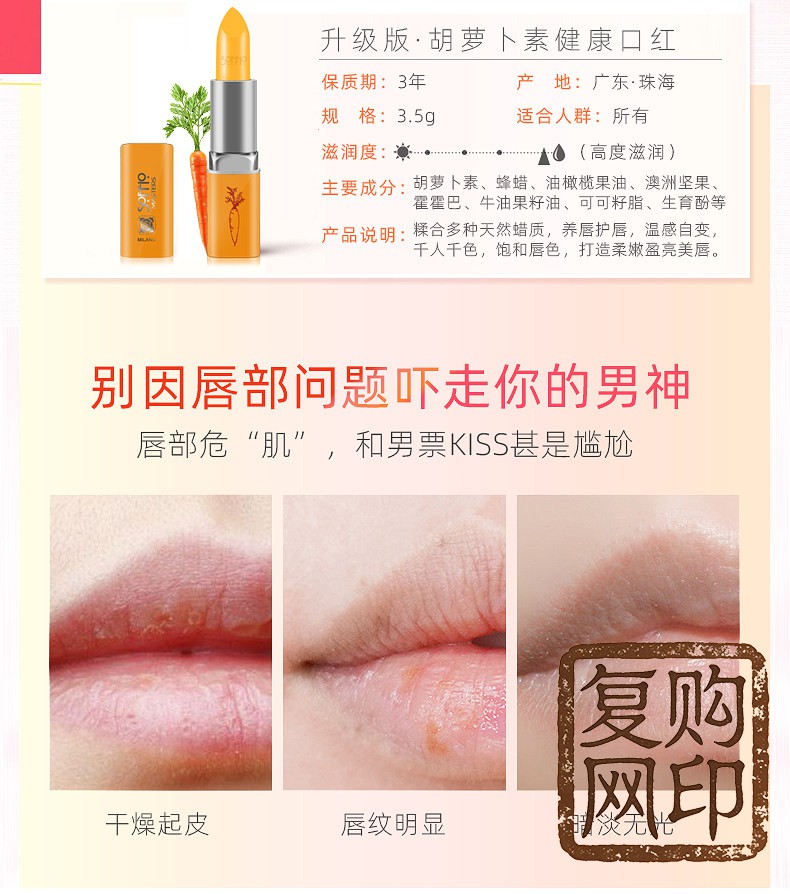 索菲欧 胡萝卜素 变色唇膏 孕妇用 素颜 防干裂 保湿 补水 滋润 温变口红