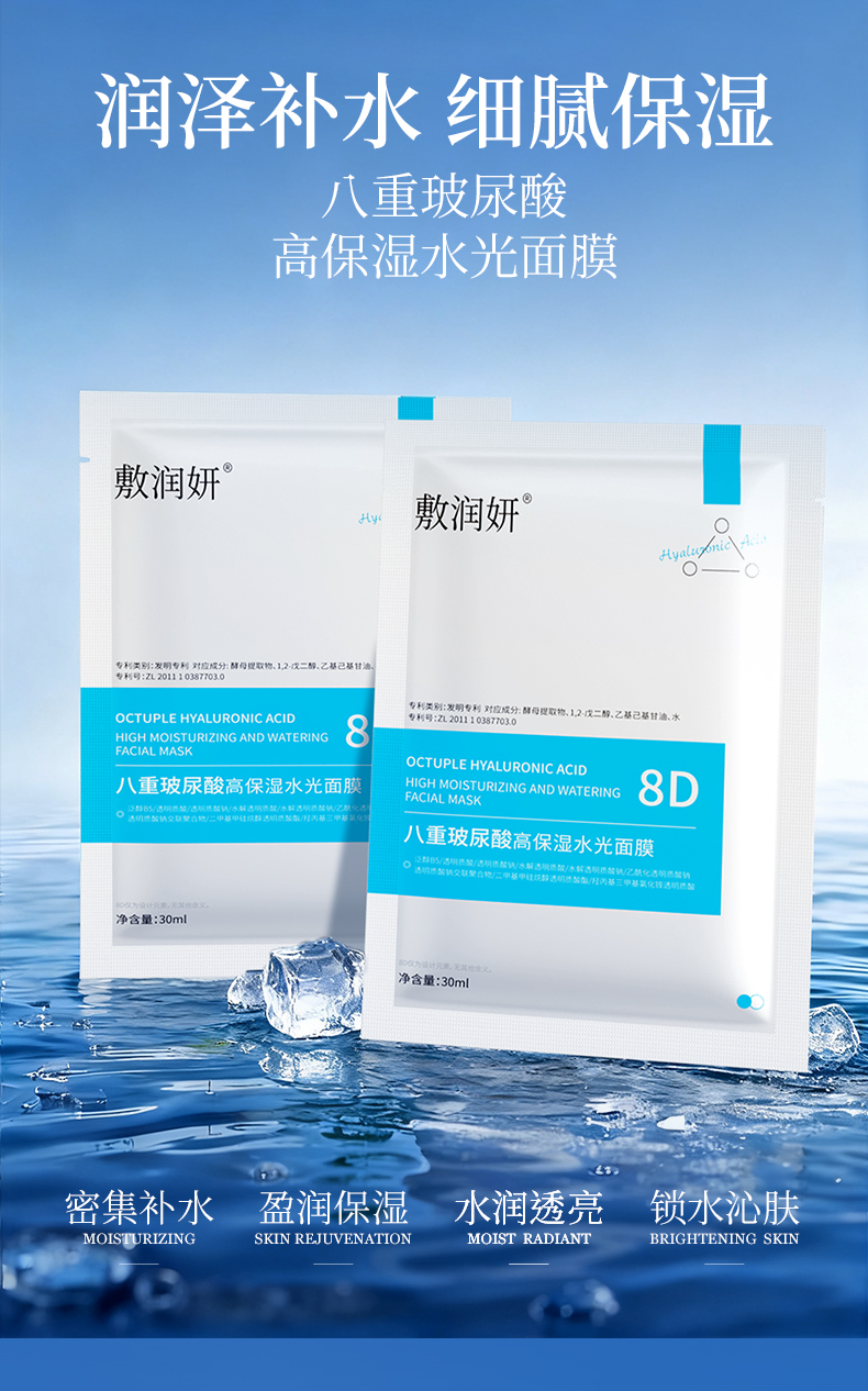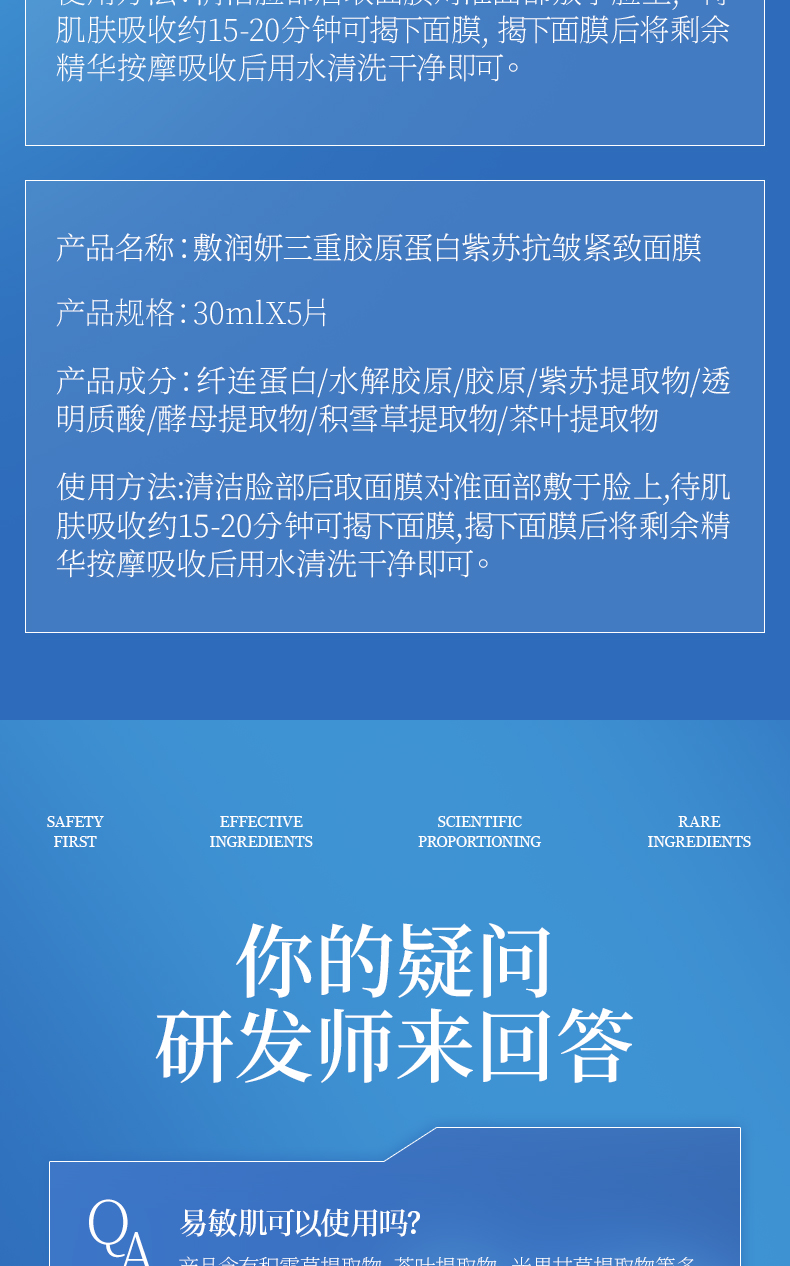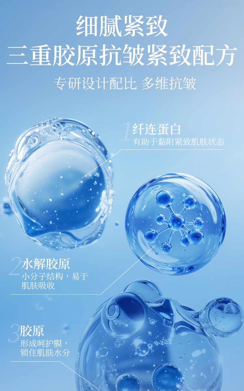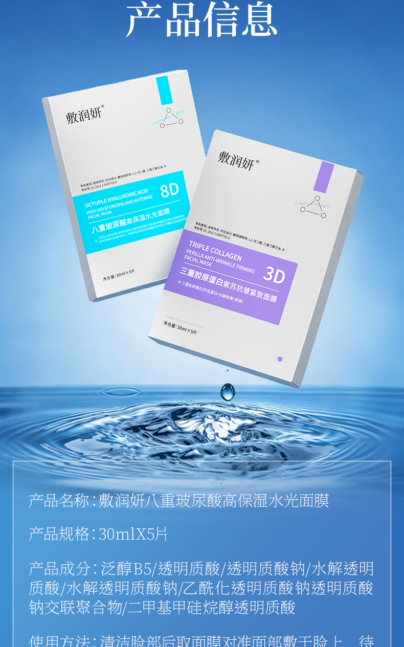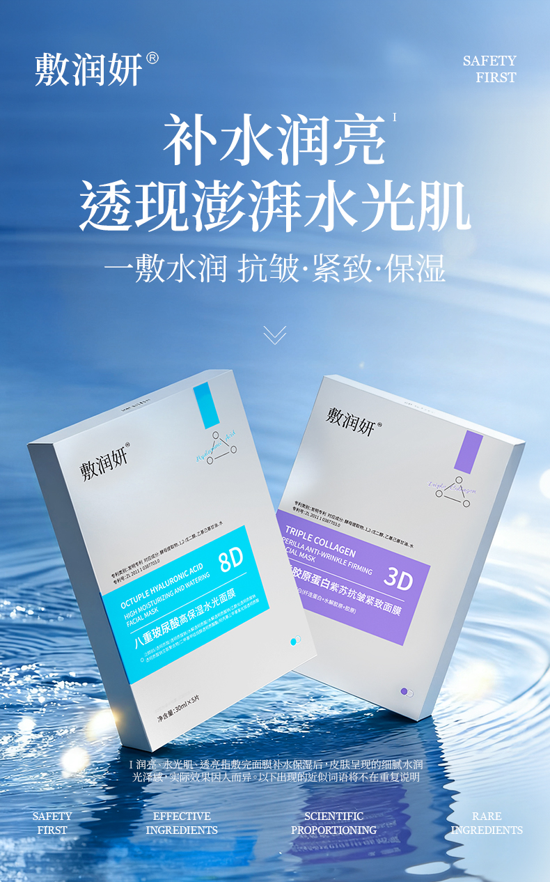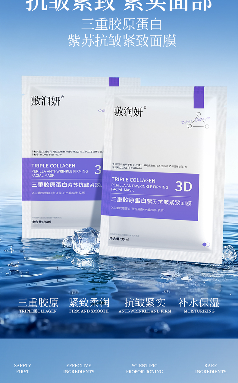 敷润妍、三重胶原蛋白面膜、抗皱紧致、保湿补水、泛醇B5、透明质酸、积雪草