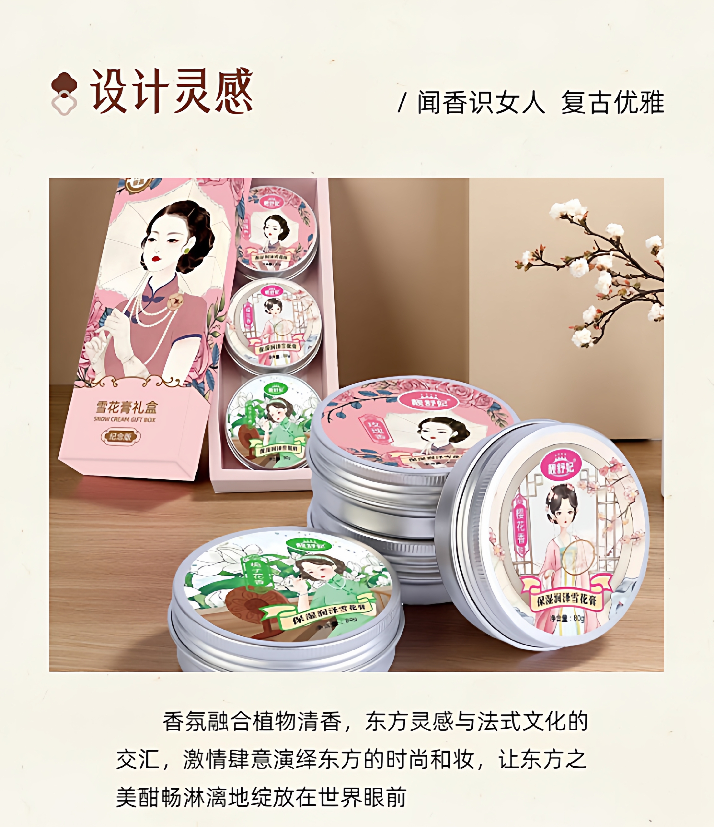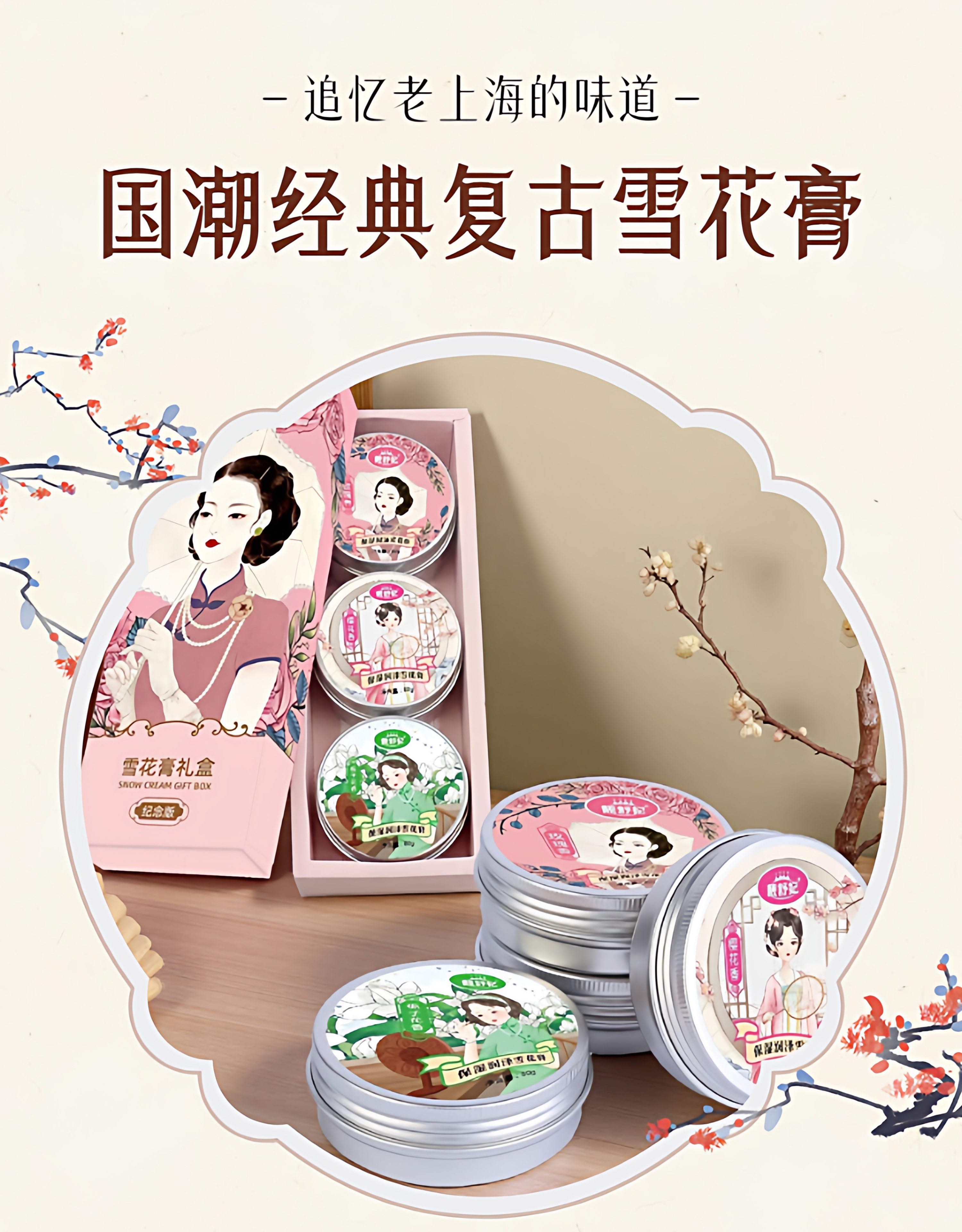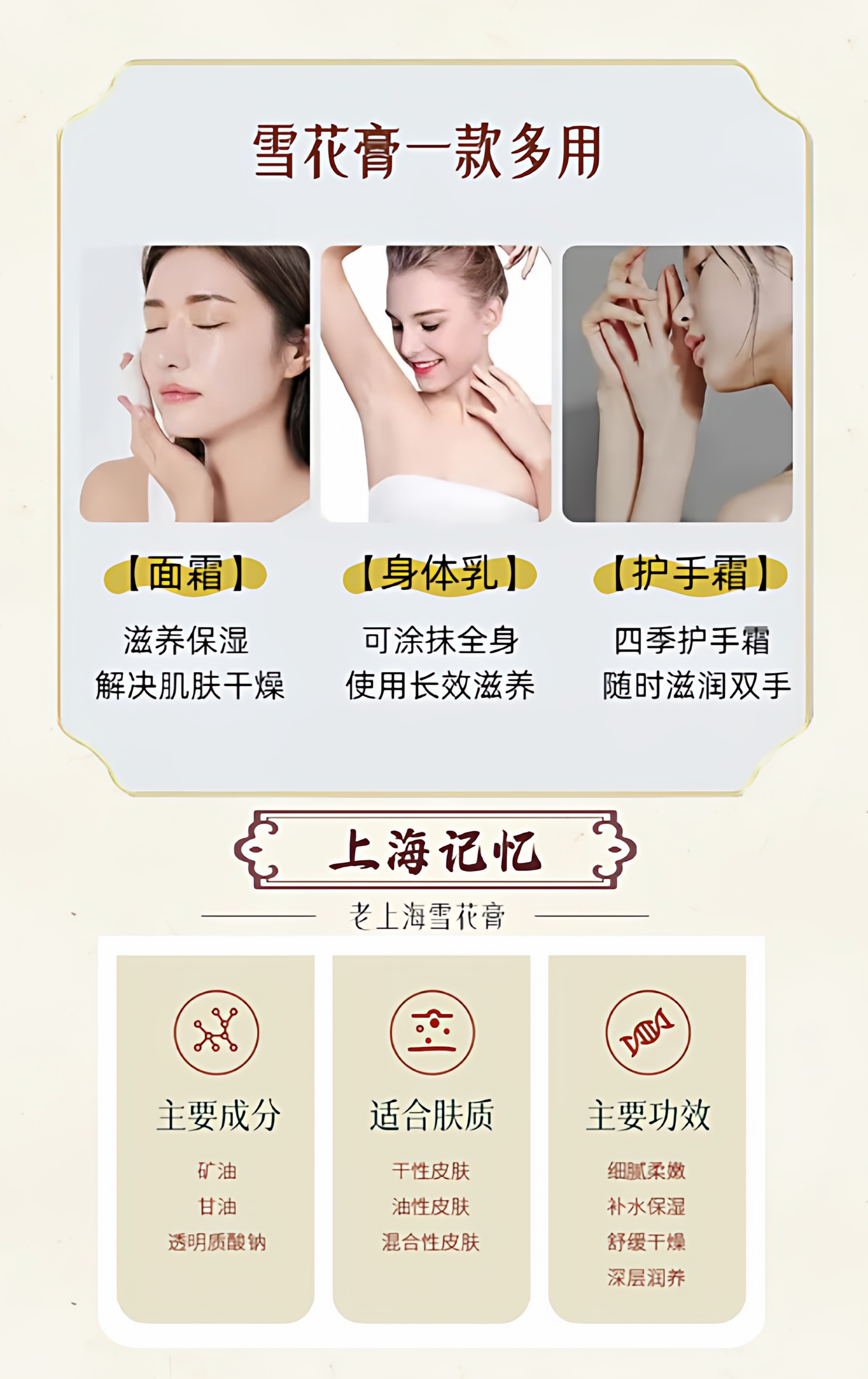 国货经典、复古雪花膏、补水保湿、润肤霜、温和配方、手足防裂