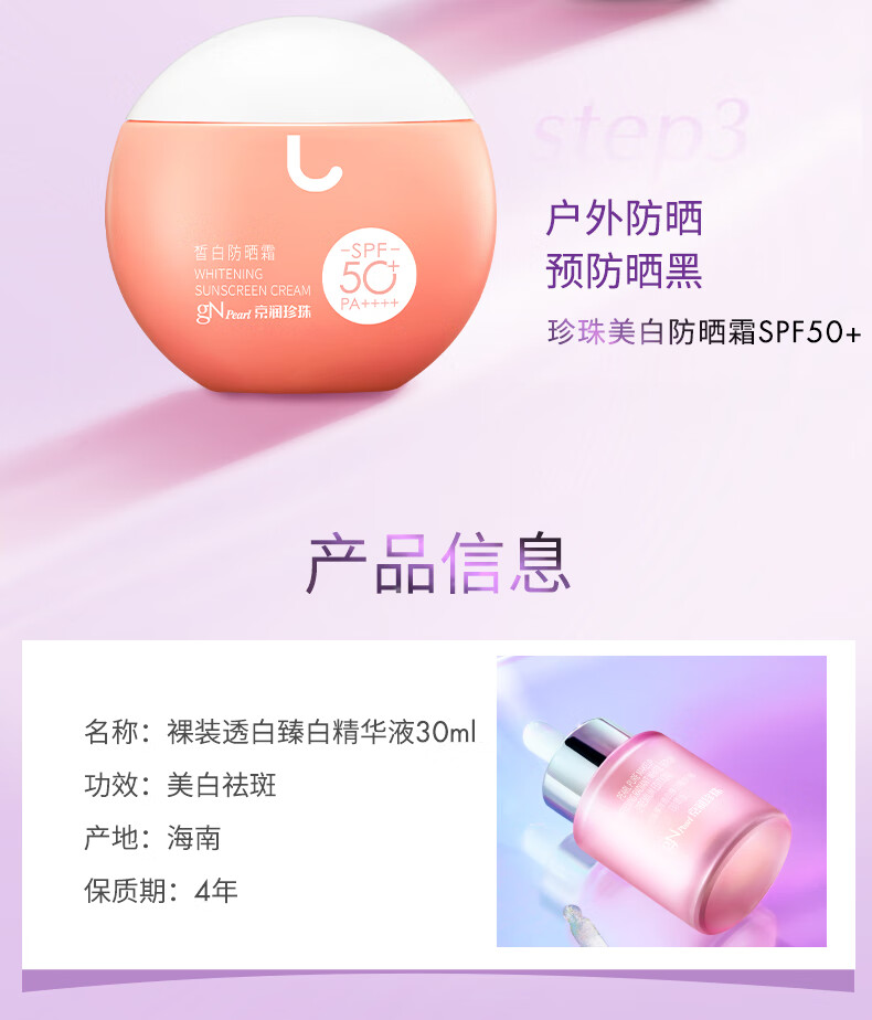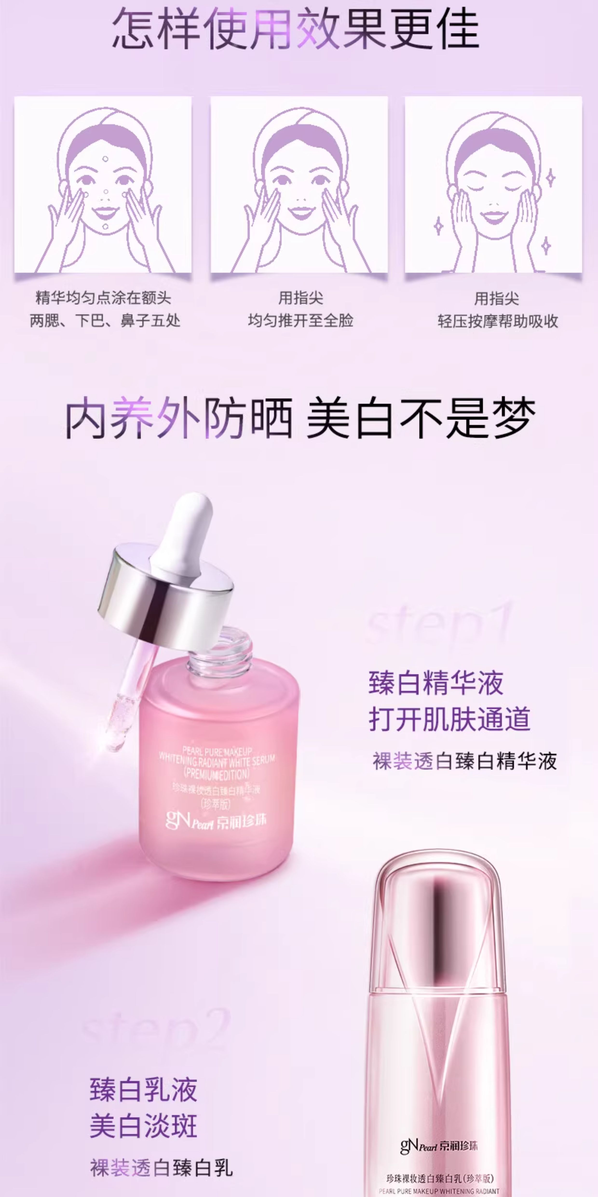 京润珍珠、裸妆透白、臻白精华液、30g、美白补水、提亮肤色