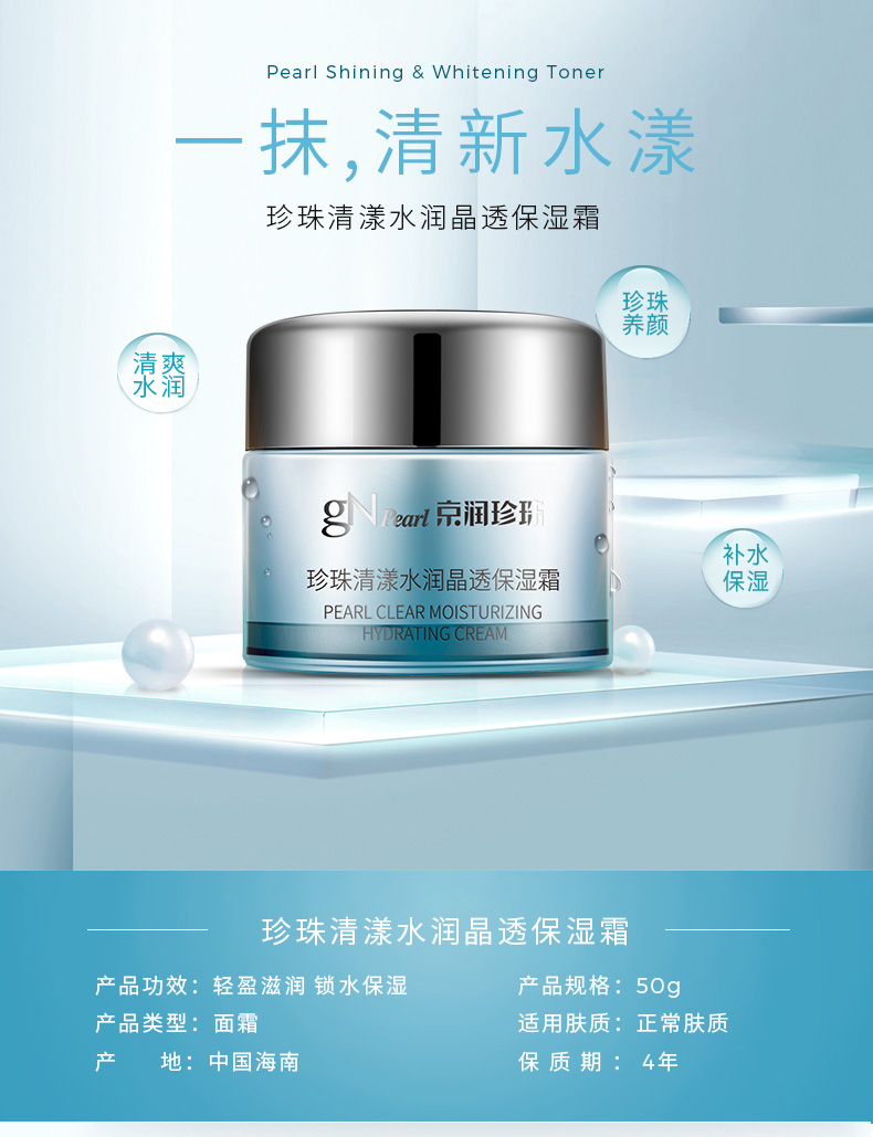 gN Pearl、京润珍珠、清漾水润保湿霜、50g、补水滋润、老国货、正品面霜