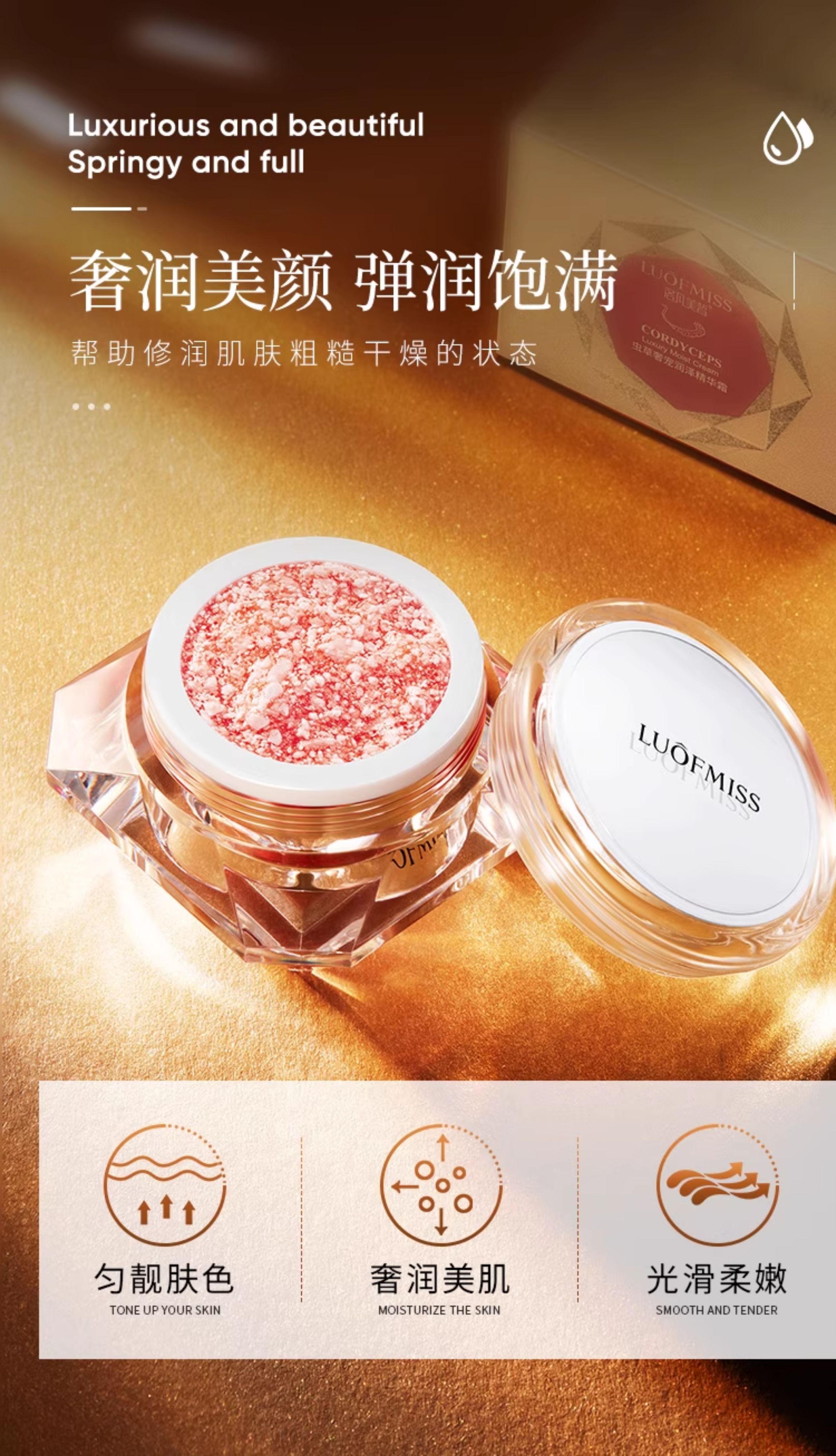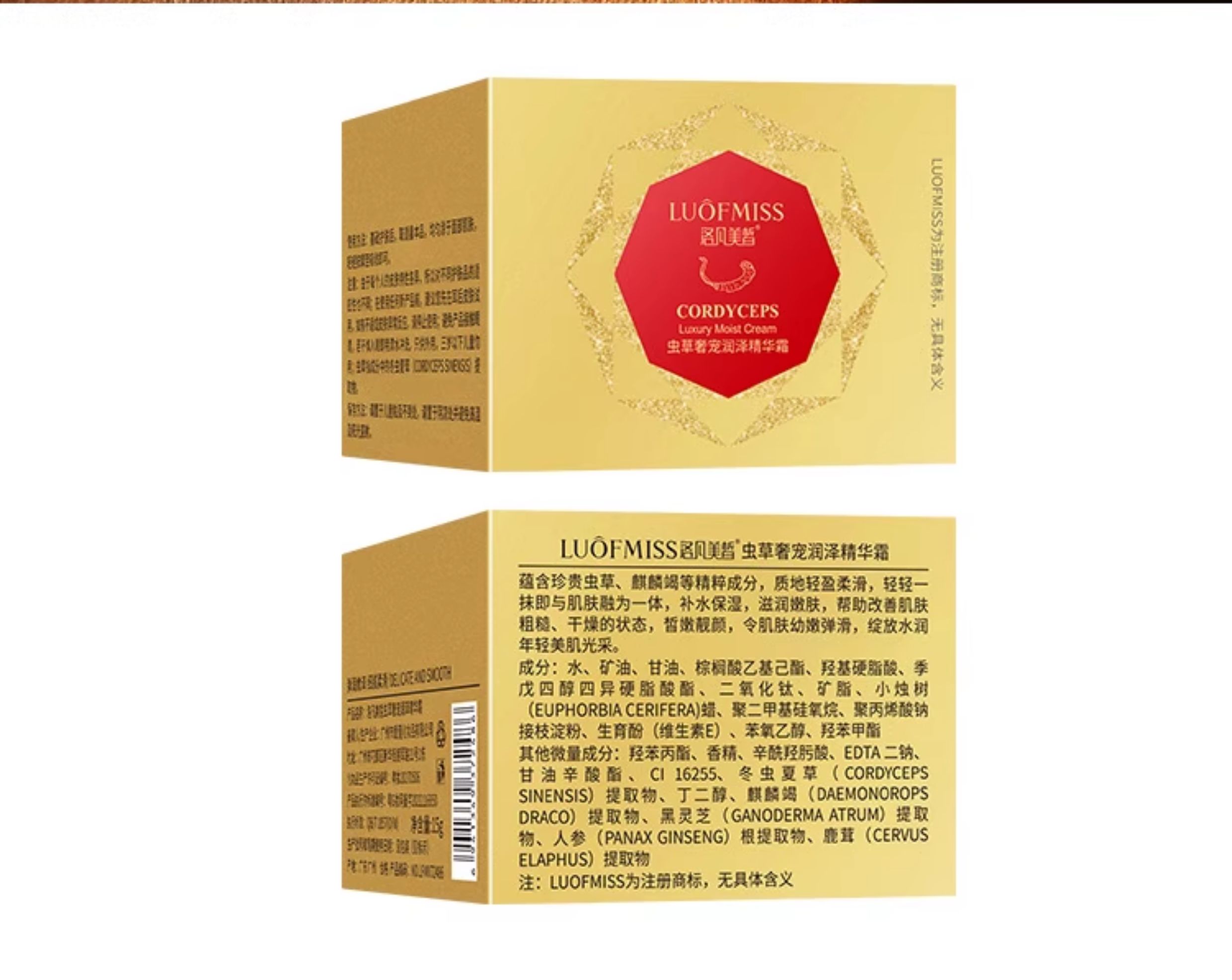 luofmiss、虫草润泽精华霜、龙血膏、遮瑕面霜、补水保湿、素颜霜、发3件