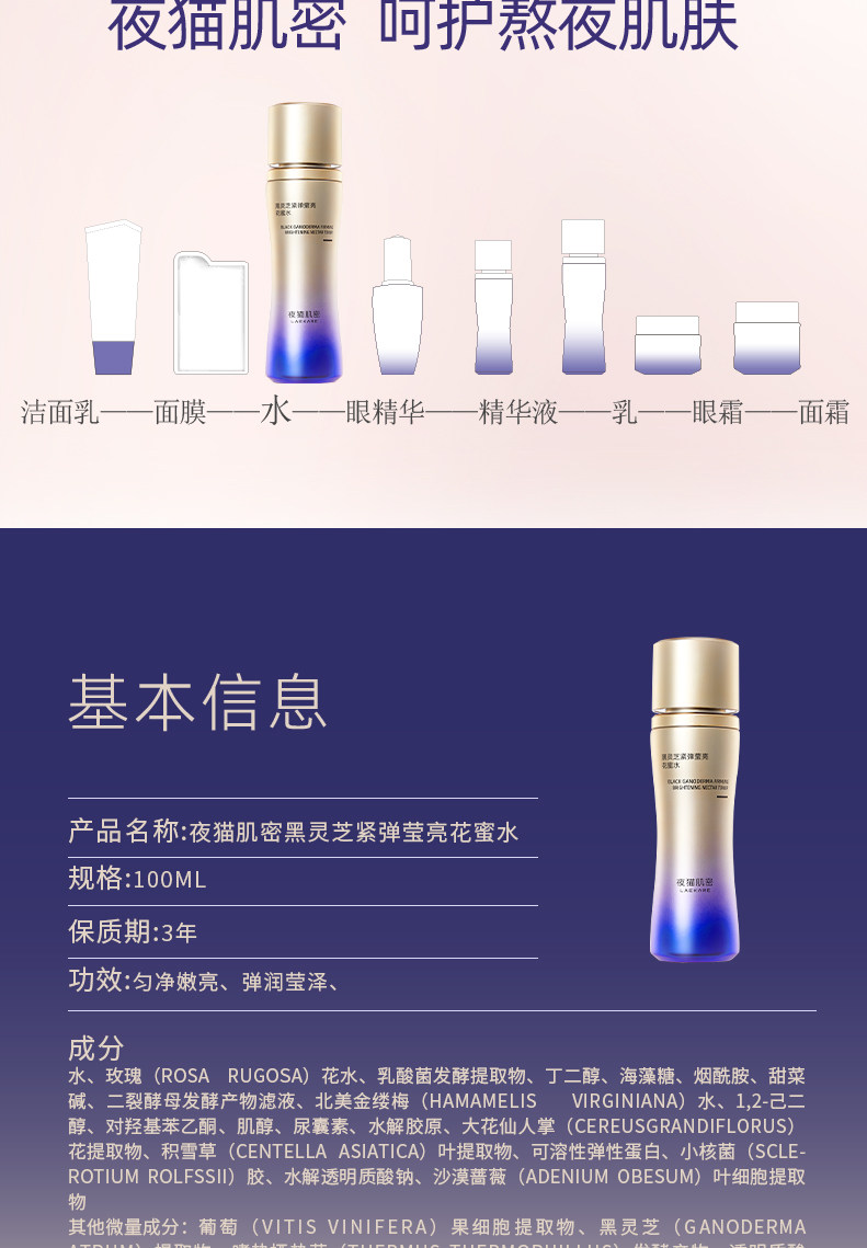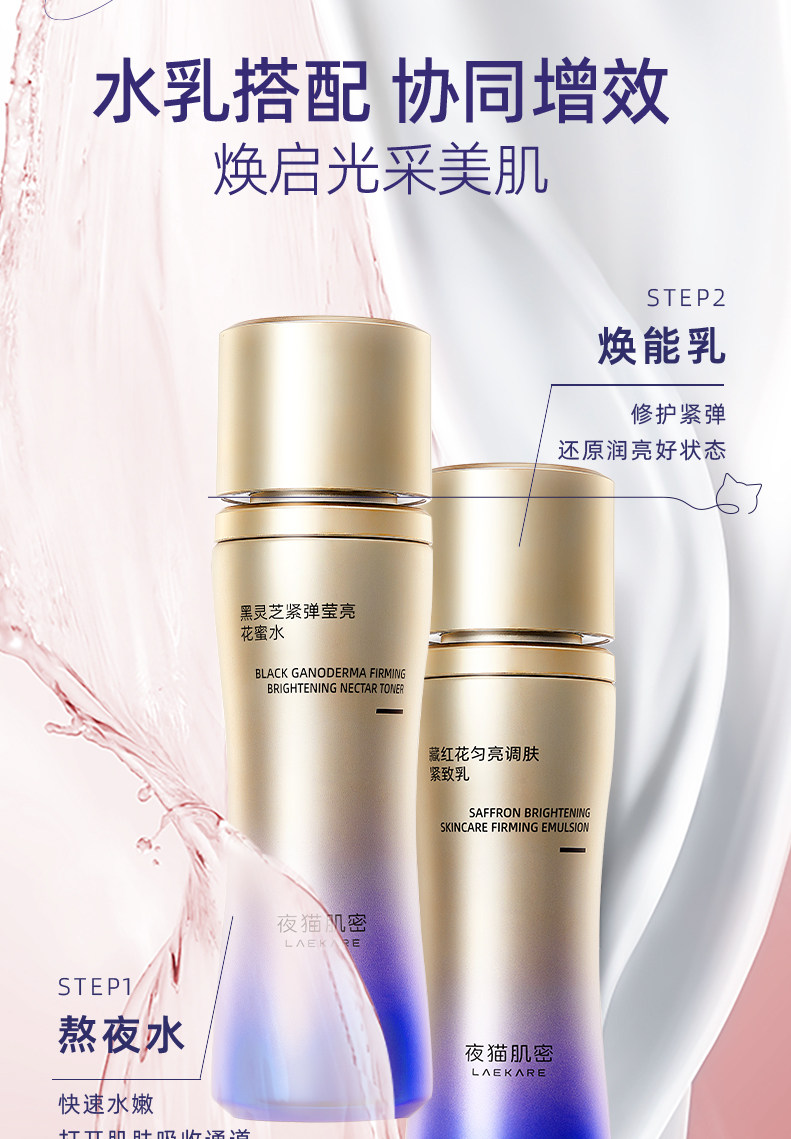 夜猫肌密水乳套装、抗皱、紧致、提亮、补水保湿、熬夜护肤、化妆品套装