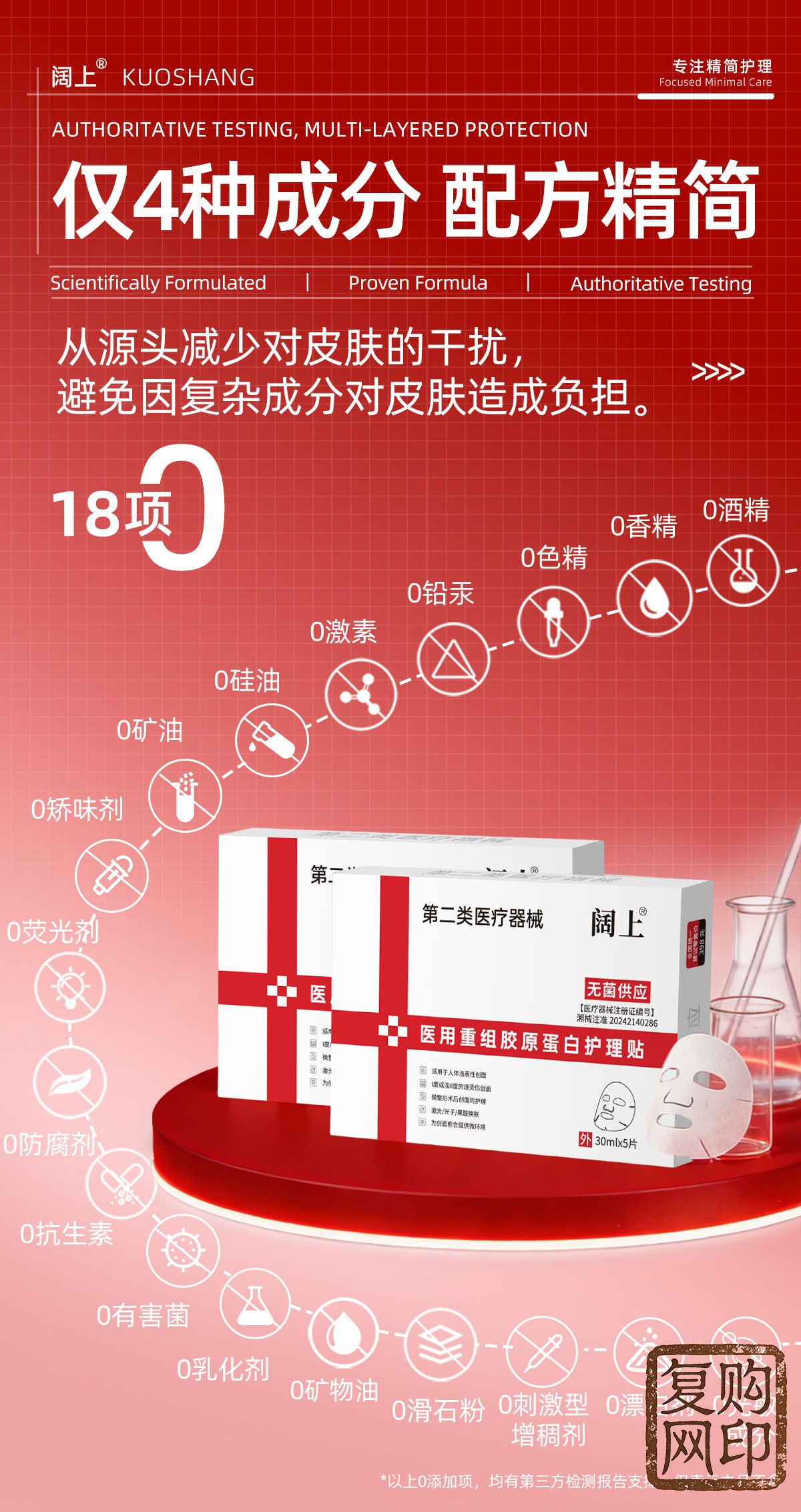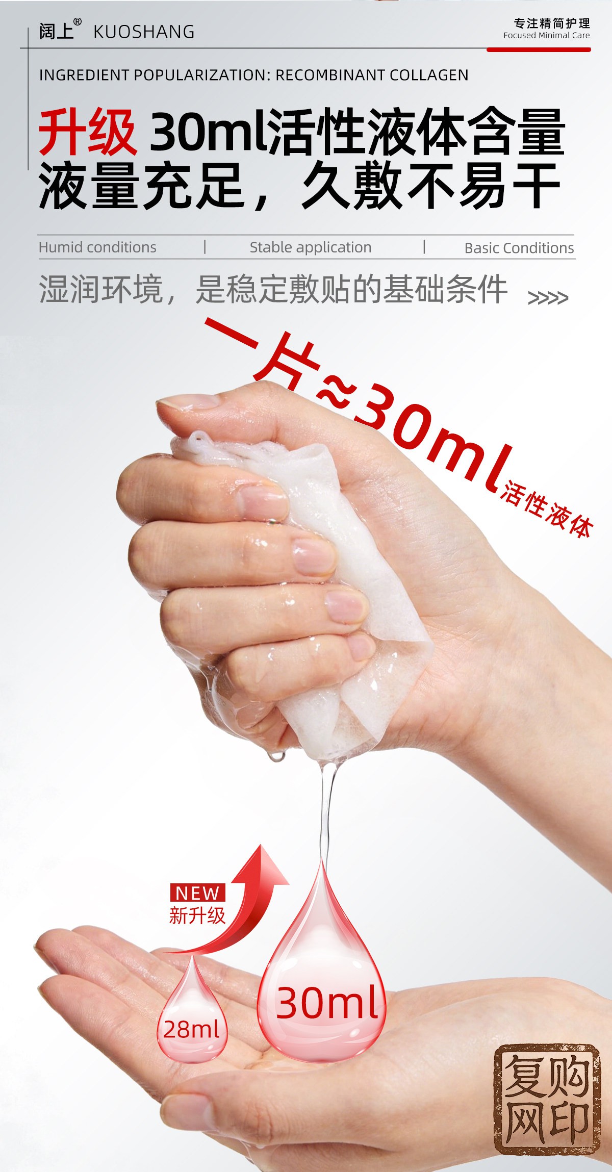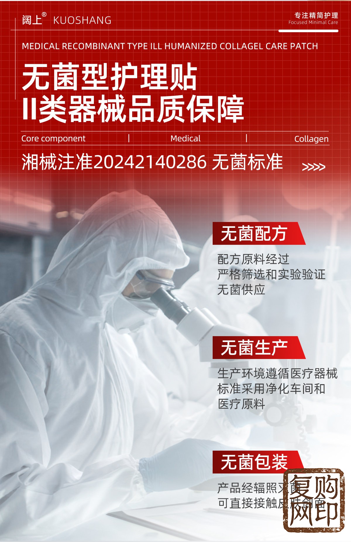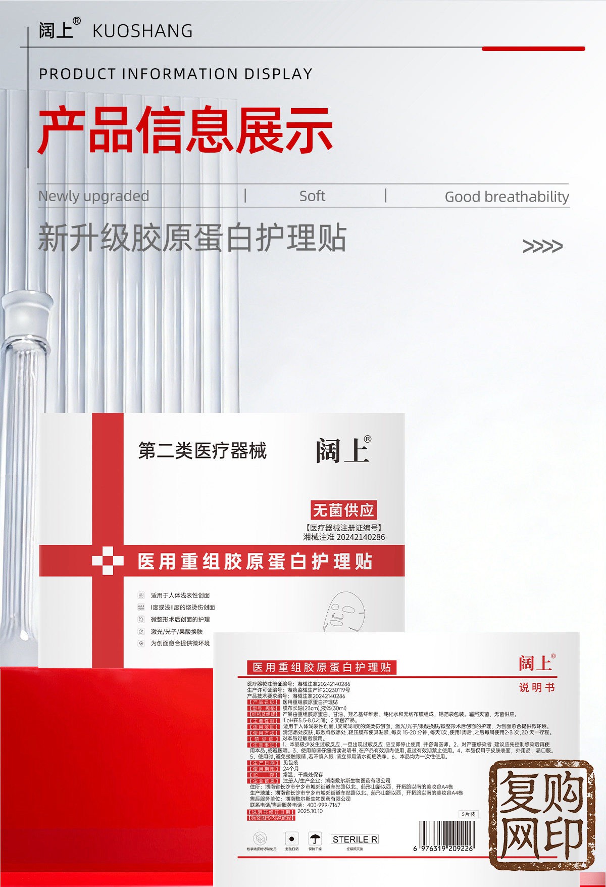 阔上医用重组胶原蛋白护理贴敷贴面部修护护理膜冷敷贴