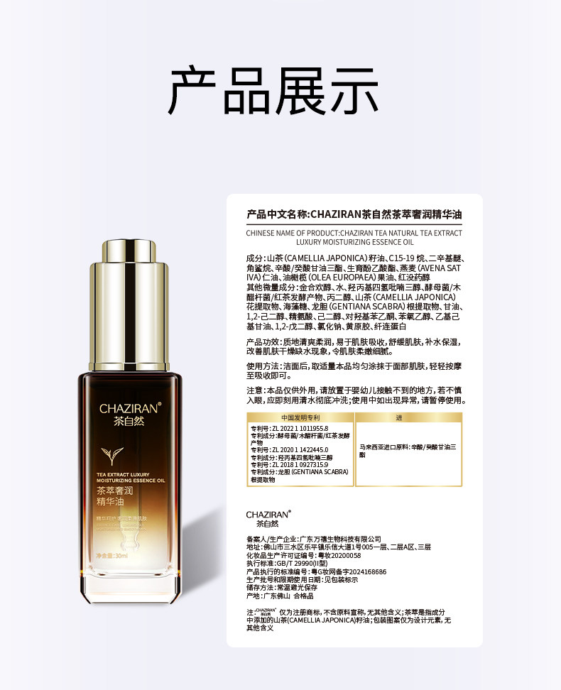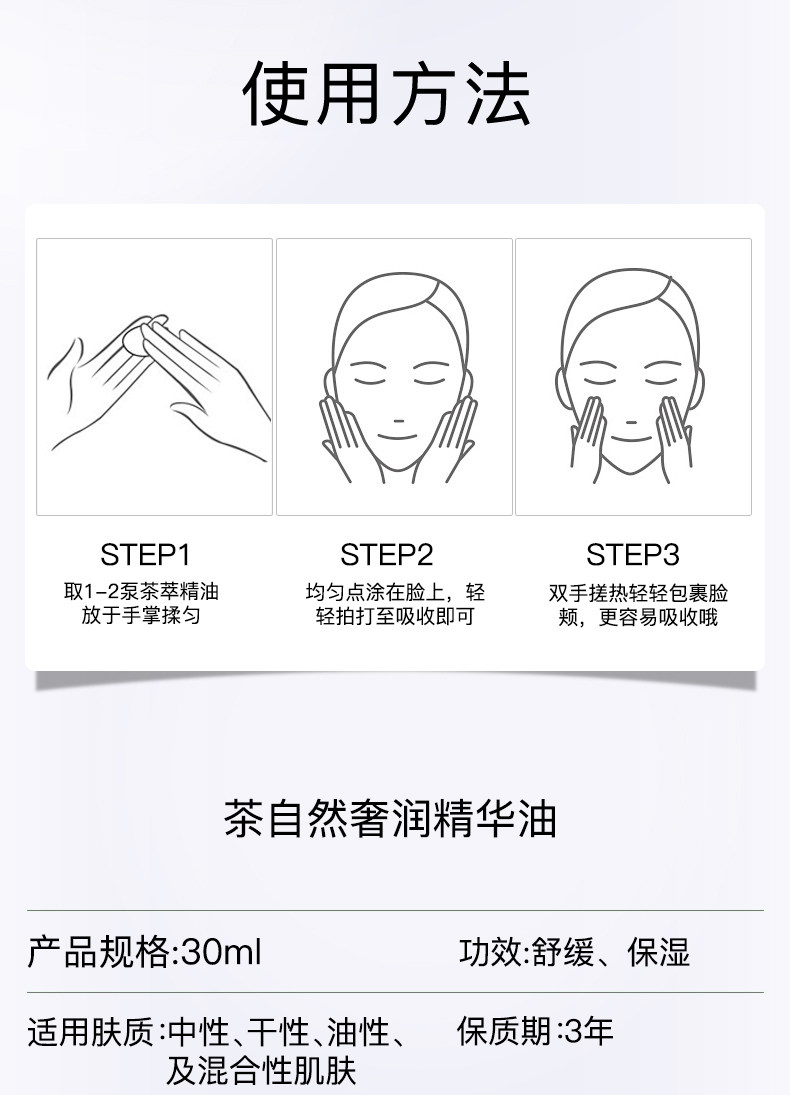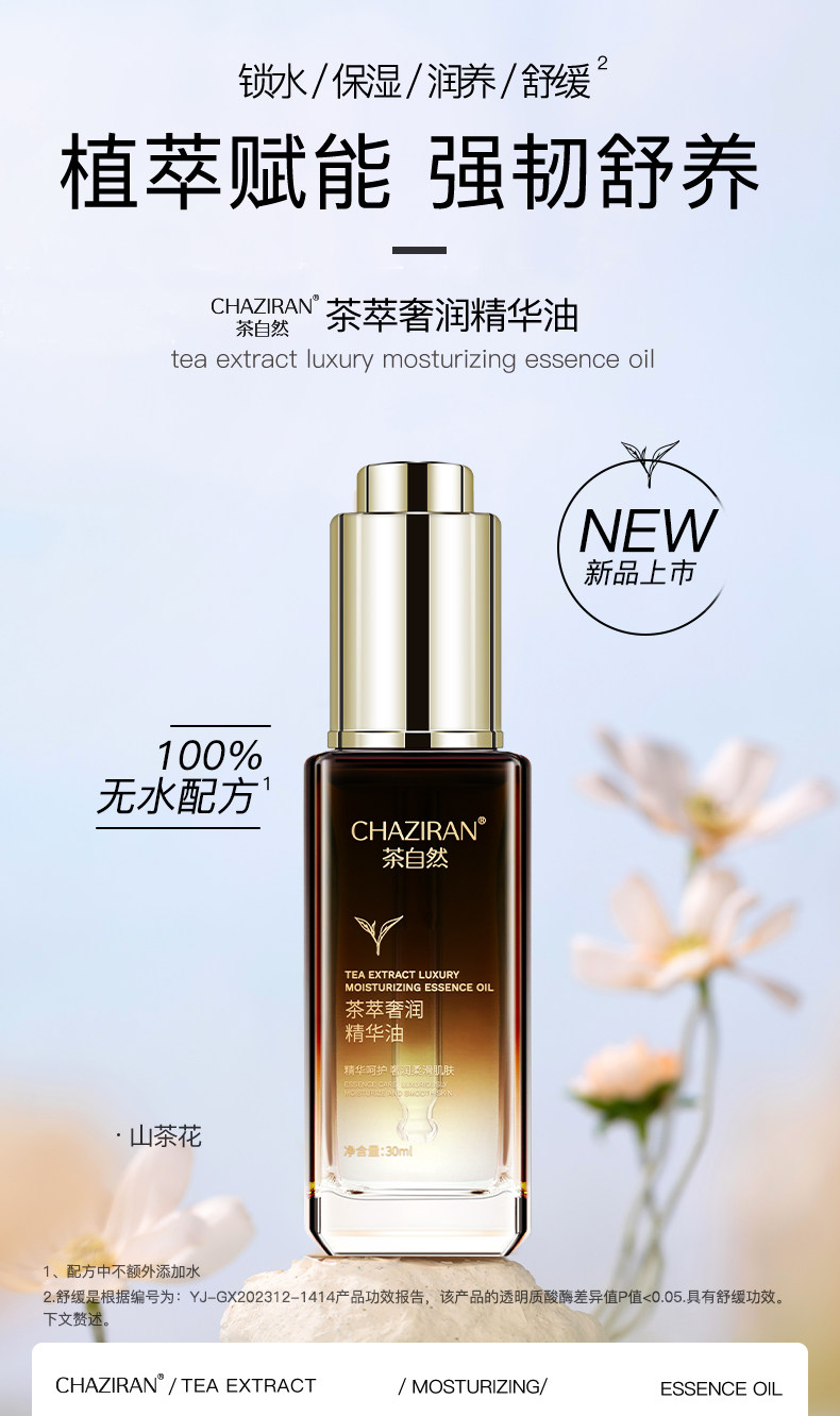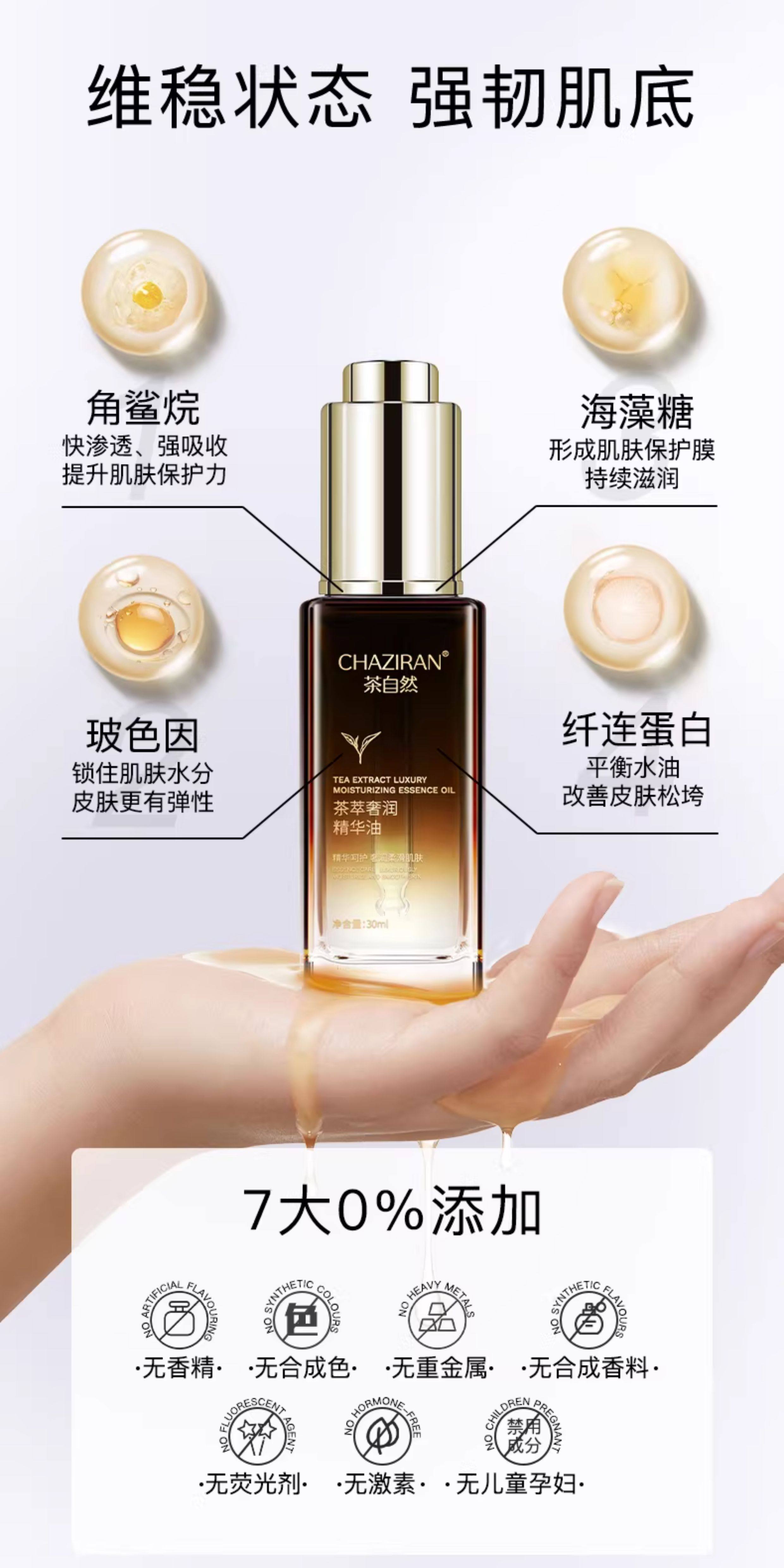 茶自然茶萃奢润精华油山茶花保湿舒缓面部精油角鲨烷玻色因护肤品