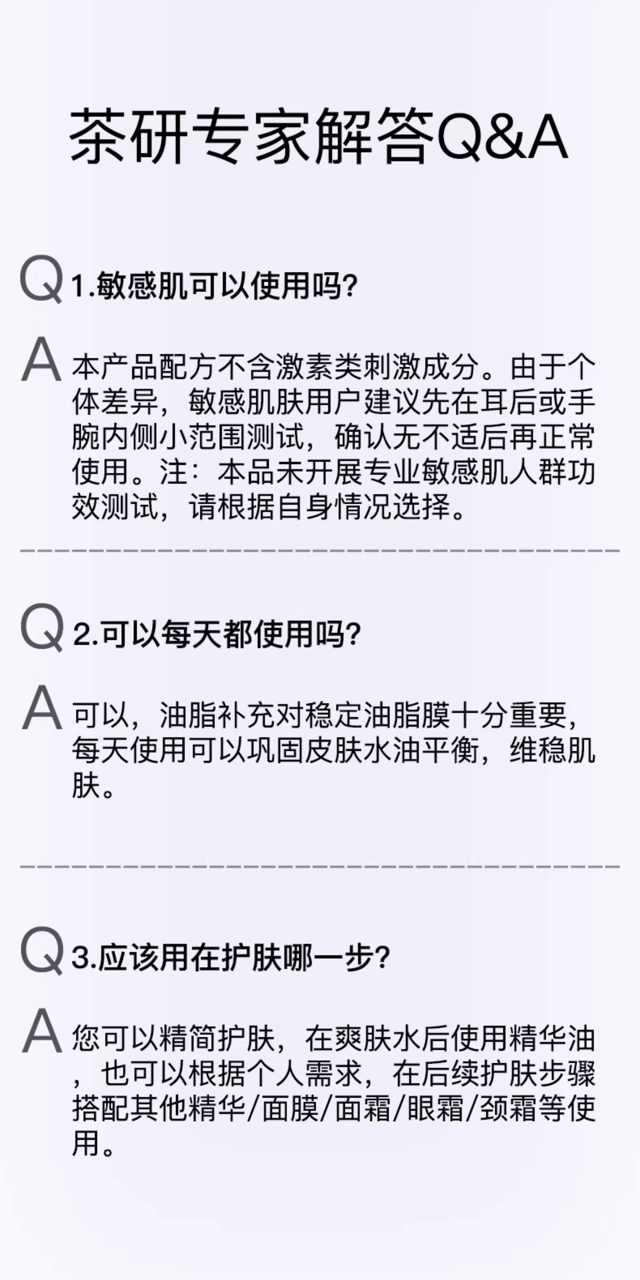 茶自然、茶萃奢润精华油、山茶花、保湿舒缓、面部精油、角鲨烷玻色因