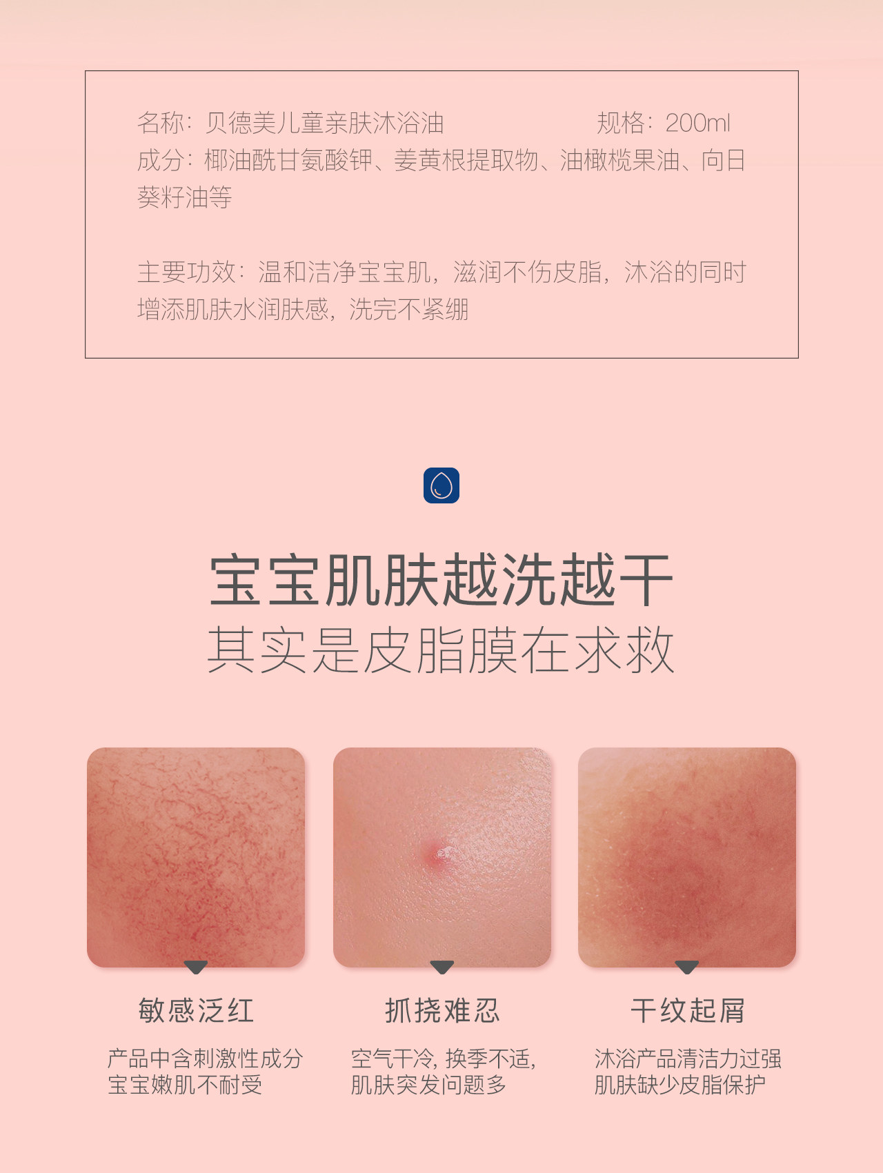 贝德美儿童沐浴油宝宝专用沐浴露二合一秋冬季婴儿洗澡沐浴身体油