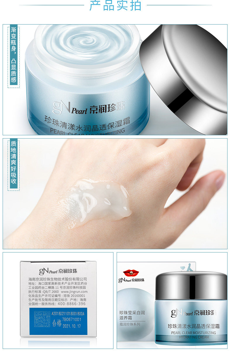 京润珍珠、清漾水润晶透保湿霜、补水保湿、滋润乳液、护肤品
