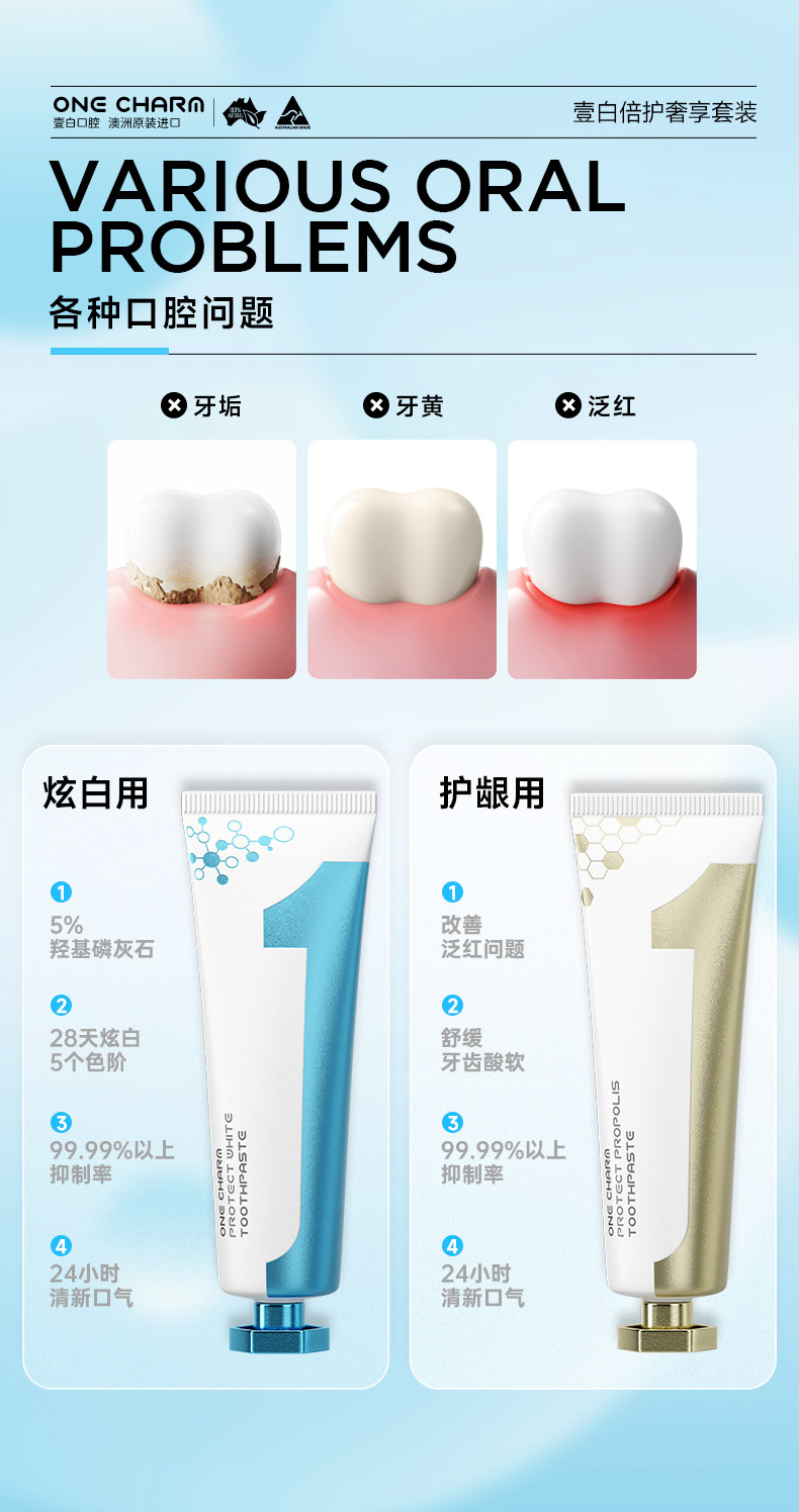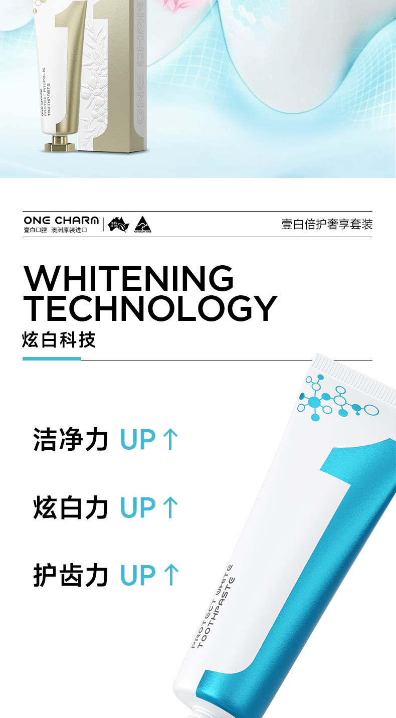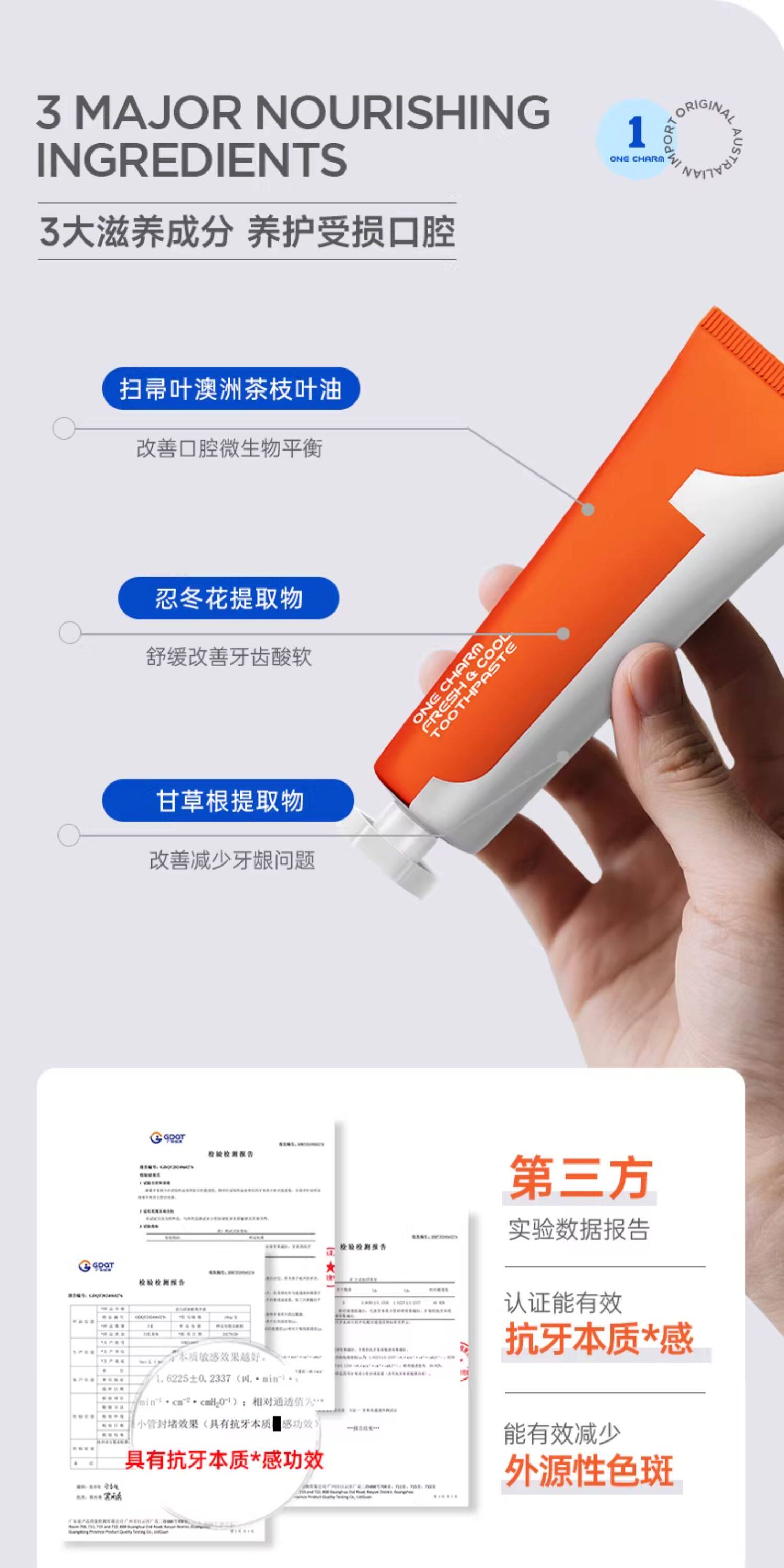 OneCharm壹白牙膏、澳大利亚进口、持久清新、防酸舒缓、冷热酸甜