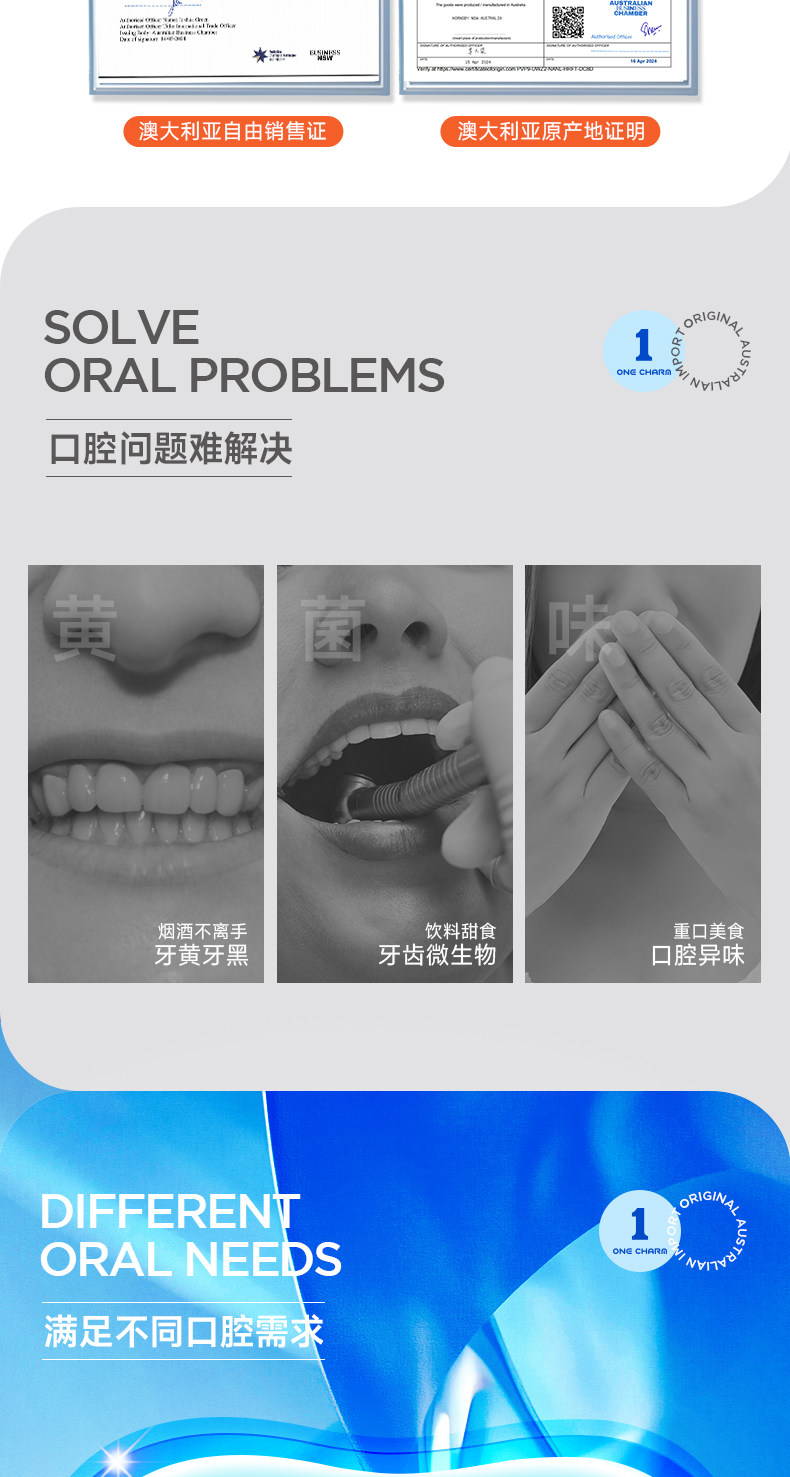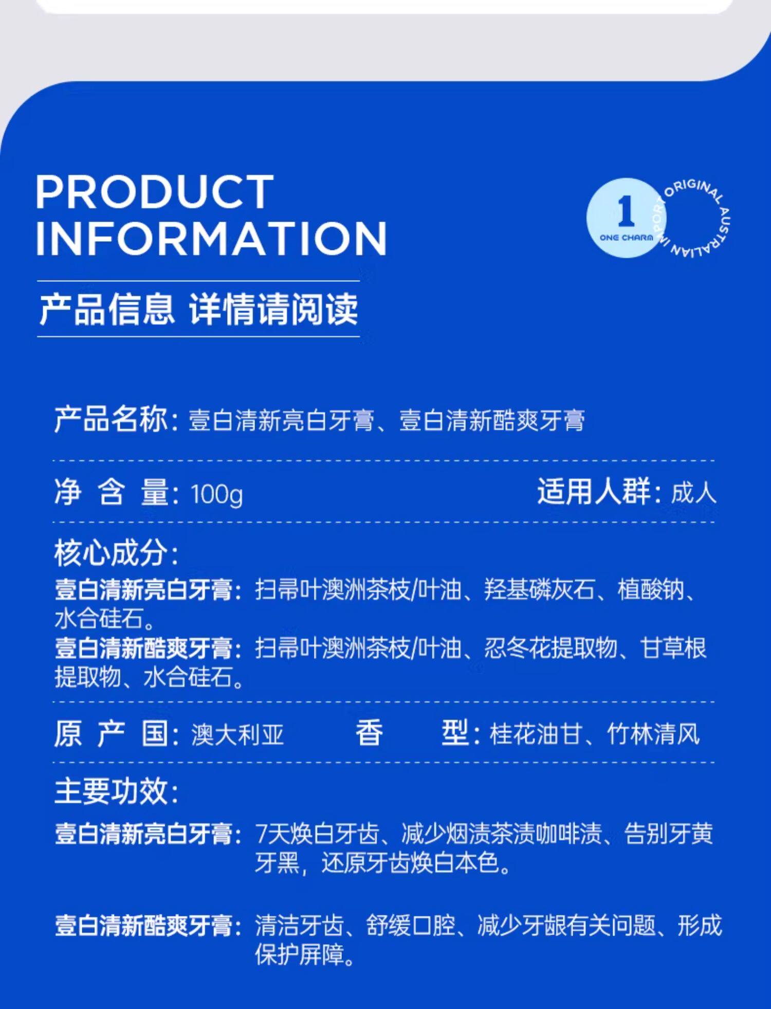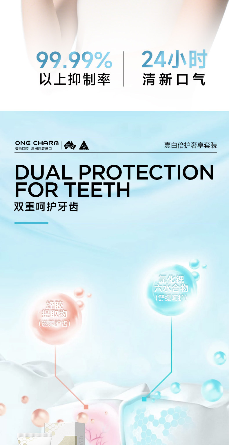 OneCharm壹白牙膏、澳大利亚进口、持久清新、防酸舒缓、冷热酸甜