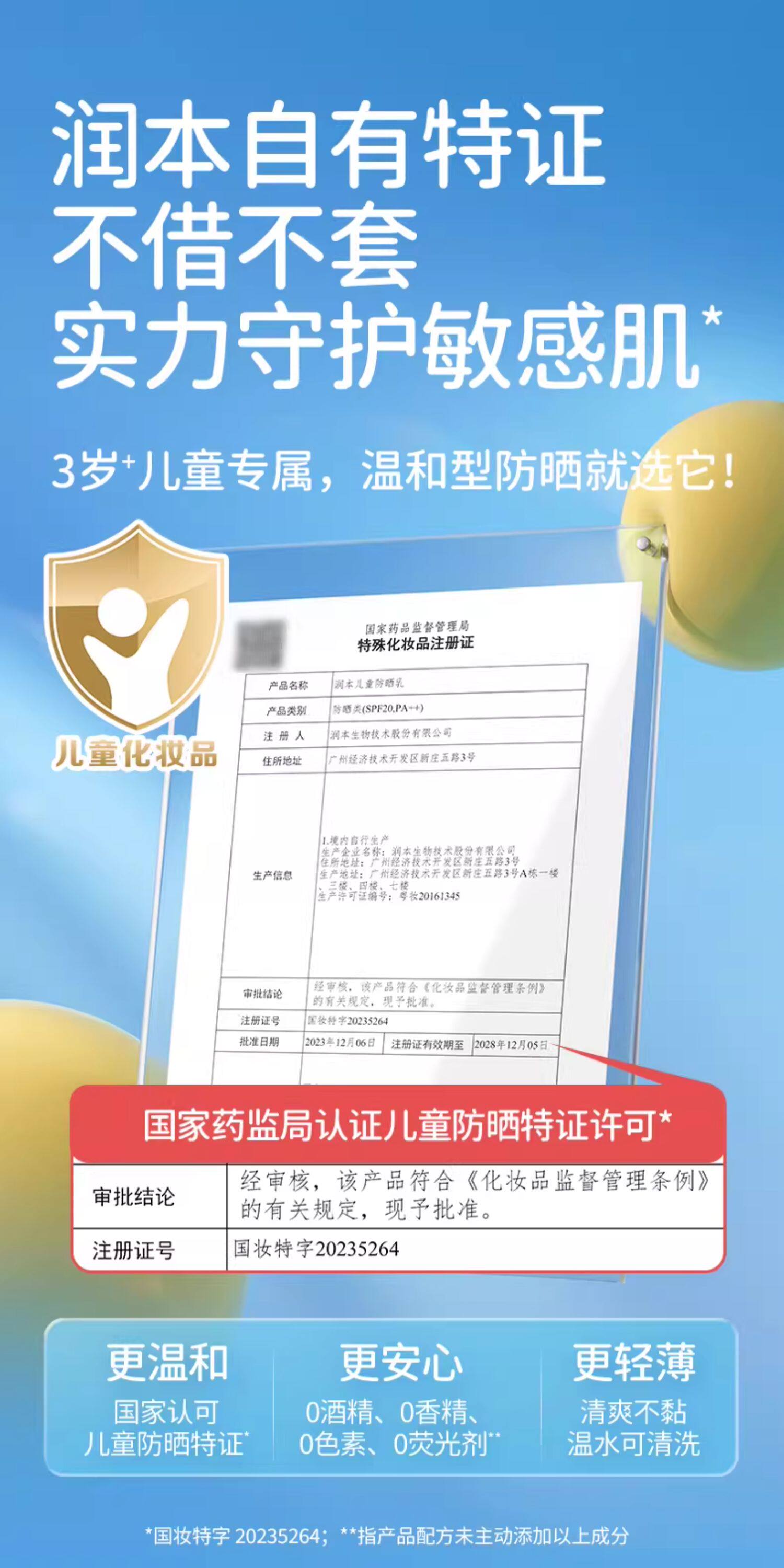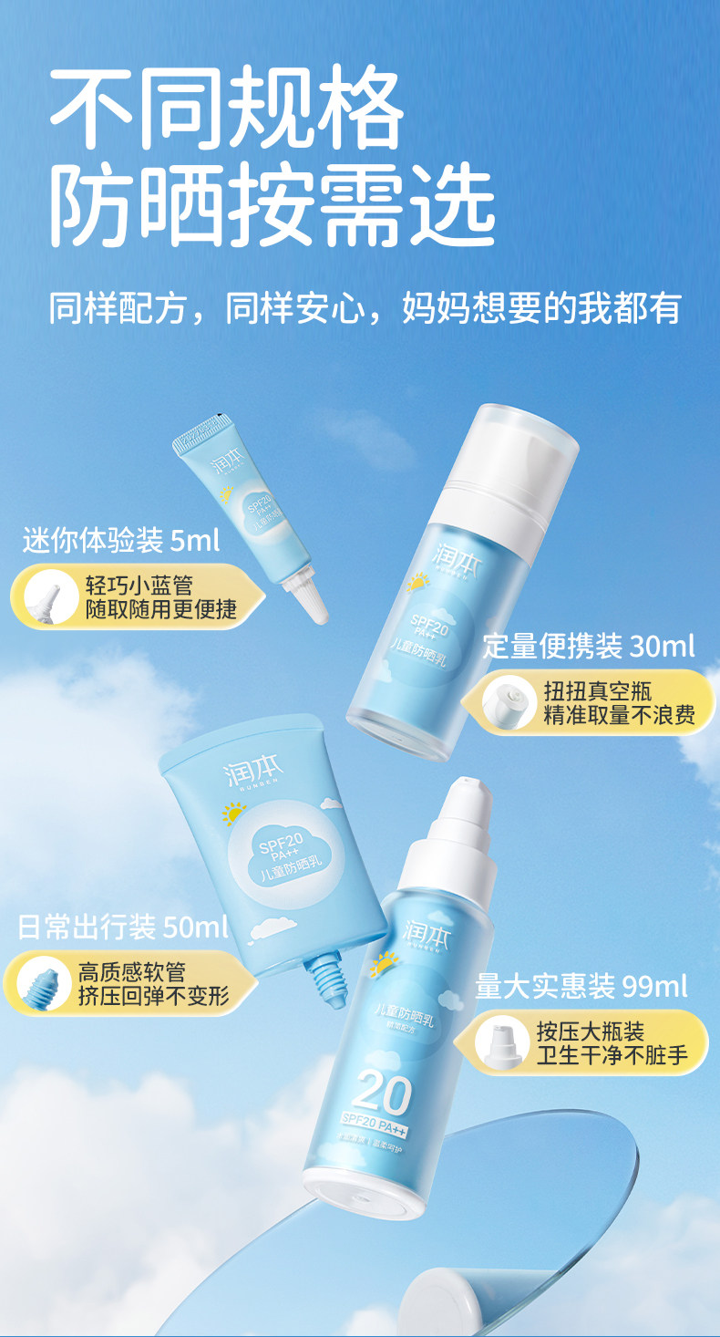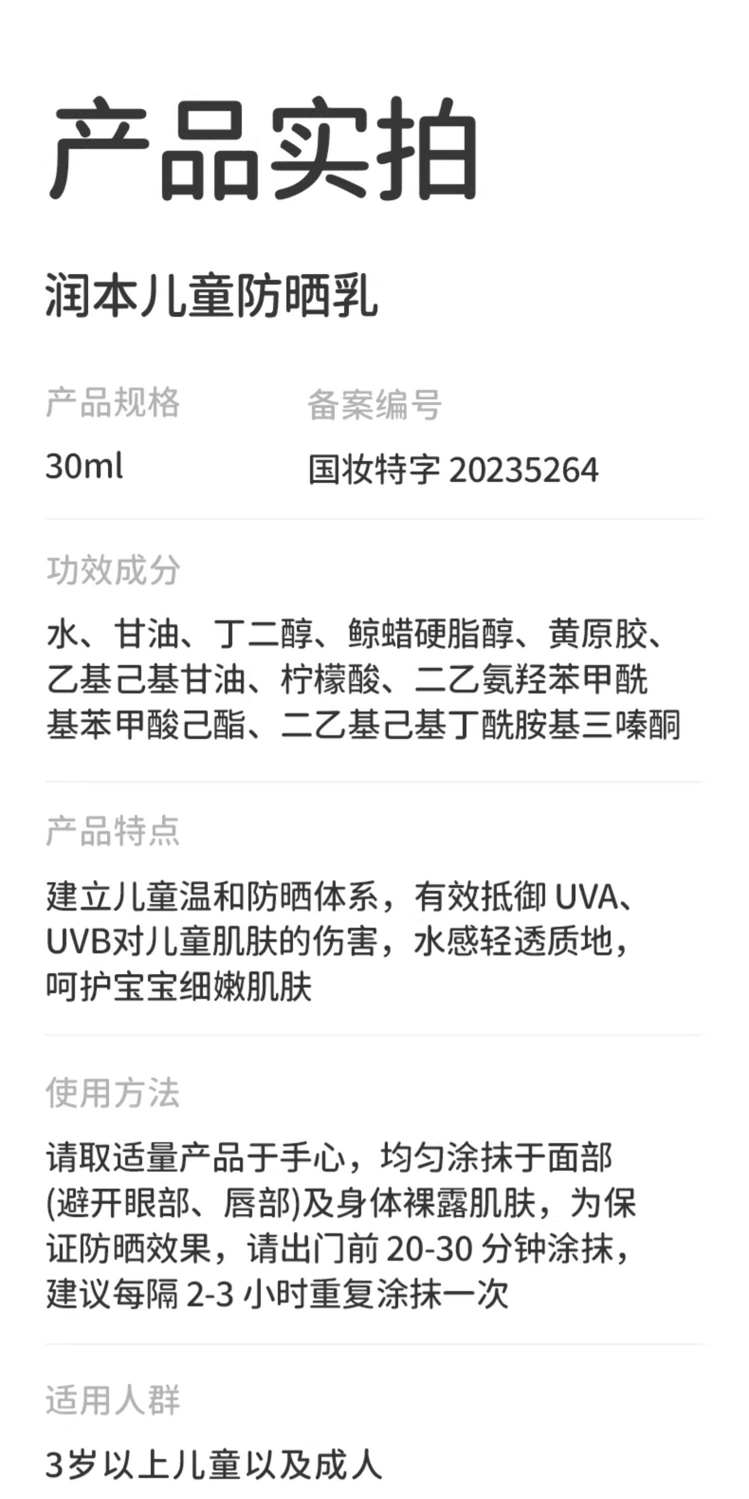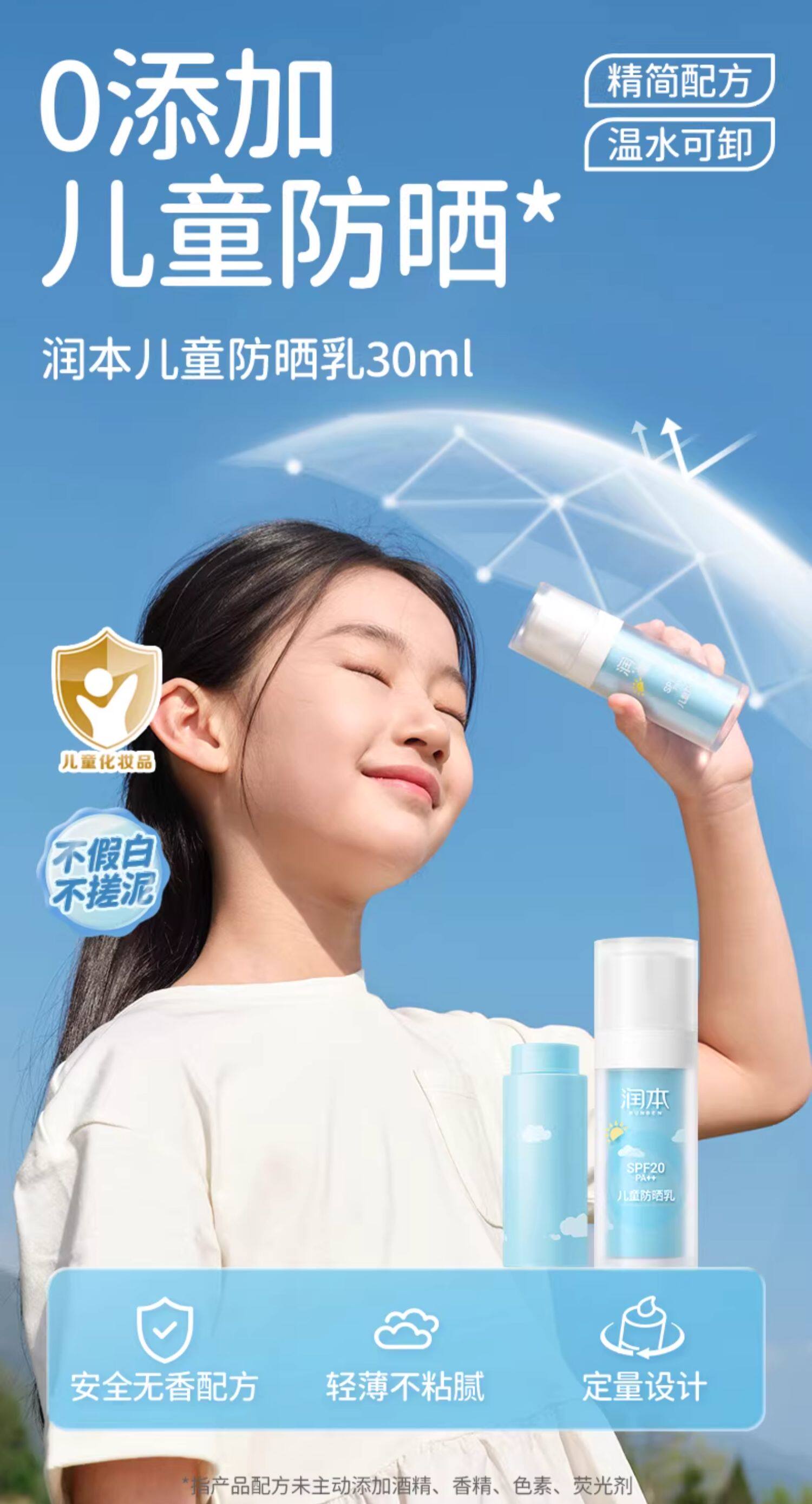 润本、儿童防晒霜、宝宝专用、防晒隔离、紫外线、男女童面霜