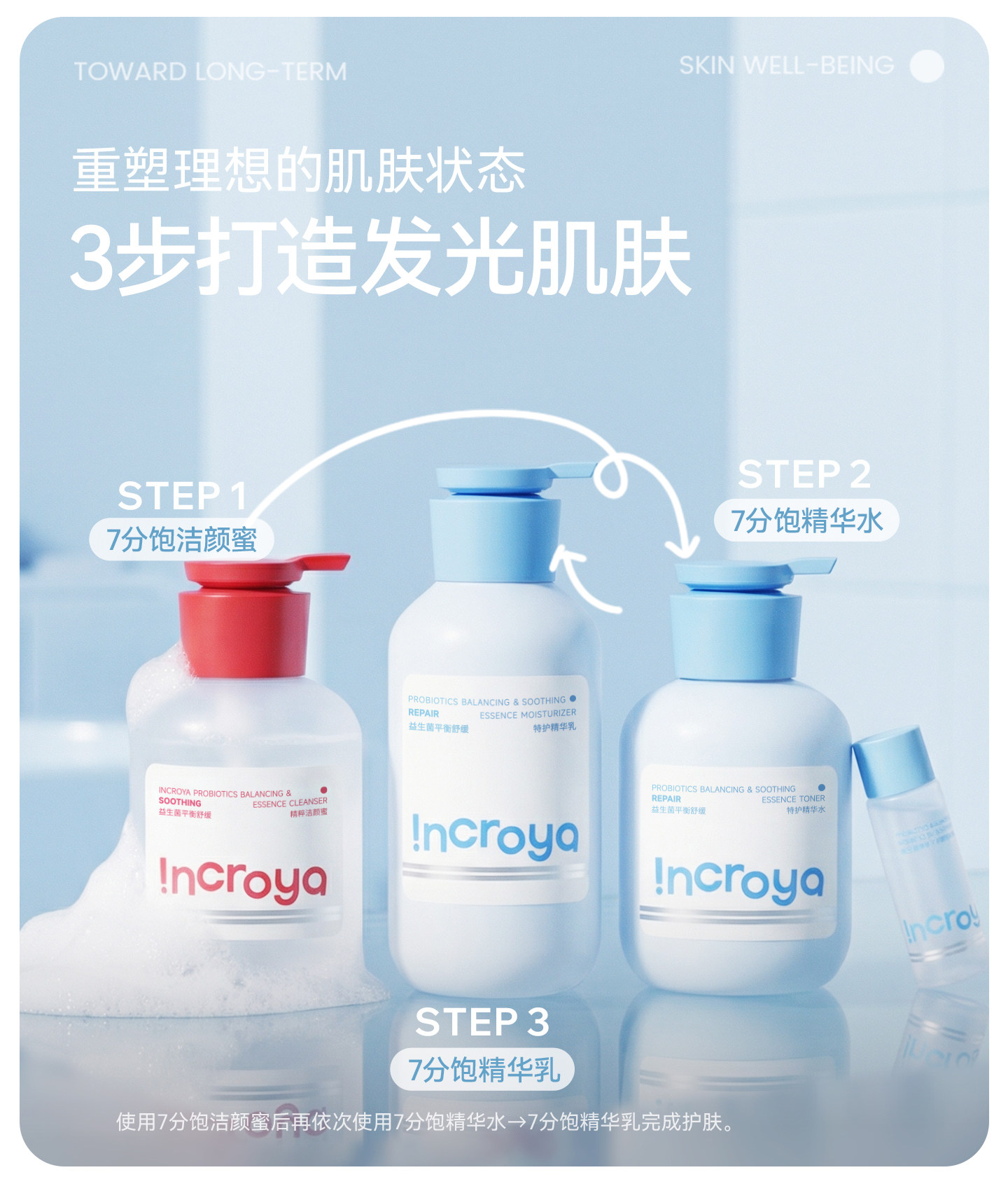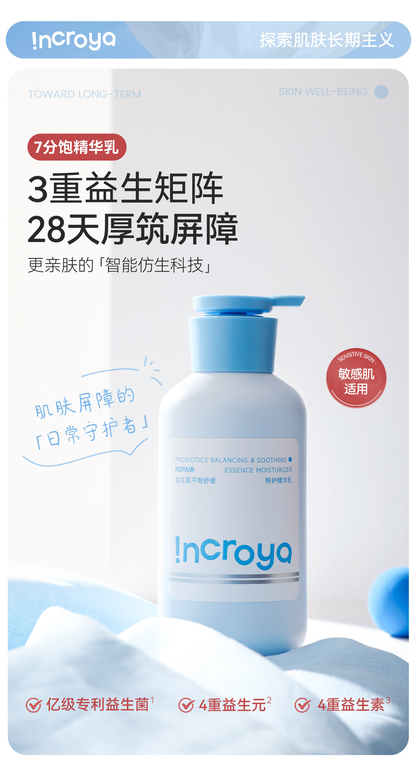 INCROYA益生菌7分饱精华乳锁水保湿乳液舒缓修护敏肌温和滋润护肤