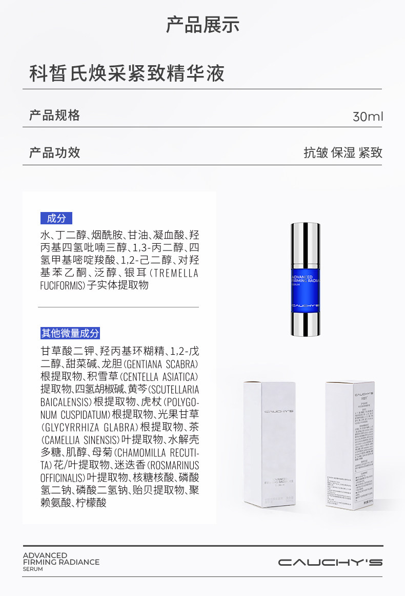 科皙氏CAUCHYS、反光精华、防反黑、淡色沉、修红敏、抗皱紧致