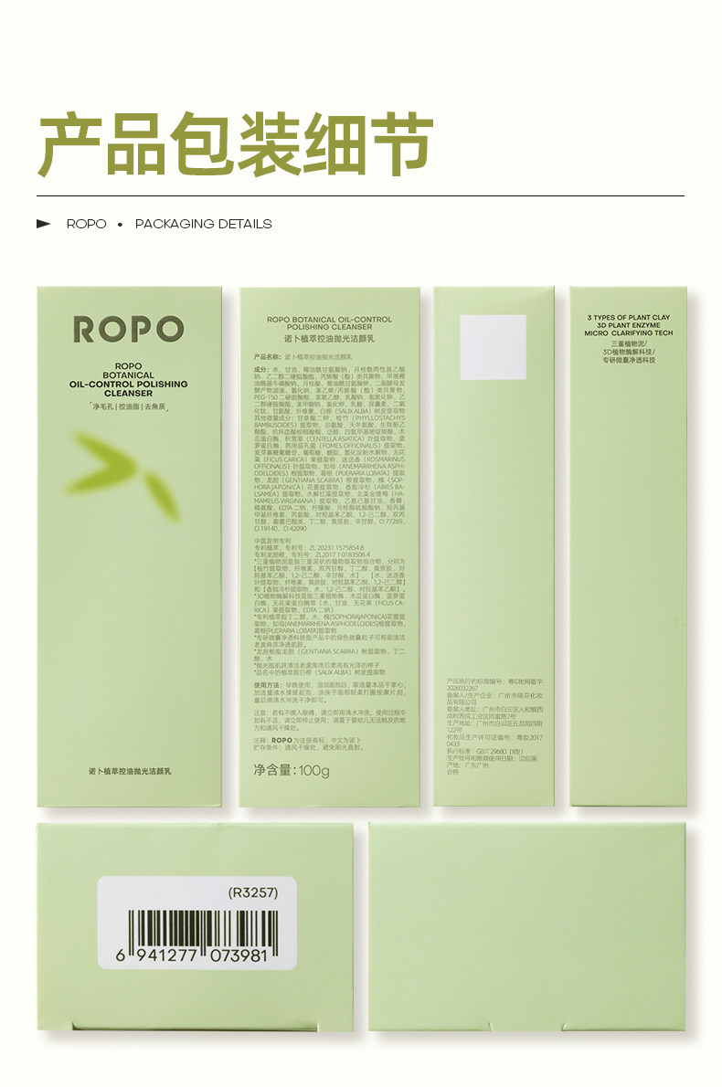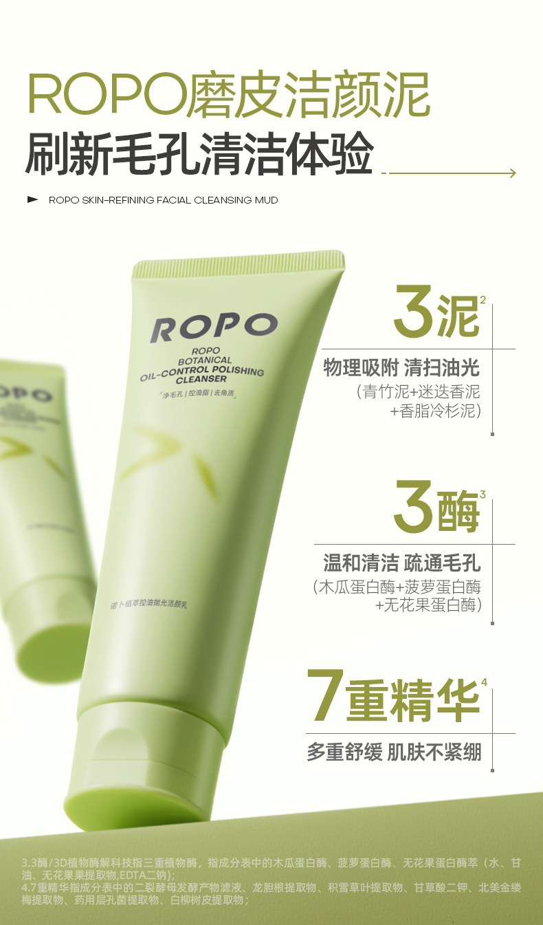 ROPO洗面奶、氨基酸、控油祛痘、深层清洁、去黑头、收缩毛孔
