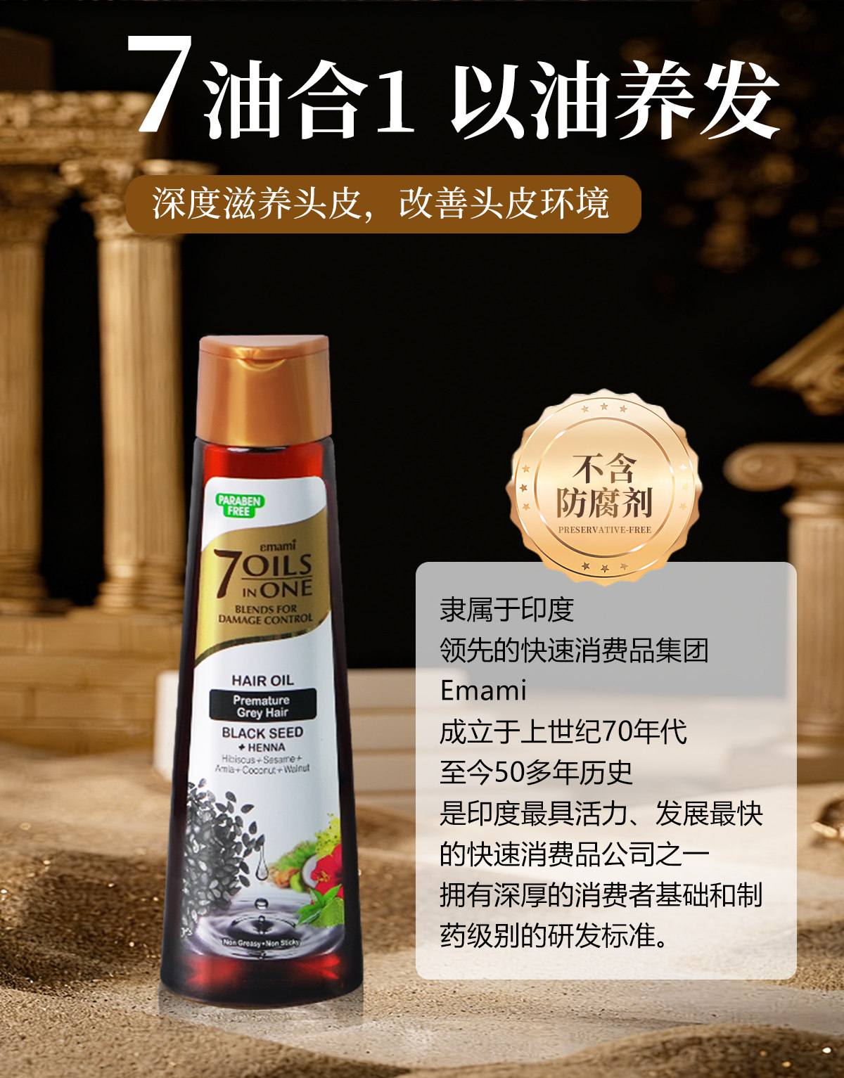 Emami7Oils inOne 进口 黑种草籽 护发精油 头皮护理 柔顺发丝