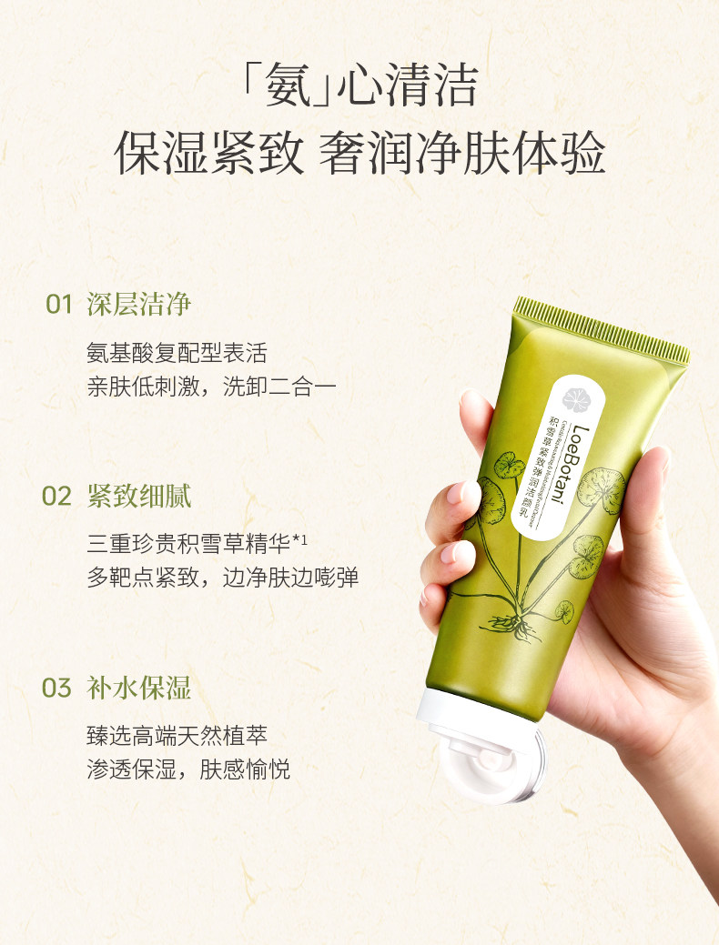 LOEBOTANI、植迷荟、积雪草、氨基酸洗面奶、清洁保湿、紧致