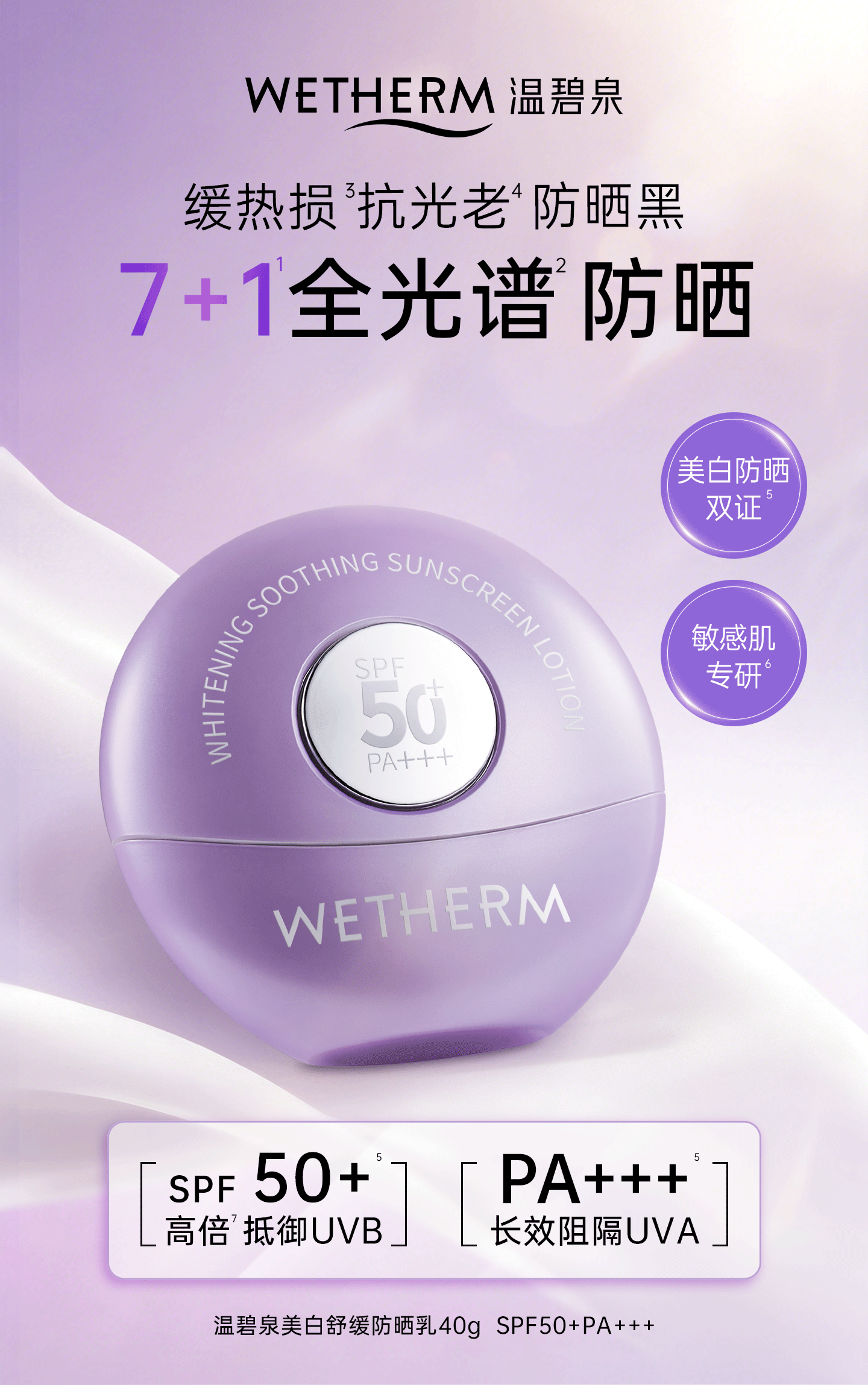温碧泉、美白防晒霜、清爽高倍、敏肌适用、户外防晒、PA+++SPF50+