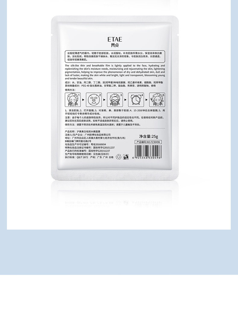 美白面膜、祛痘、淡化痘印、补水保湿、植物萃取精华、贴膜