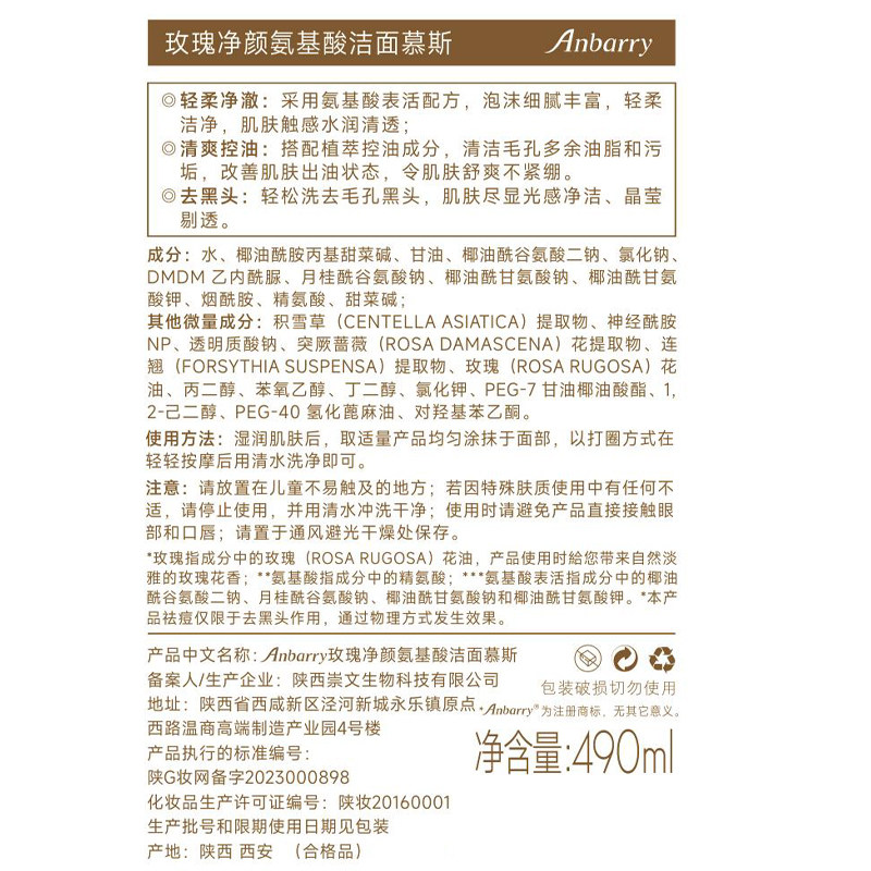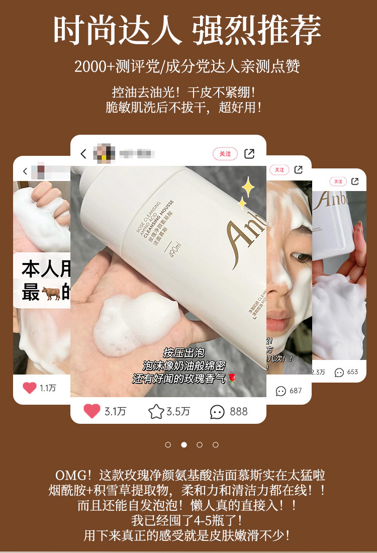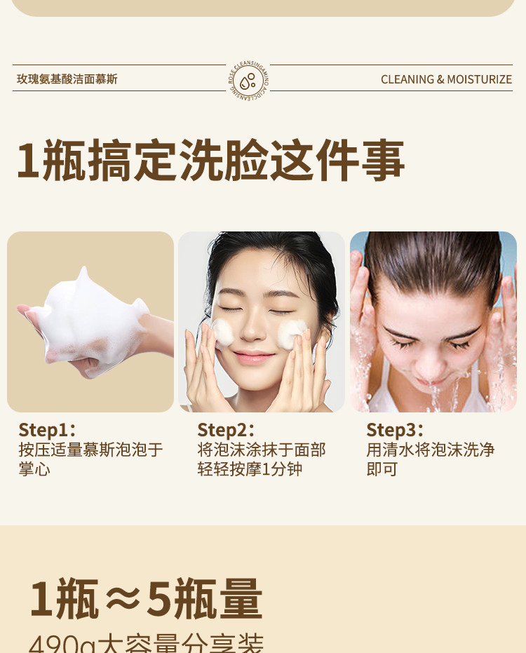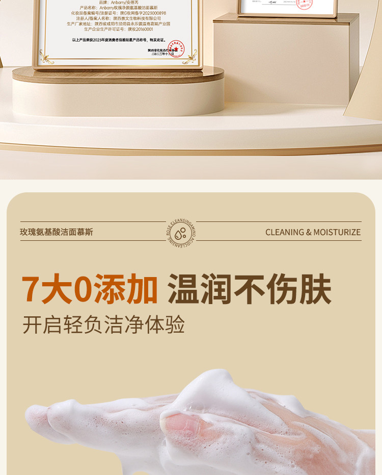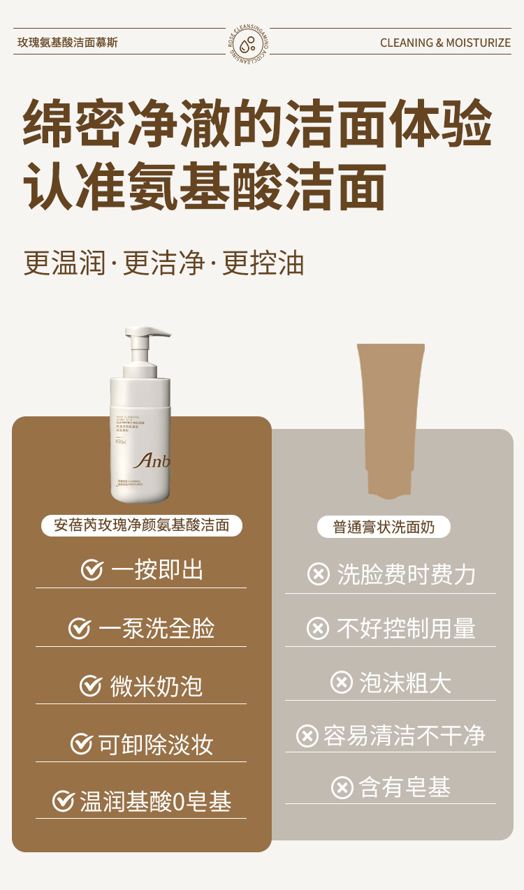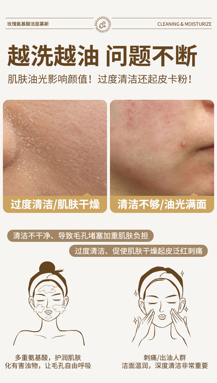 氨基酸洗面奶、男女士、洁面慕斯、卸妆二合一、深层清洁、收缩毛孔、控油祛痘