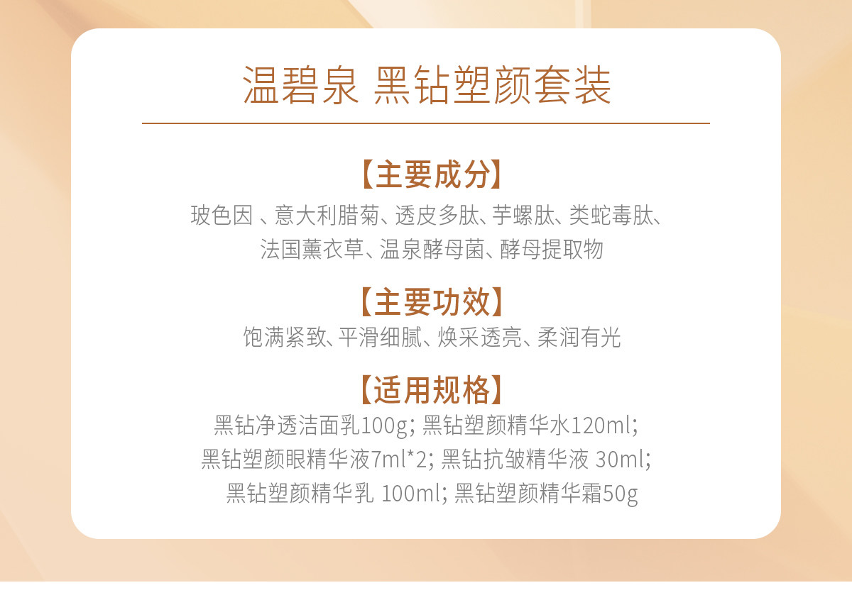 温碧泉 黑钻塑颜套装 嫩护抗皱 保湿 亮肤 面部护理 正品