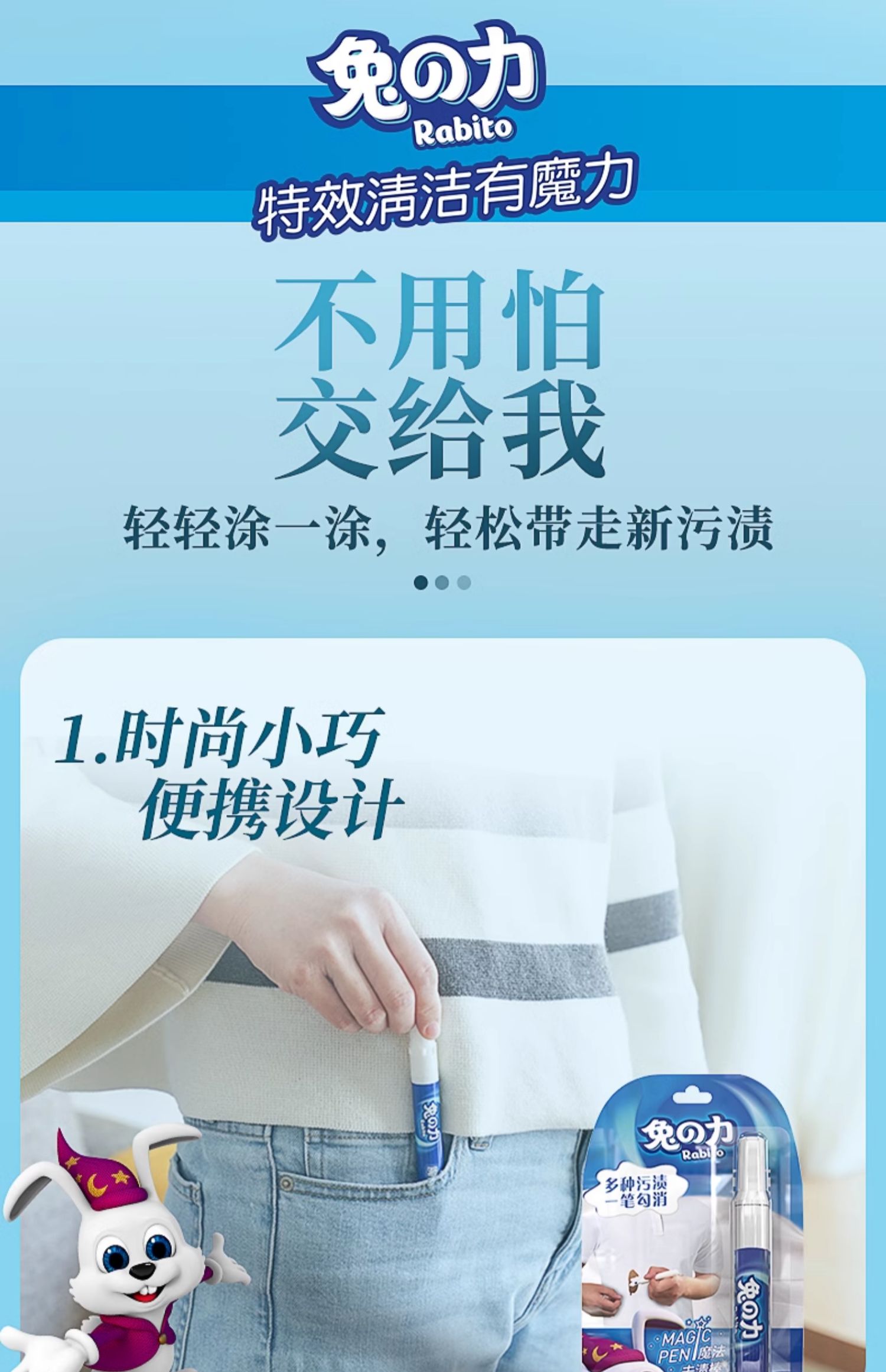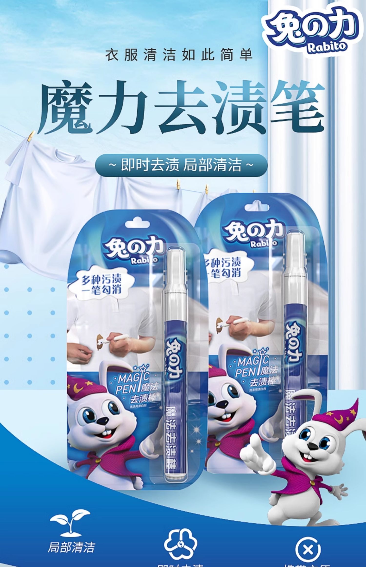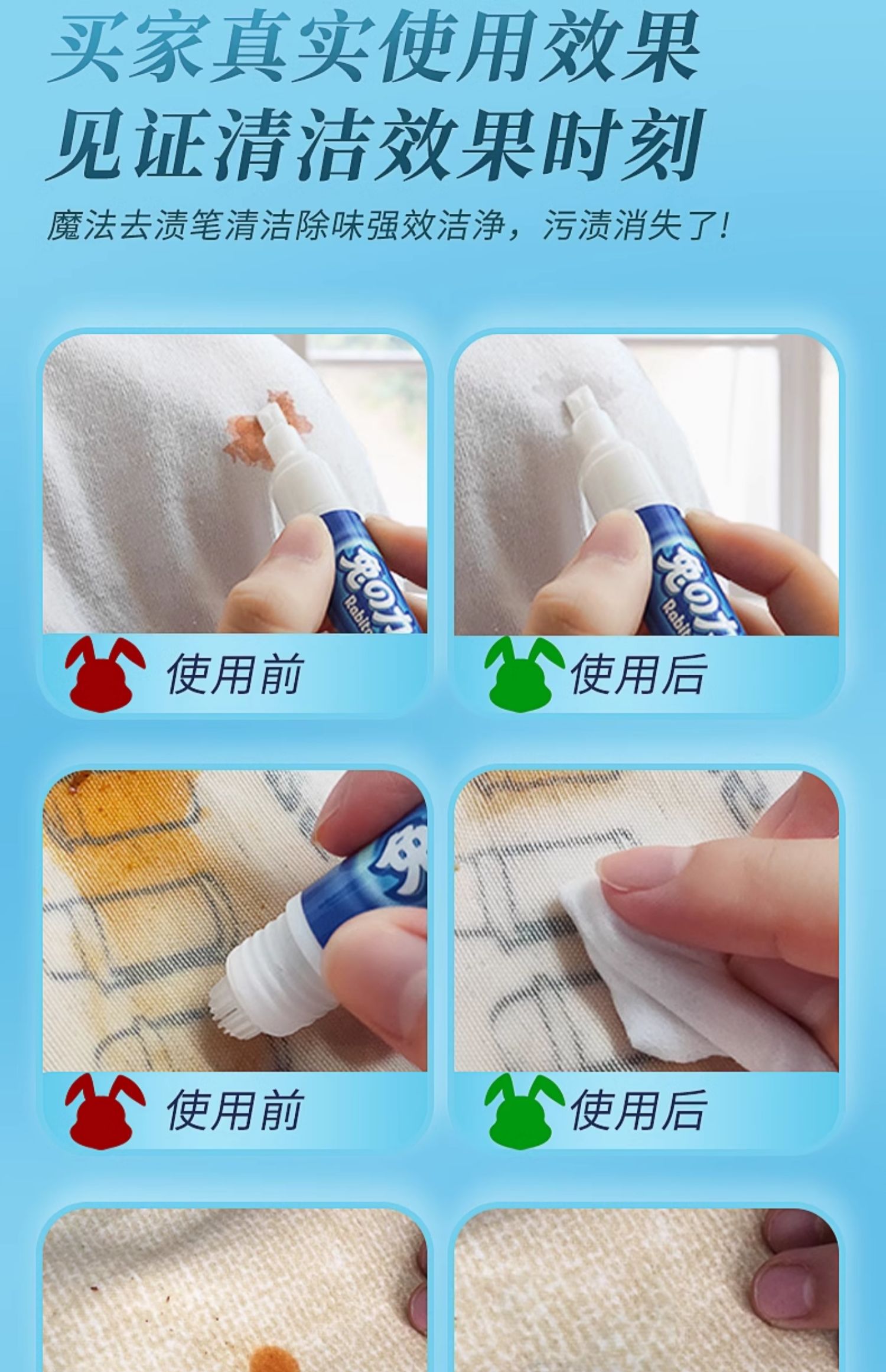 兔力、魔法去渍棒、干洗剂、去污笔、免水洗清洁剂、去油渍、便携式