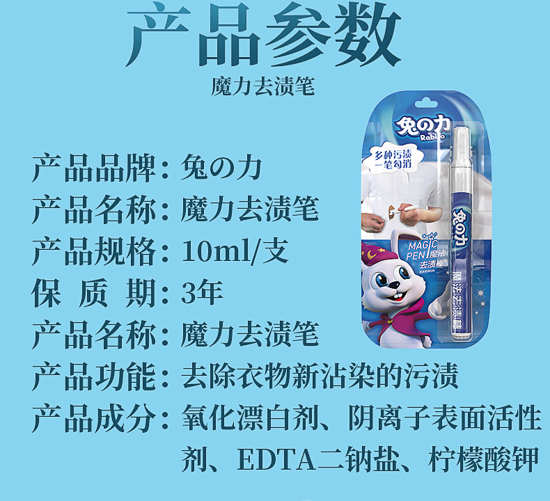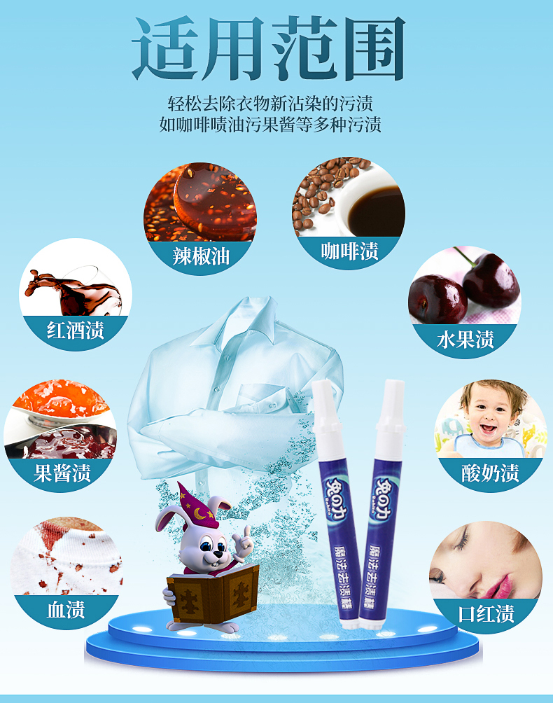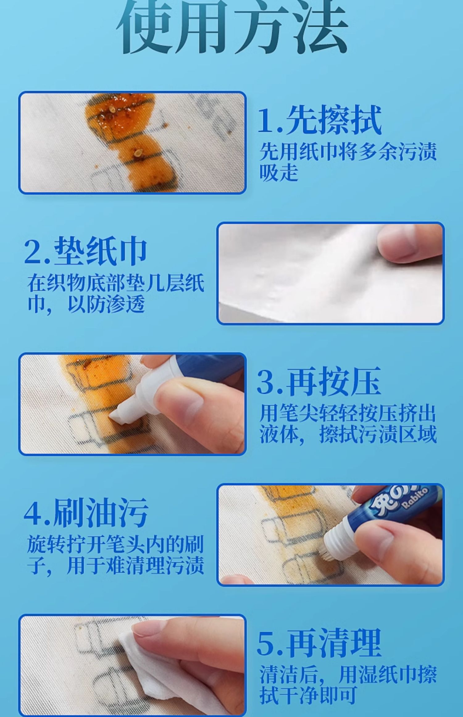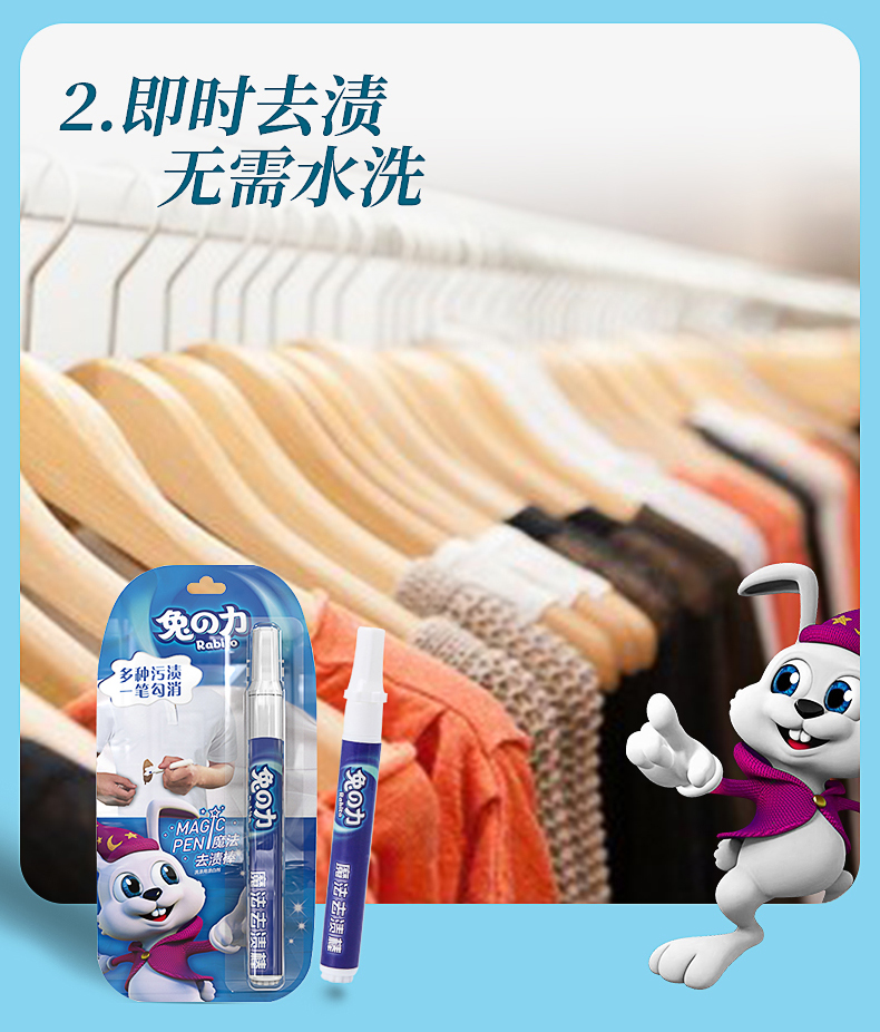 兔力、魔法去渍棒、干洗剂、去污笔、免水洗清洁剂、去油渍、便携式