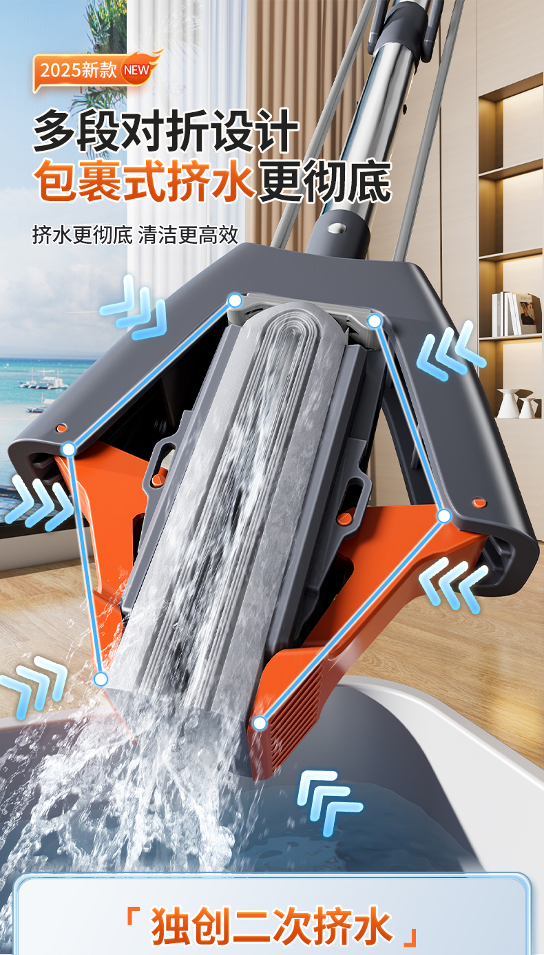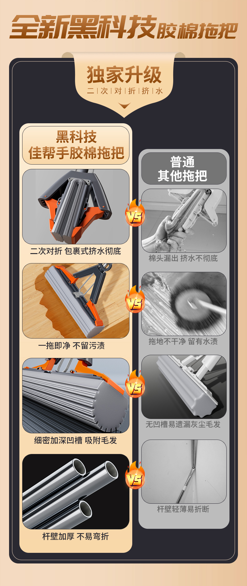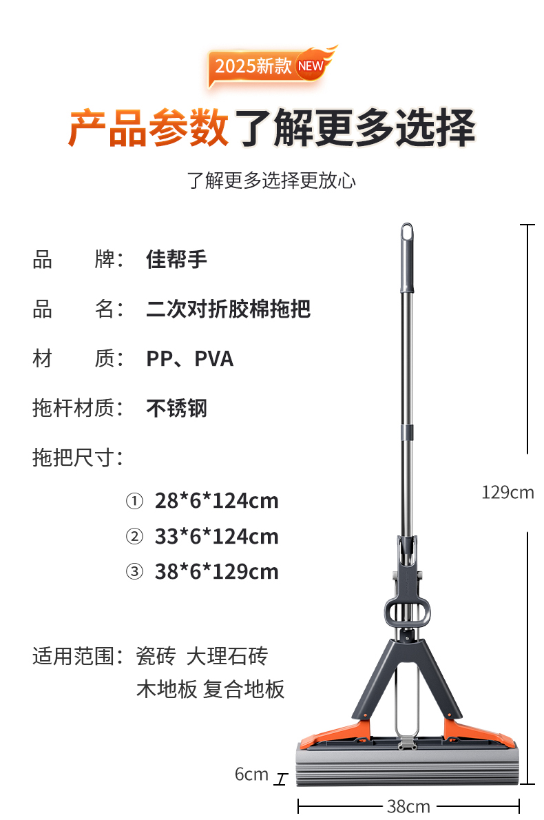 谢霆锋推荐、佳帮手、海绵吸水拖把、家用、干湿两用、卫生间、胶棉头拖布