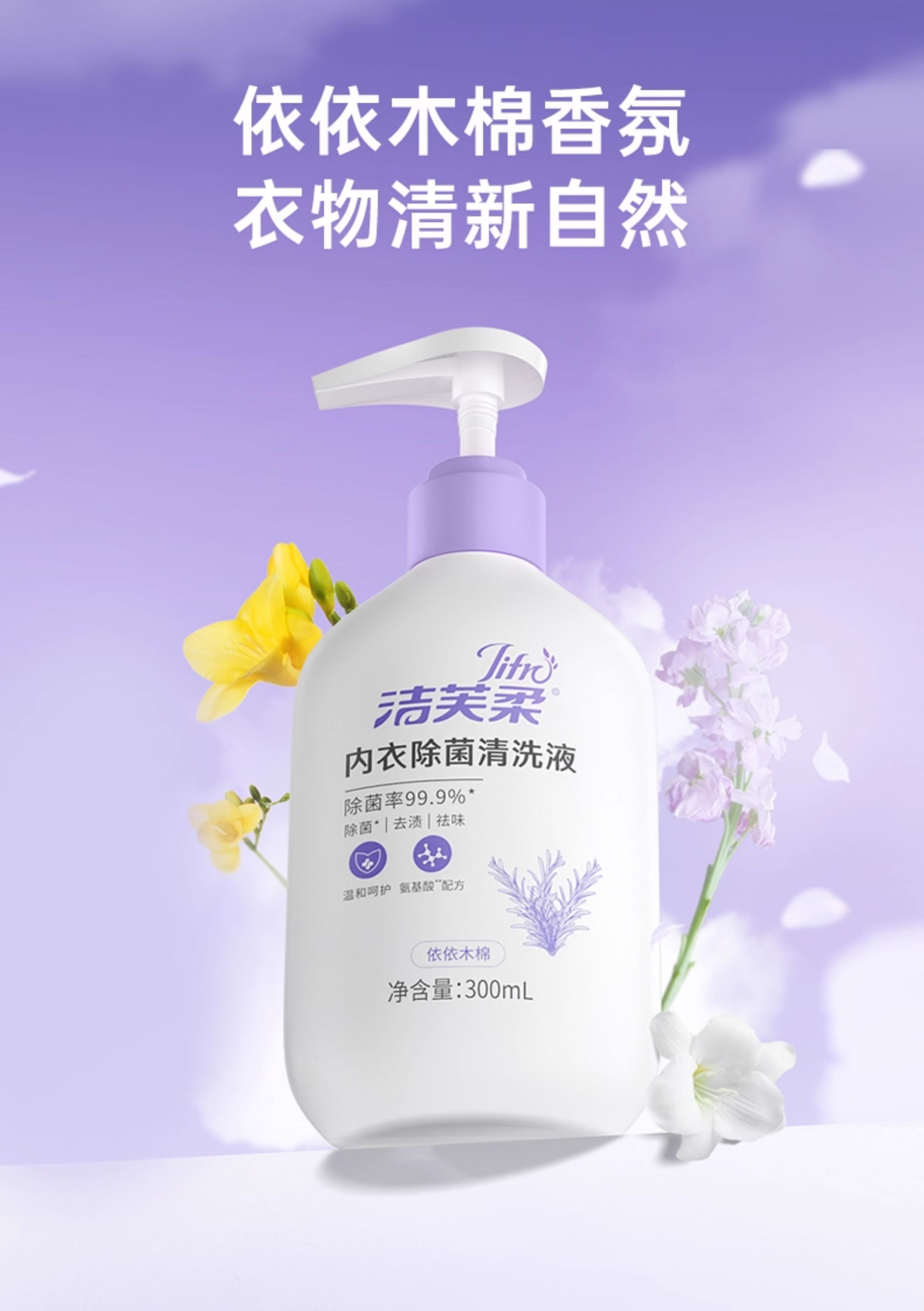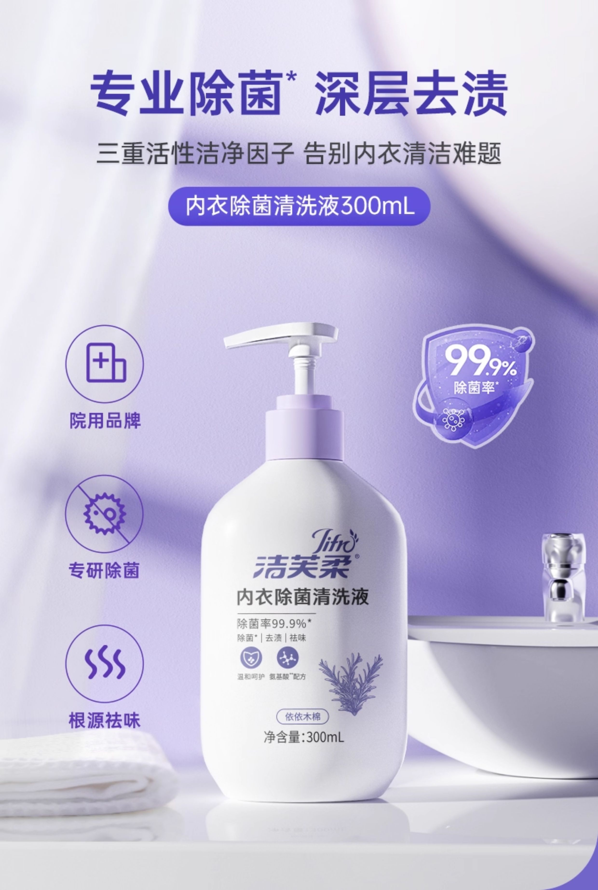 洁芙柔、医护同款、内衣洗衣液、祛血渍、祛黄渍、除菌99.9%、清洗液