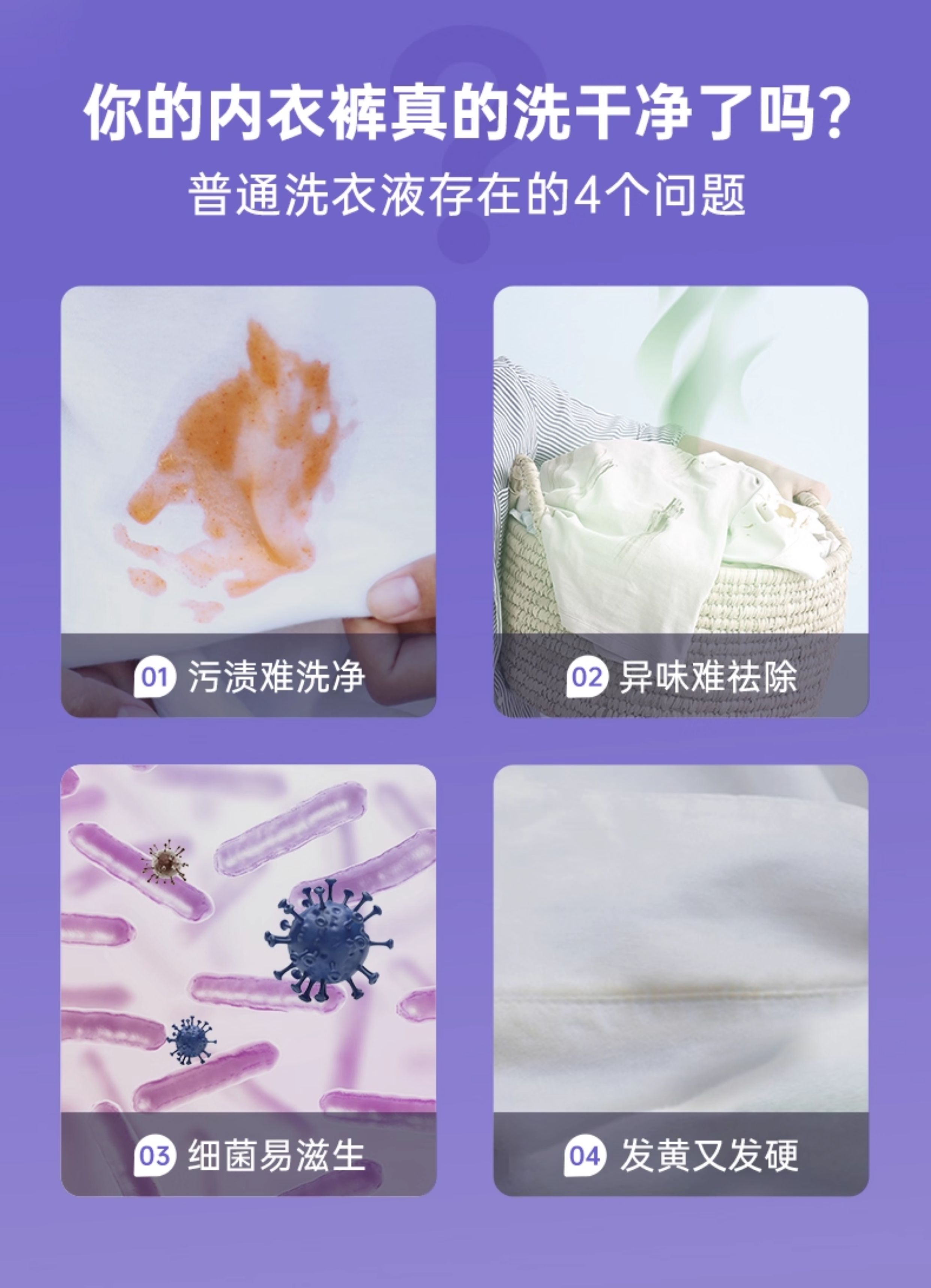 洁芙柔医护同款内衣洗衣液内裤祛血渍祛黄渍清洗液除菌99.9%