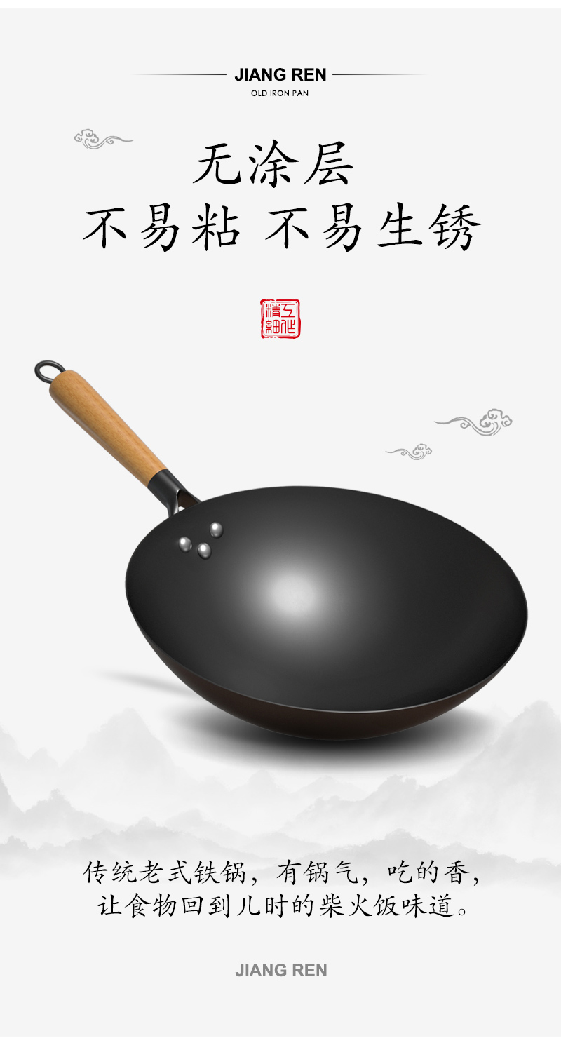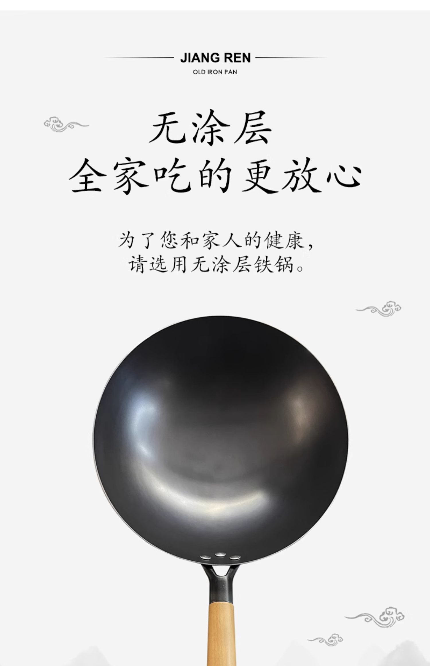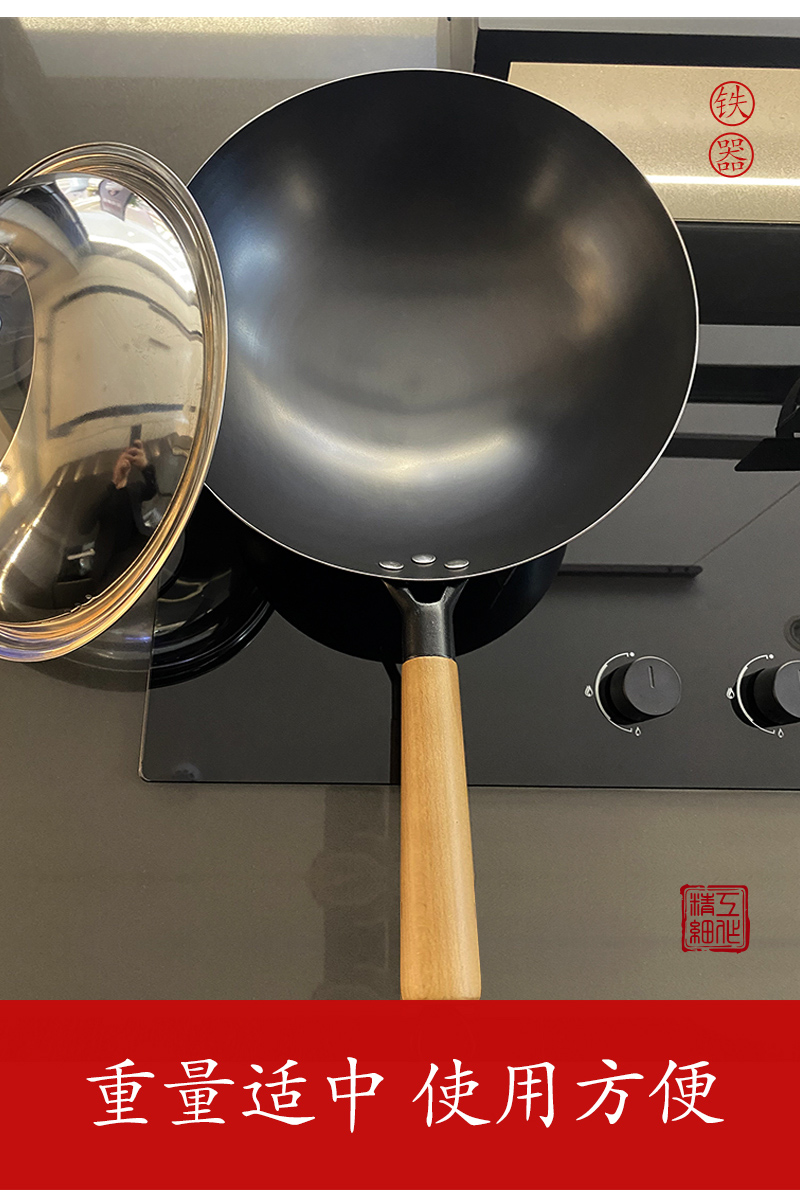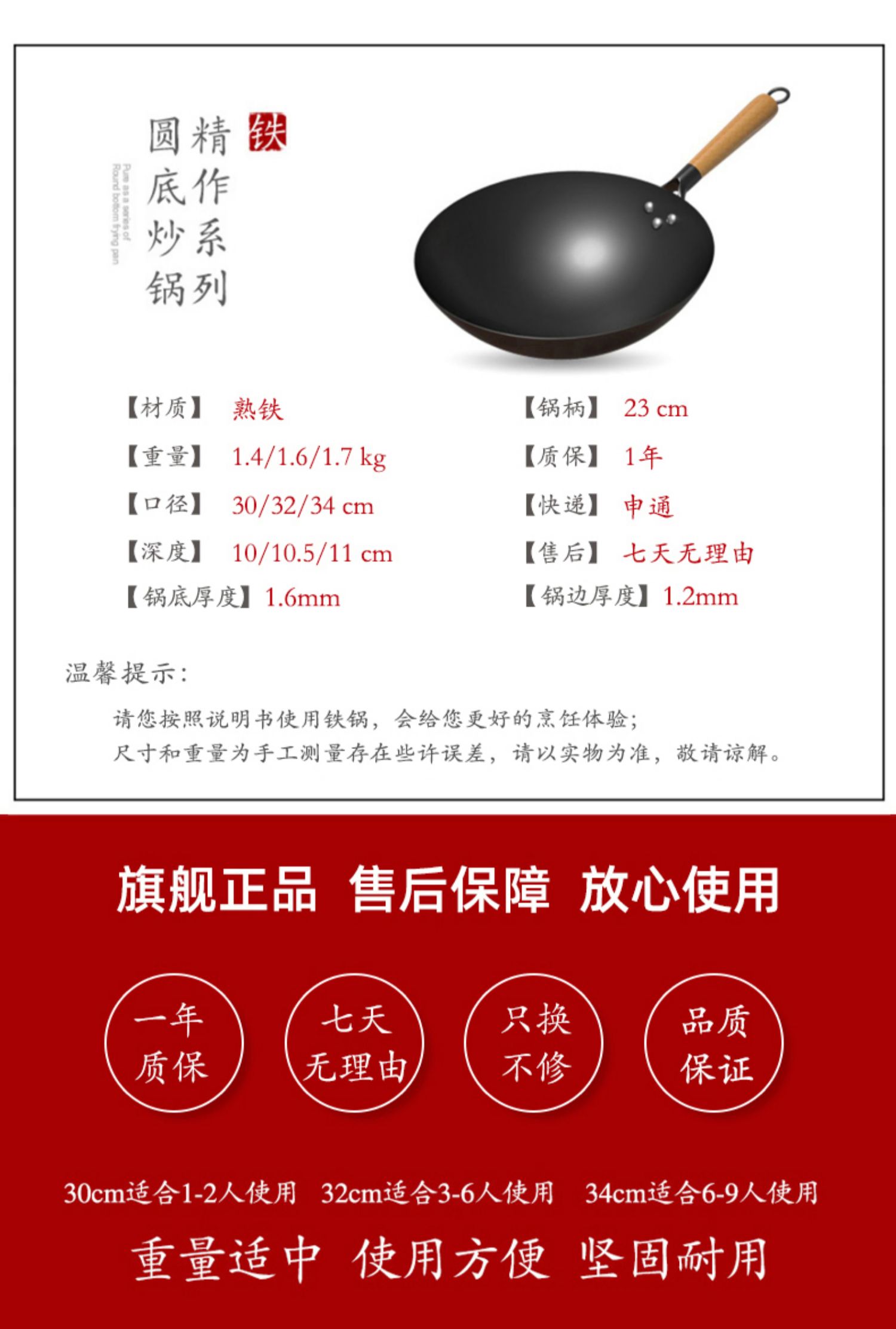 正品、传统老式、铁锅、无涂层、家用、熟铁炒菜锅、不粘锅、燃气灶专用