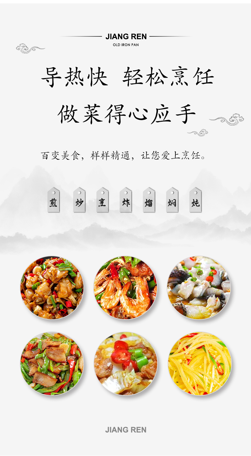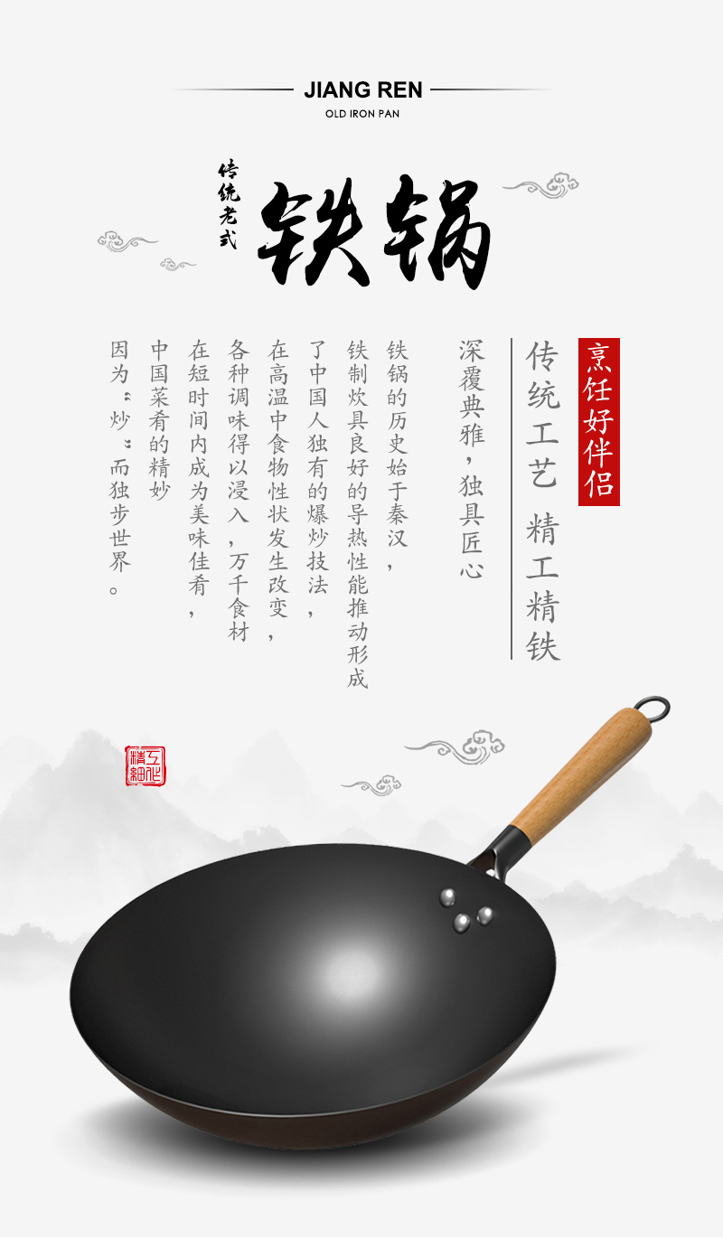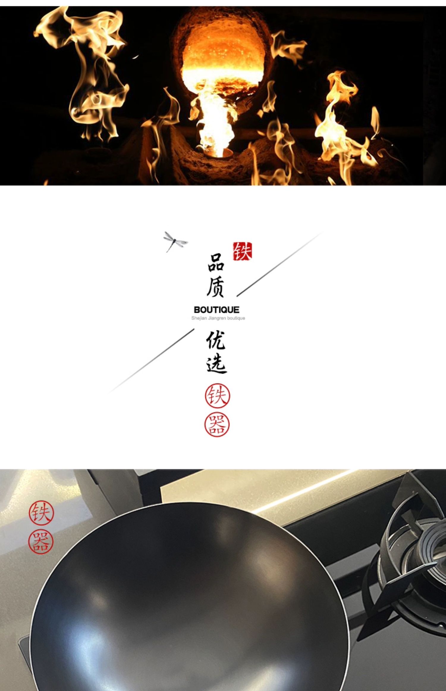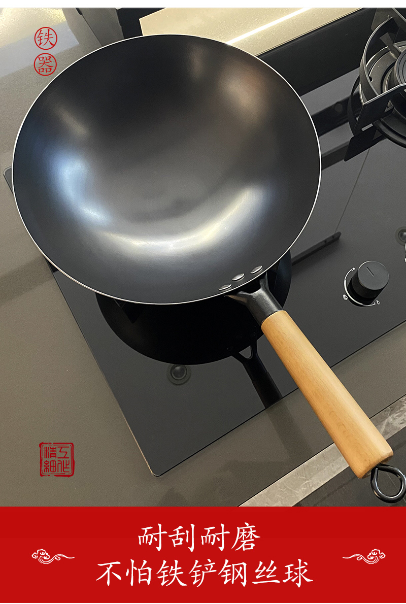 正品、传统老式、铁锅、无涂层、家用、熟铁炒菜锅、不粘锅、燃气灶专用
