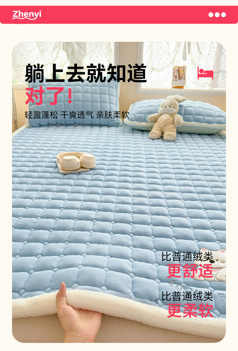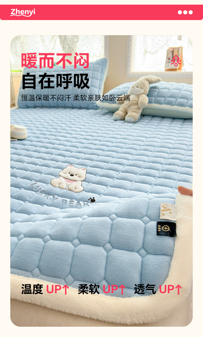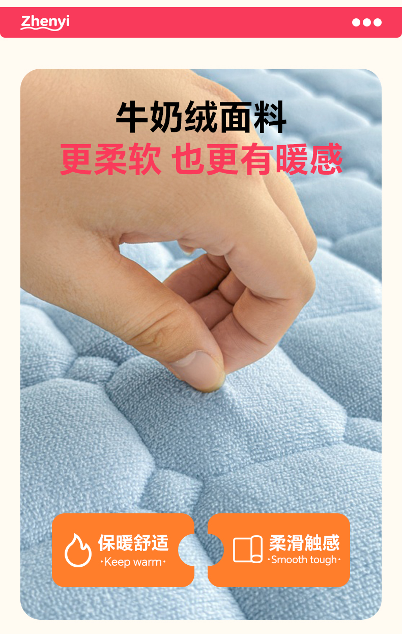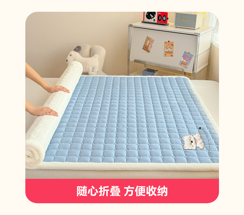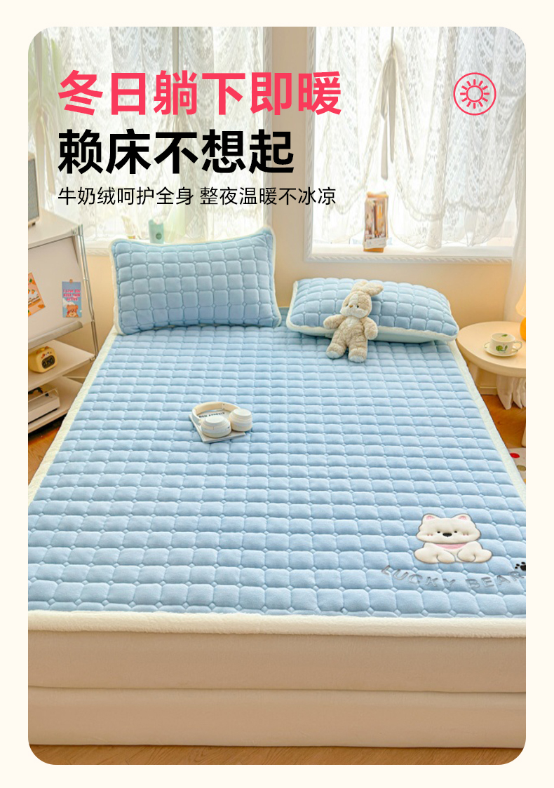 牛奶绒床垫、加厚夹棉、学生宿舍、床毯软垫、冬季保暖、毛绒床褥子