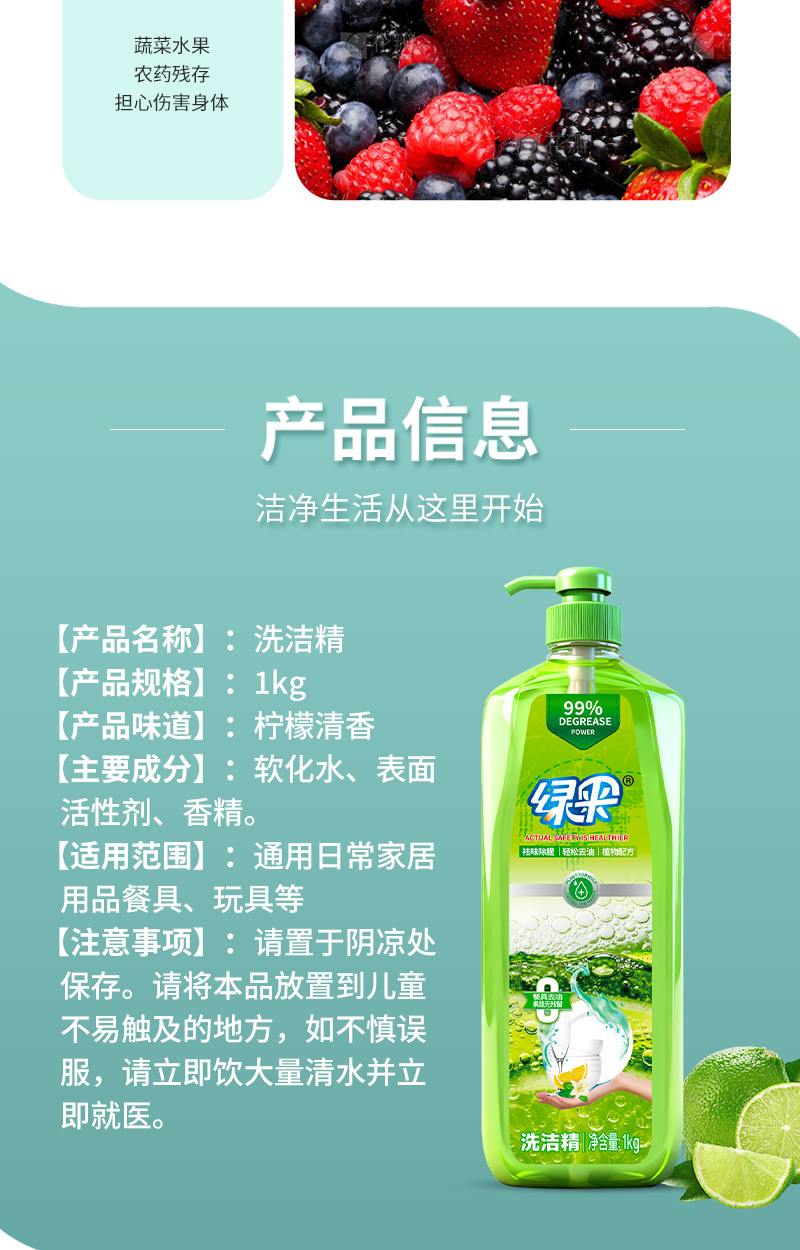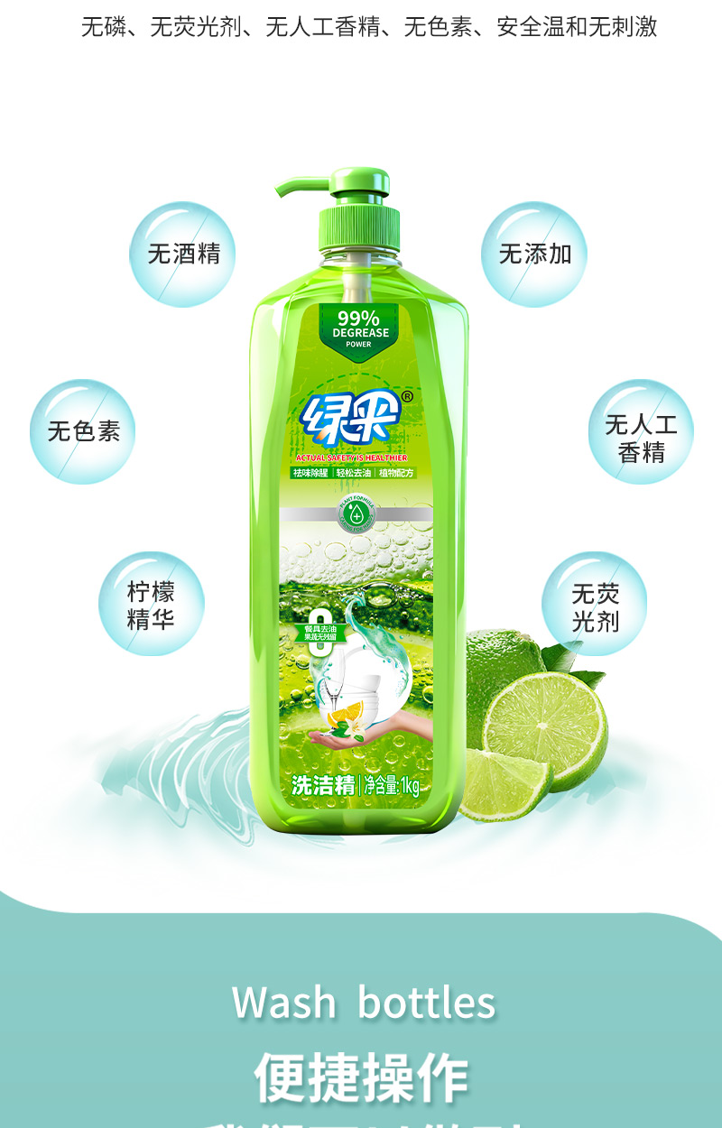 家用洗洁精、1公斤、正品按压装、冷水去油、不伤手、果蔬净、温和