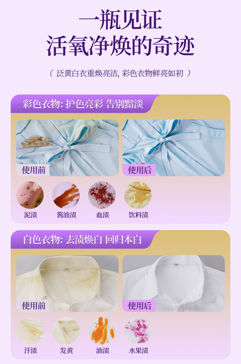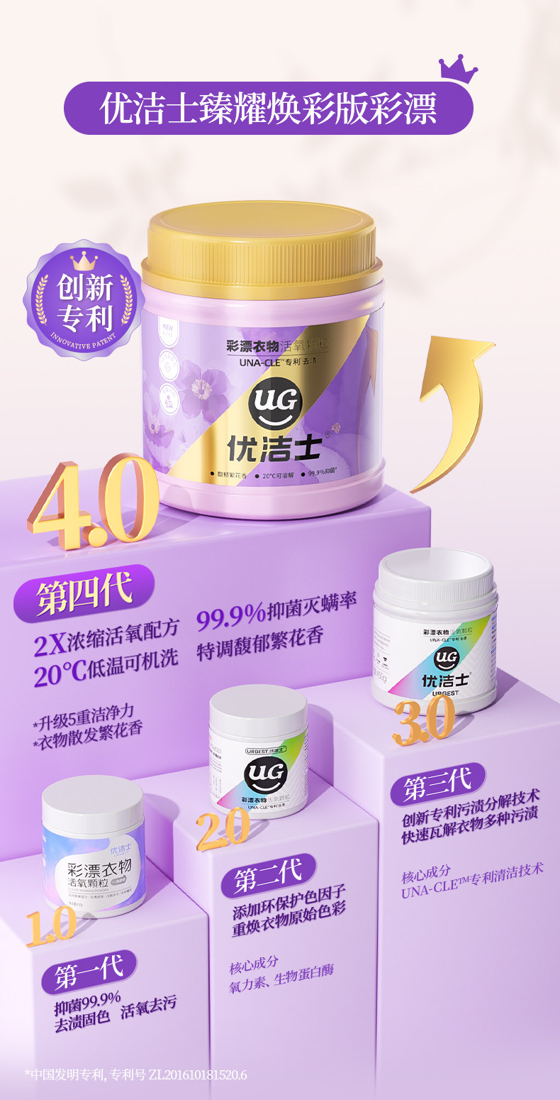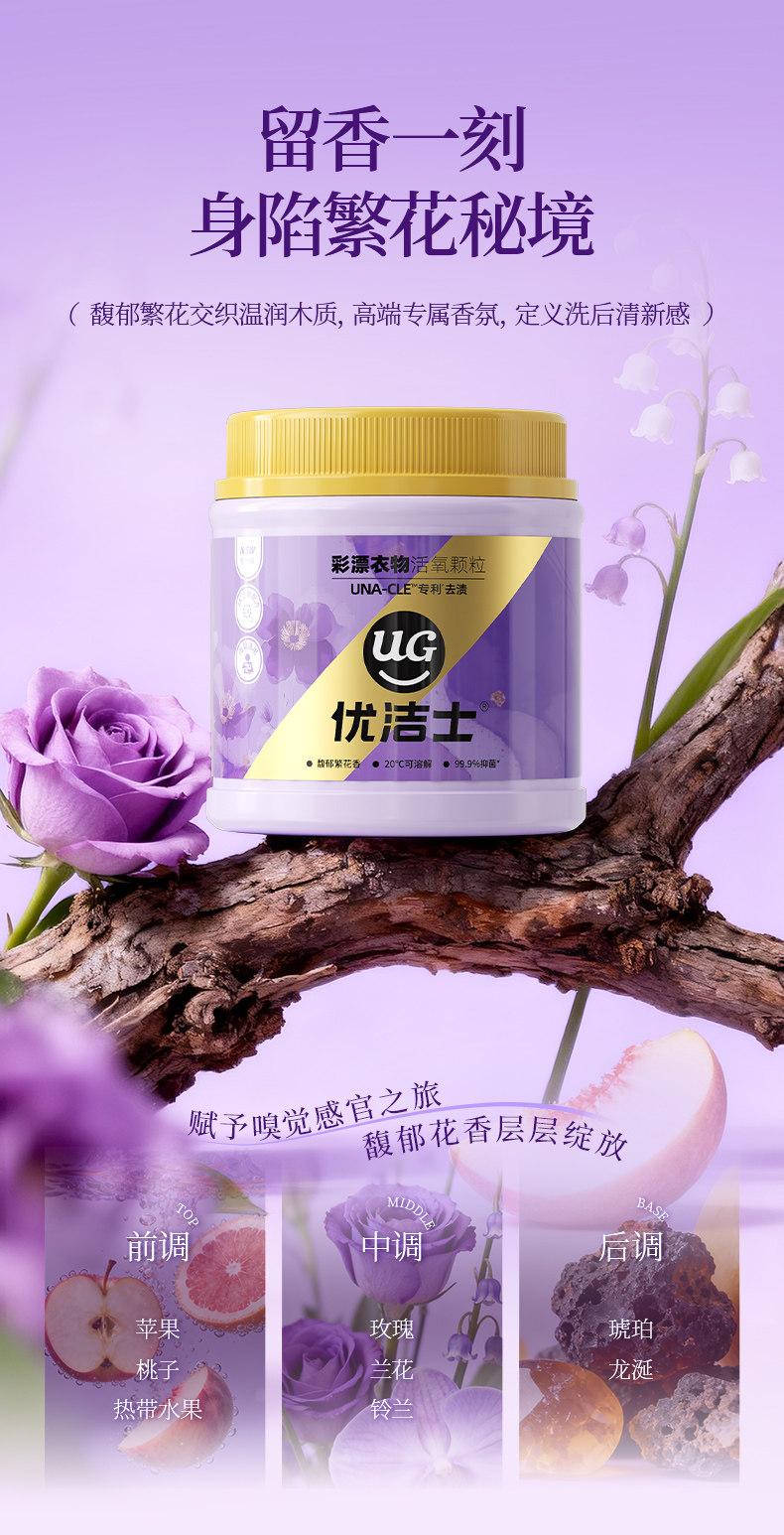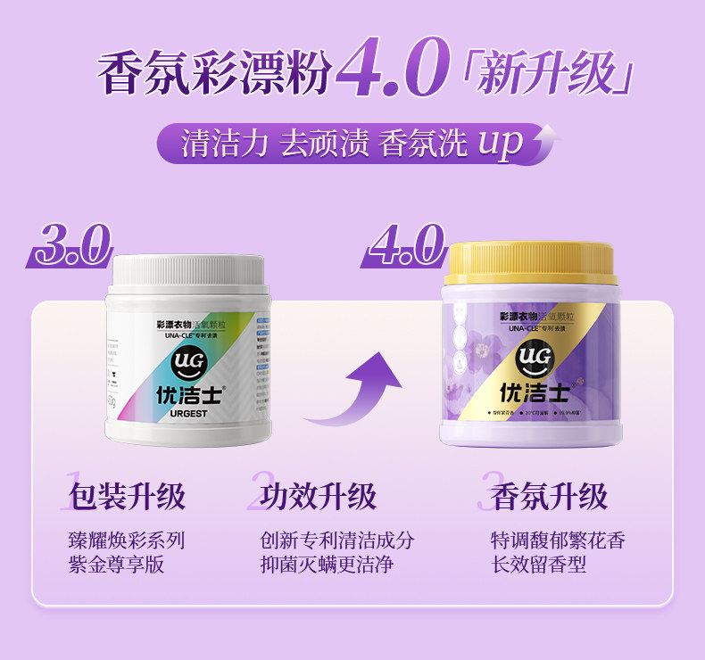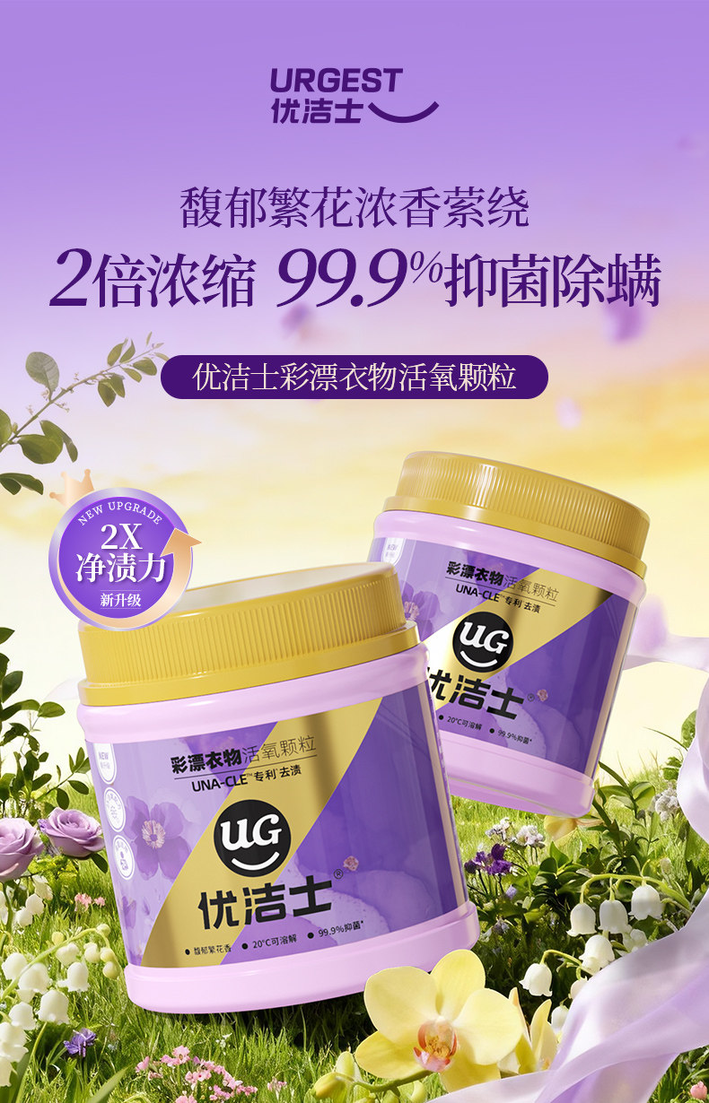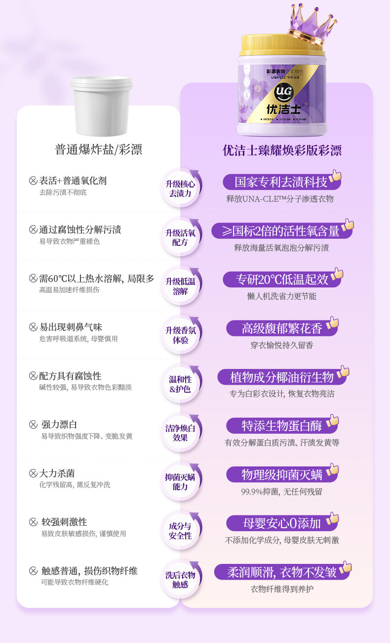 优洁士、爆炸盐、馥郁繁花香、去污渍强、抑菌除螨、母婴可用、彩漂粉