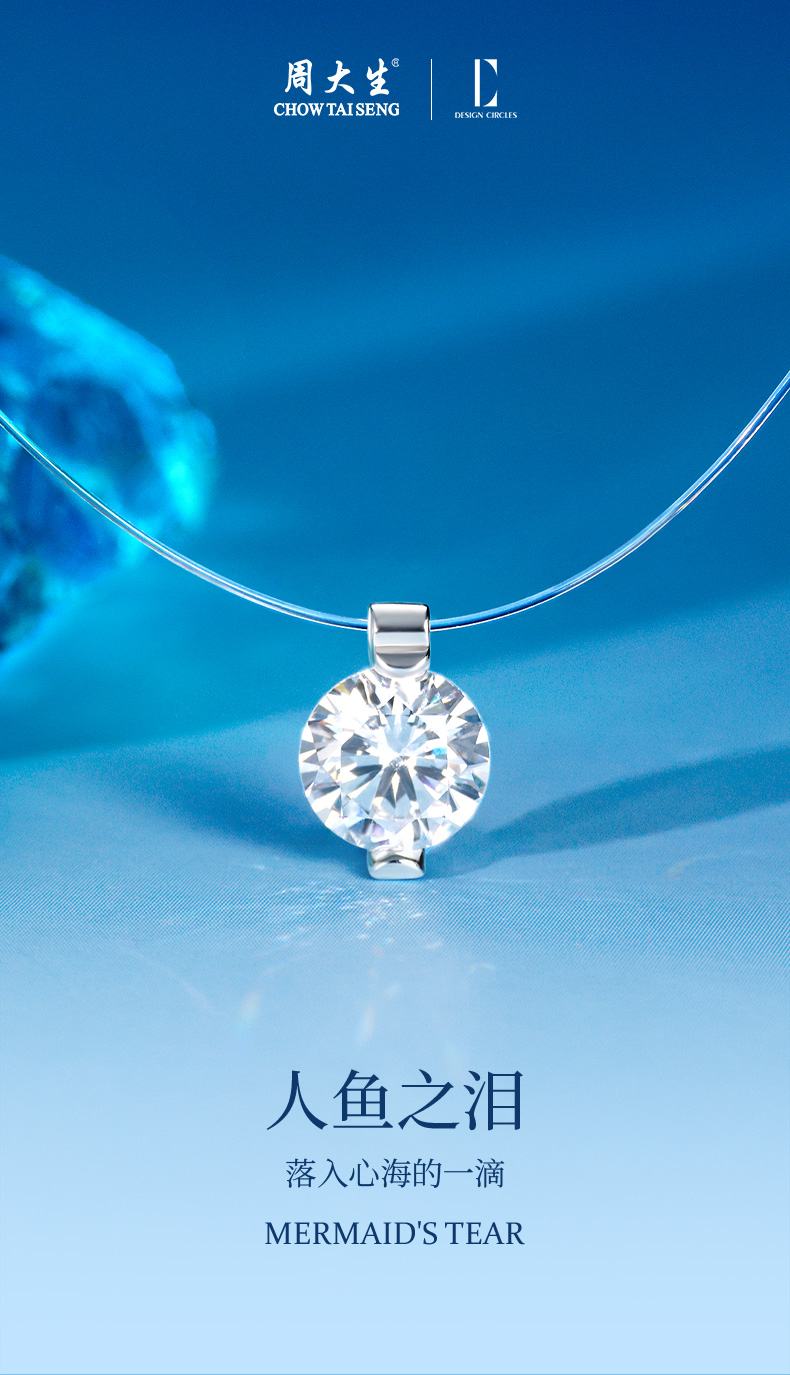 周大生、DC人鱼之泪、纯银项链、轻奢小众、锁骨链、高级感、生日礼物