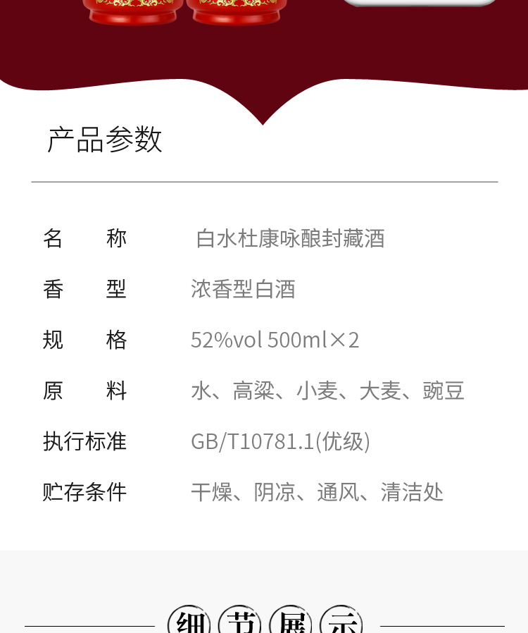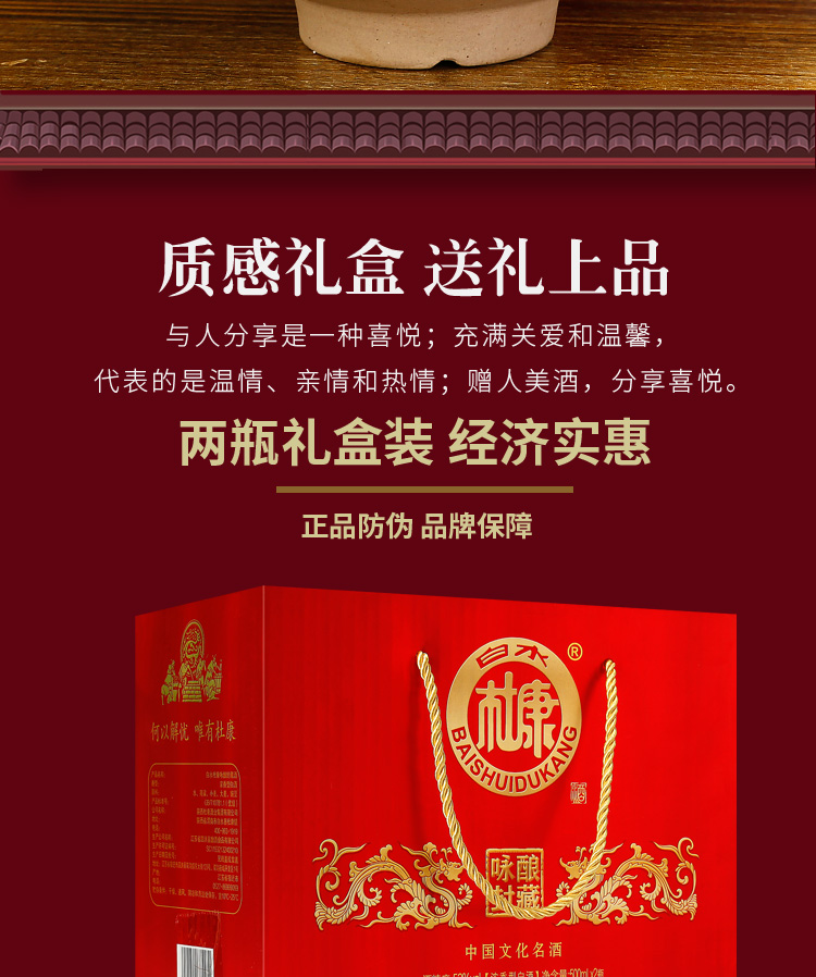 白水杜康咏酿封藏酒52度500ml*2瓶高度礼盒装