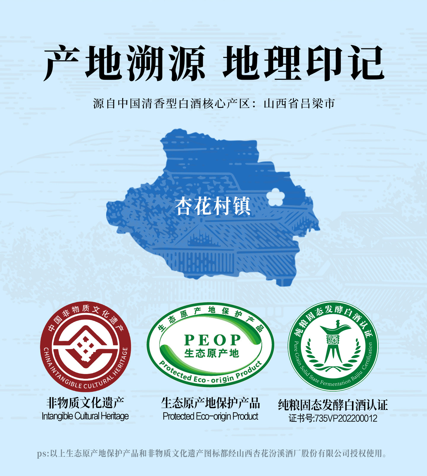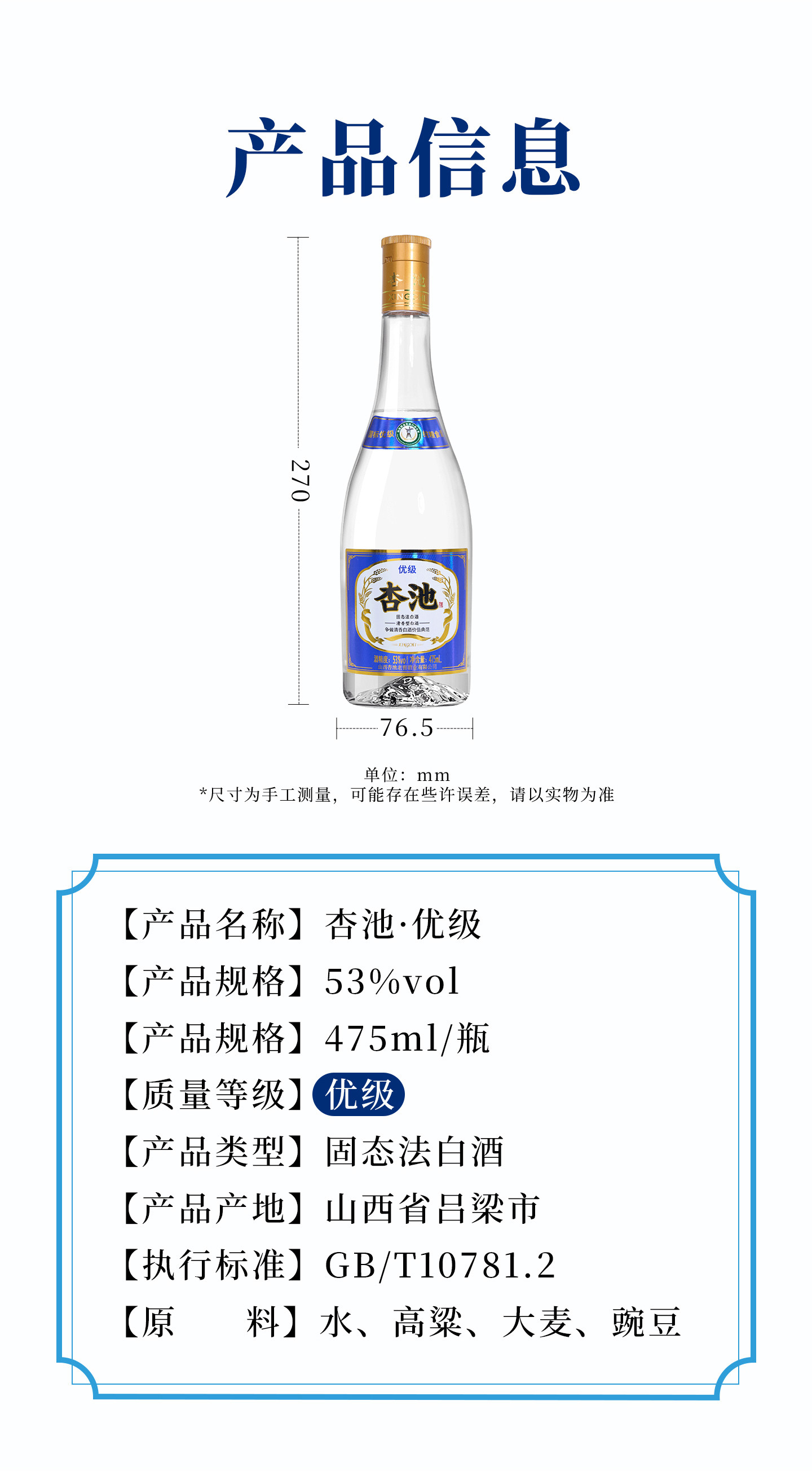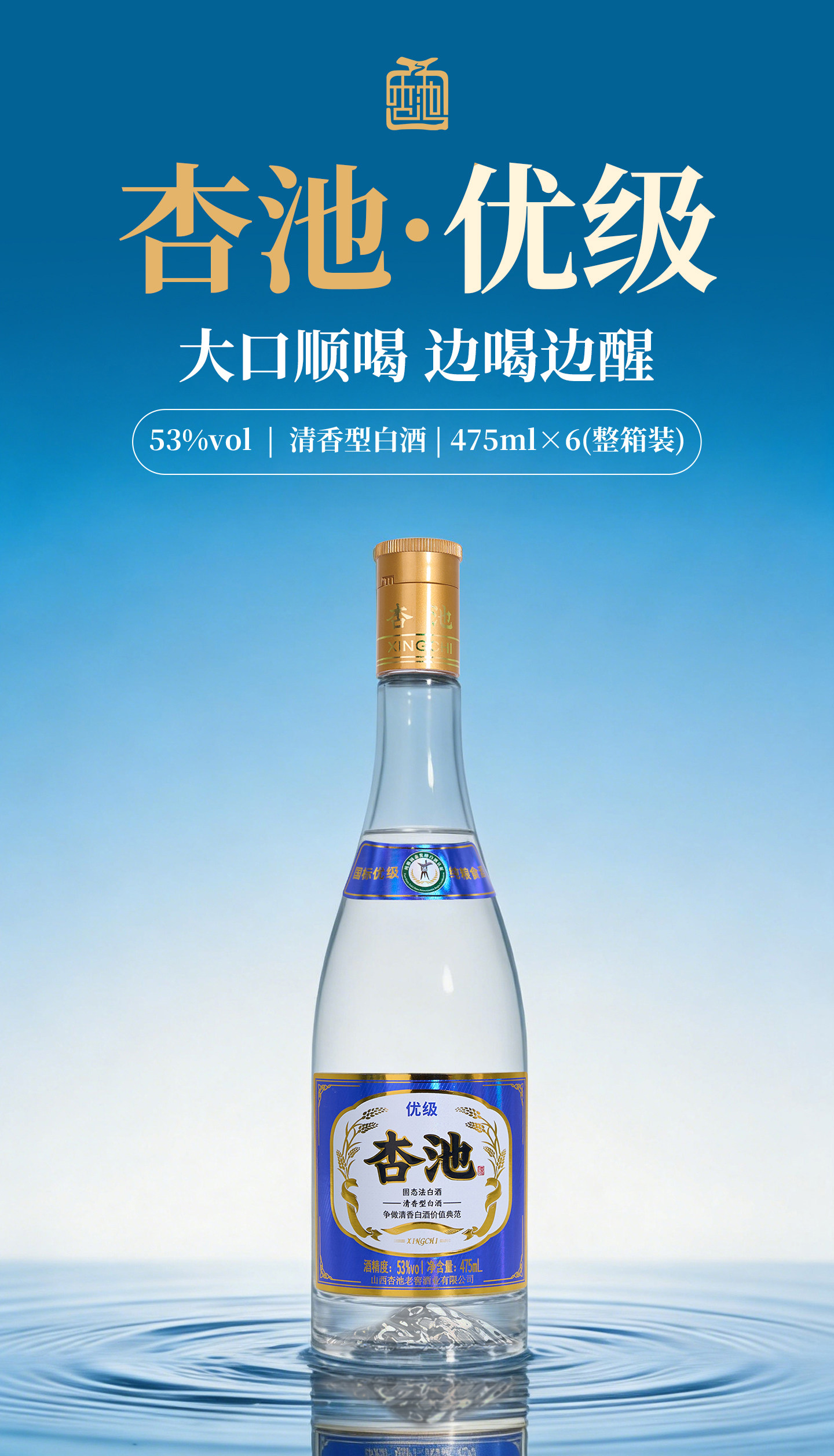 杏池、优级53度白酒、整箱装、475ml*6瓶、纯粮食酿酒、清香型