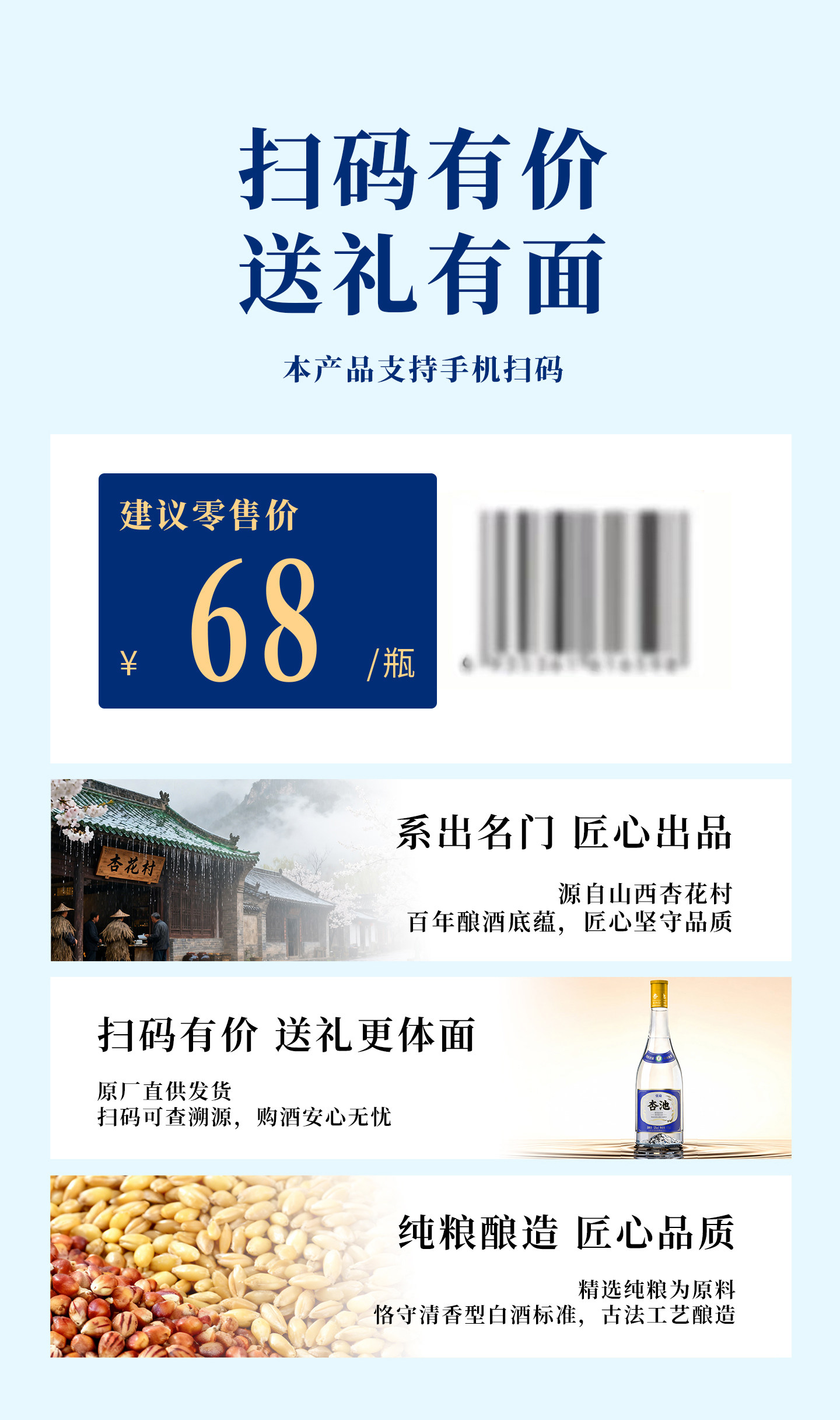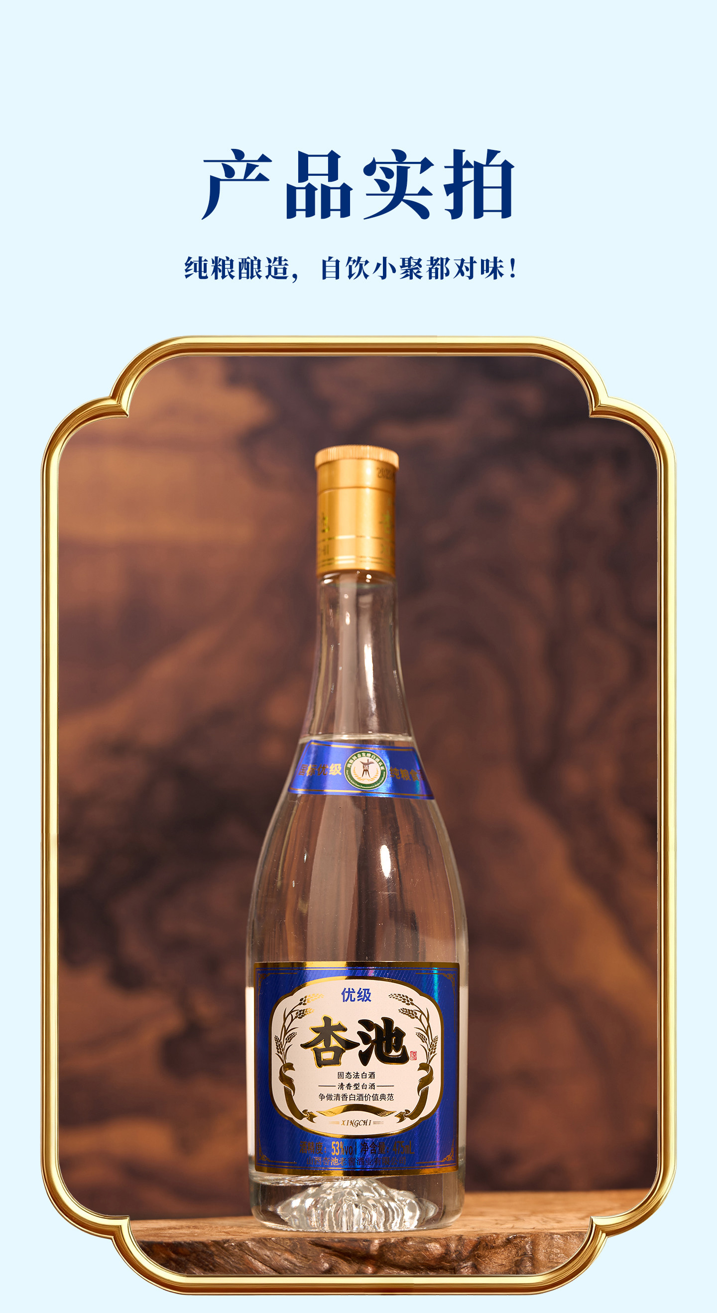 杏池优级53度白酒自己喝整箱475ml*6瓶高度口粮纯粮食酿酒清香型