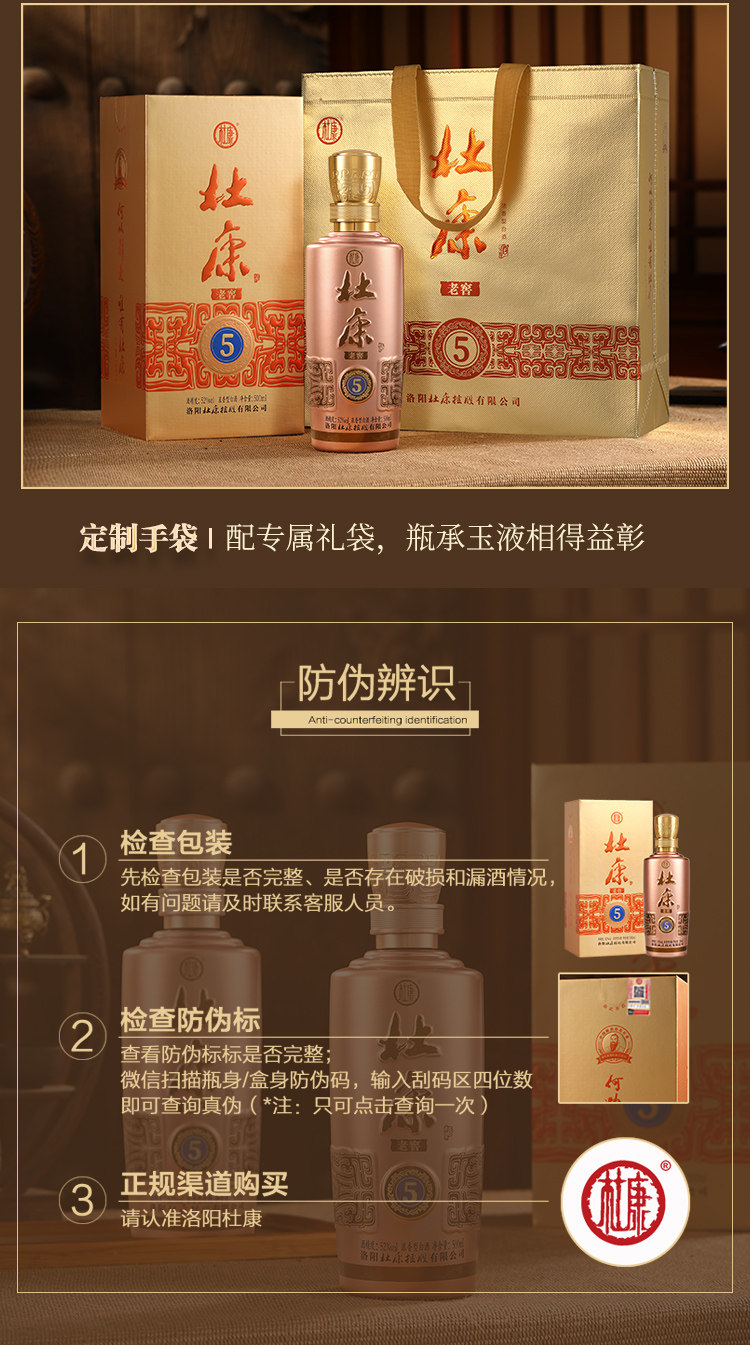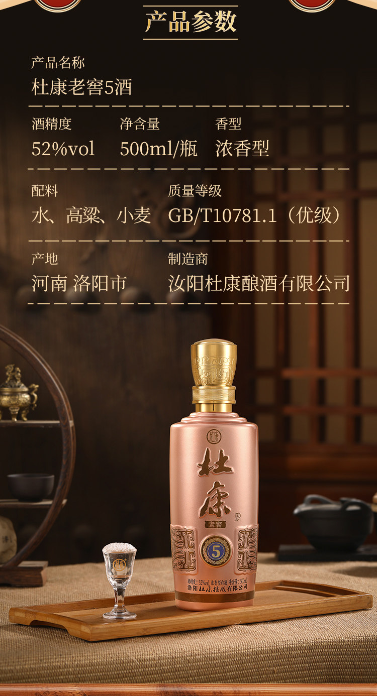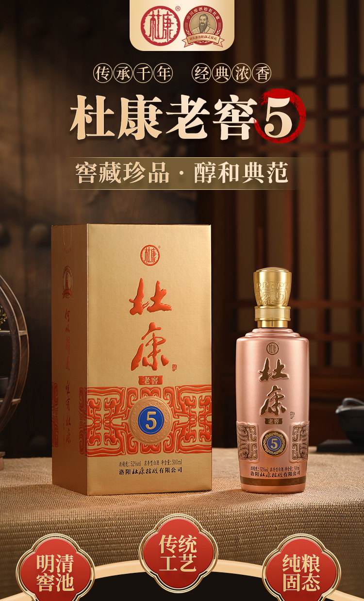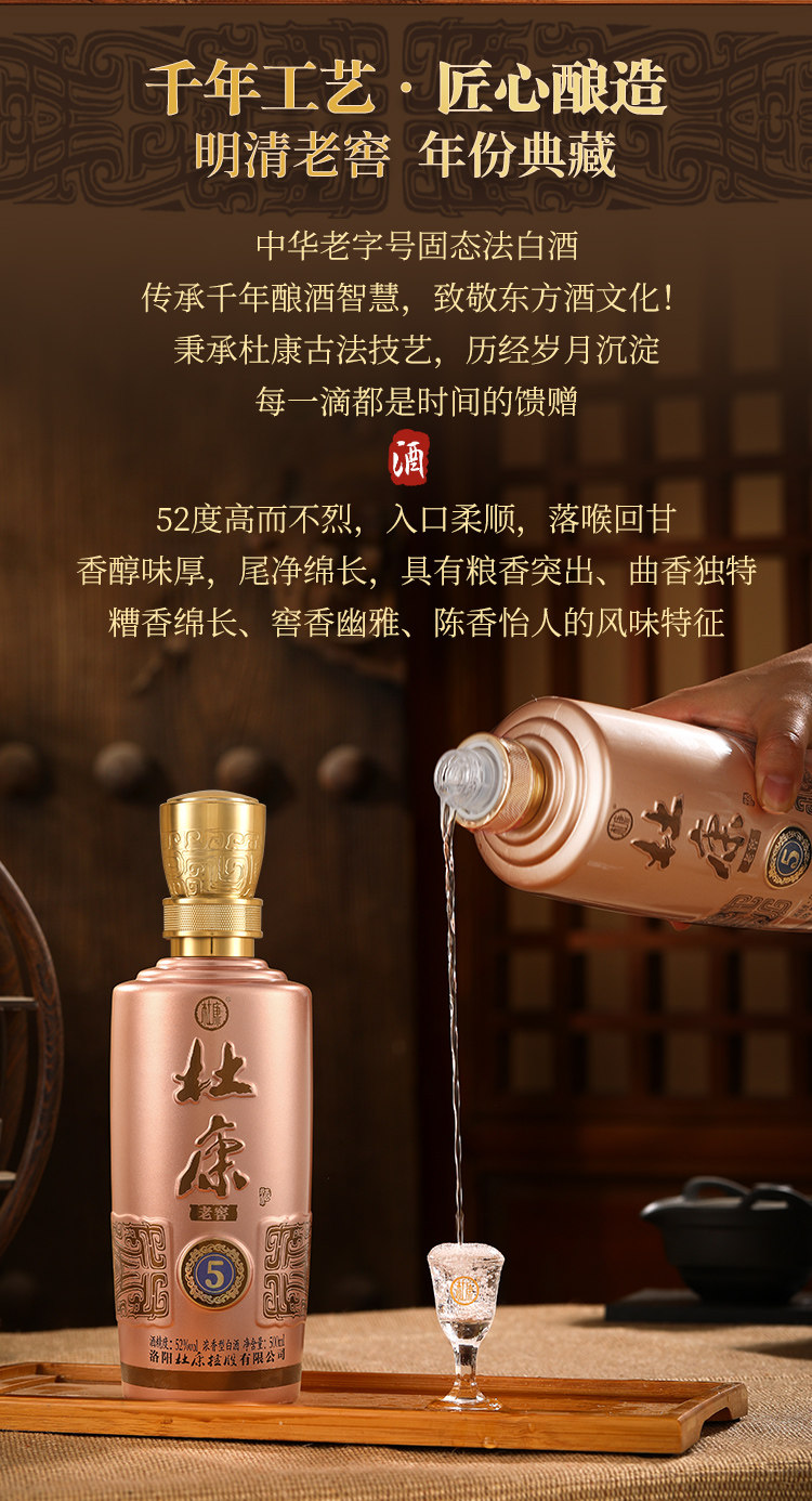 年货送礼 杜康老窖5 浓香型白酒 52度 绵柔口粮酒 婚庆宴请 礼盒装
