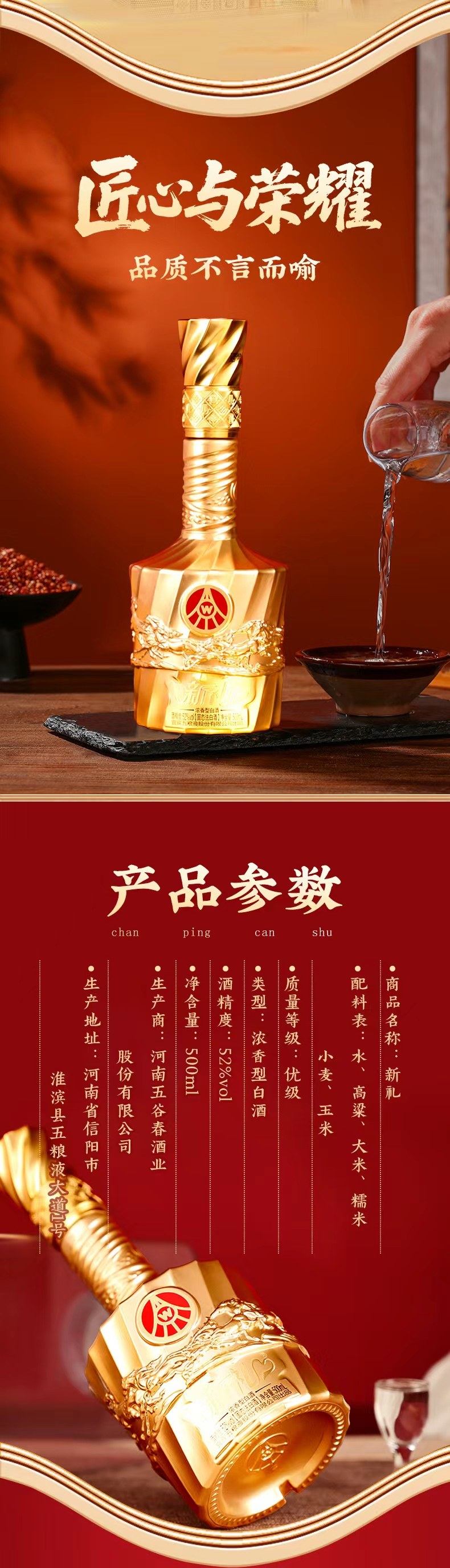 新礼五粮液、金水晶、52度、浓香型白酒、马年礼酒、礼袋