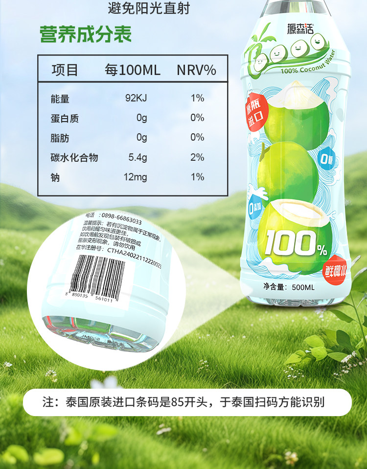 6L装 源森活 NFC 泰国进口 纯天然 香水椰子水