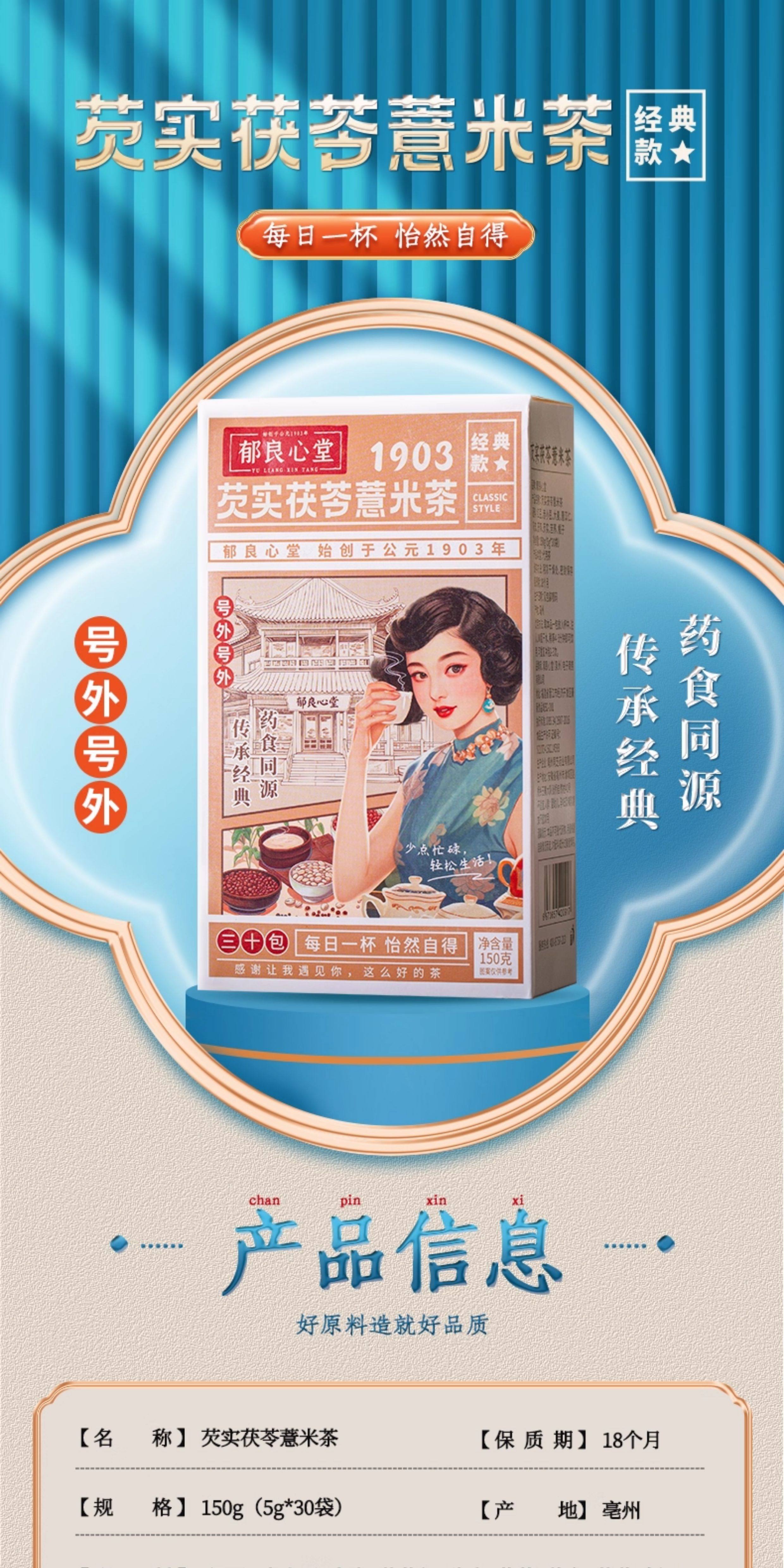 正品官方旗舰店郁良心堂芡实茯苓红豆薏米茶赤小豆男女性养生茶