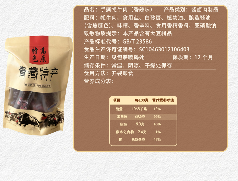 青海特产、手撕牦牛肉干、青藏高原、风干牦牛肉、零食、独立包装、西宁顺丰