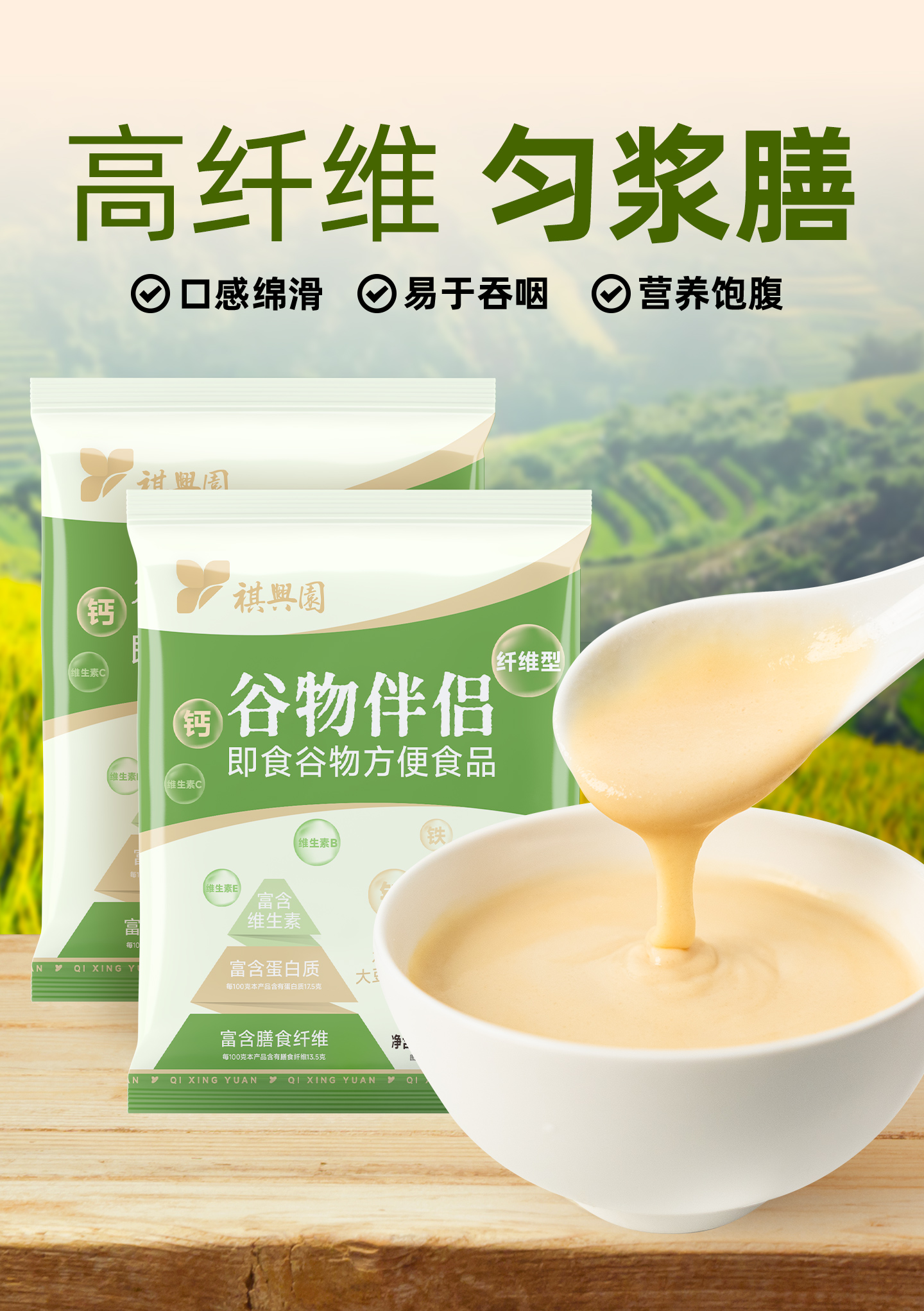 祺兴园、高纤维米粉、中老年人、代餐、米糊、成人早餐、养胃