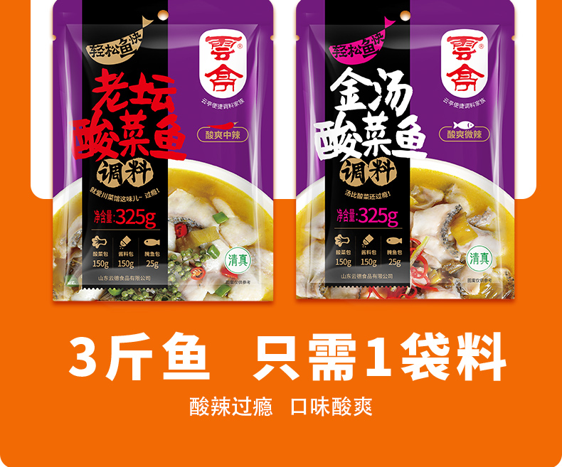 云亭、酸菜鱼调料包、家用、小包装、金汤鱼、料理包、清真料包