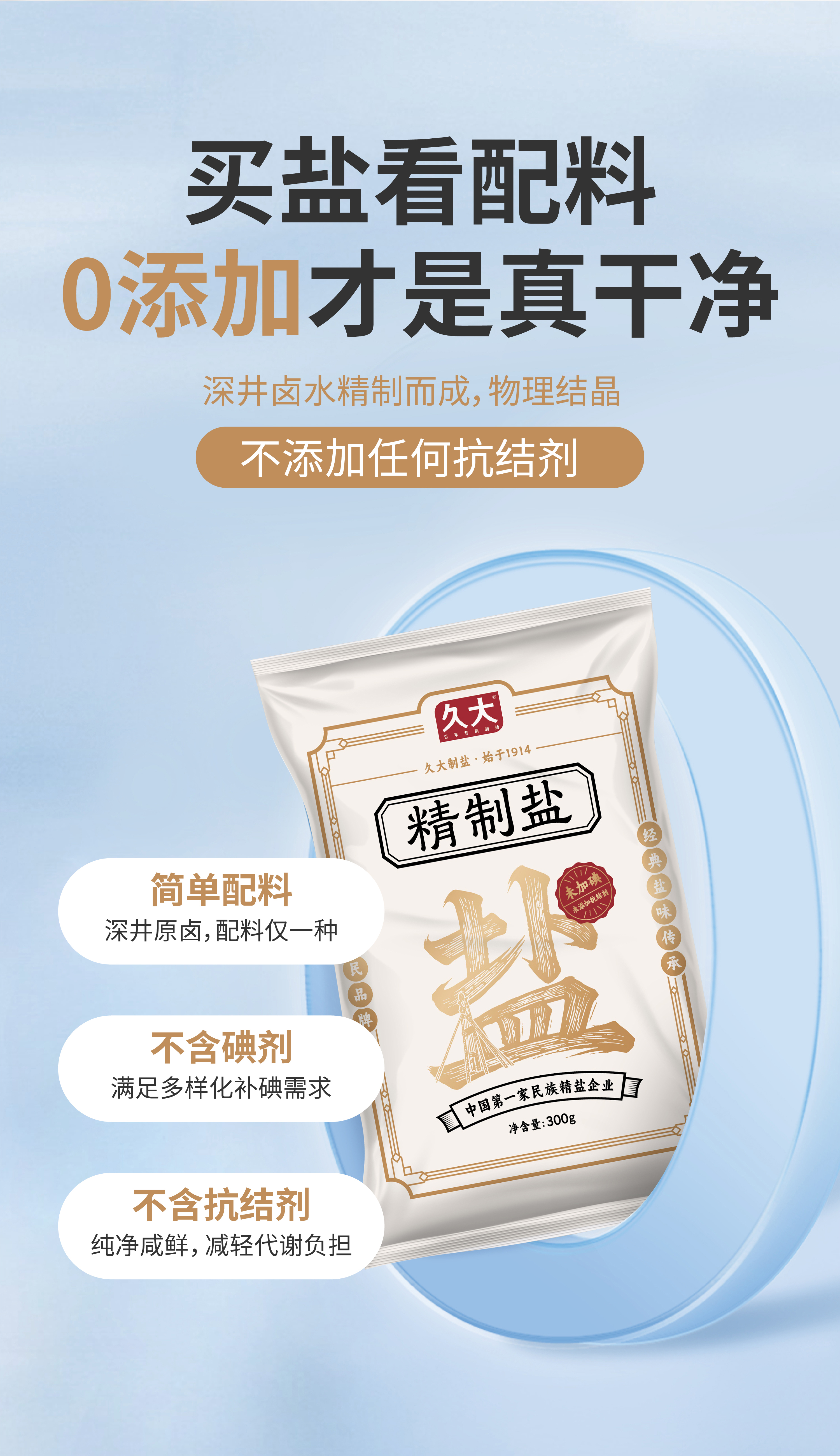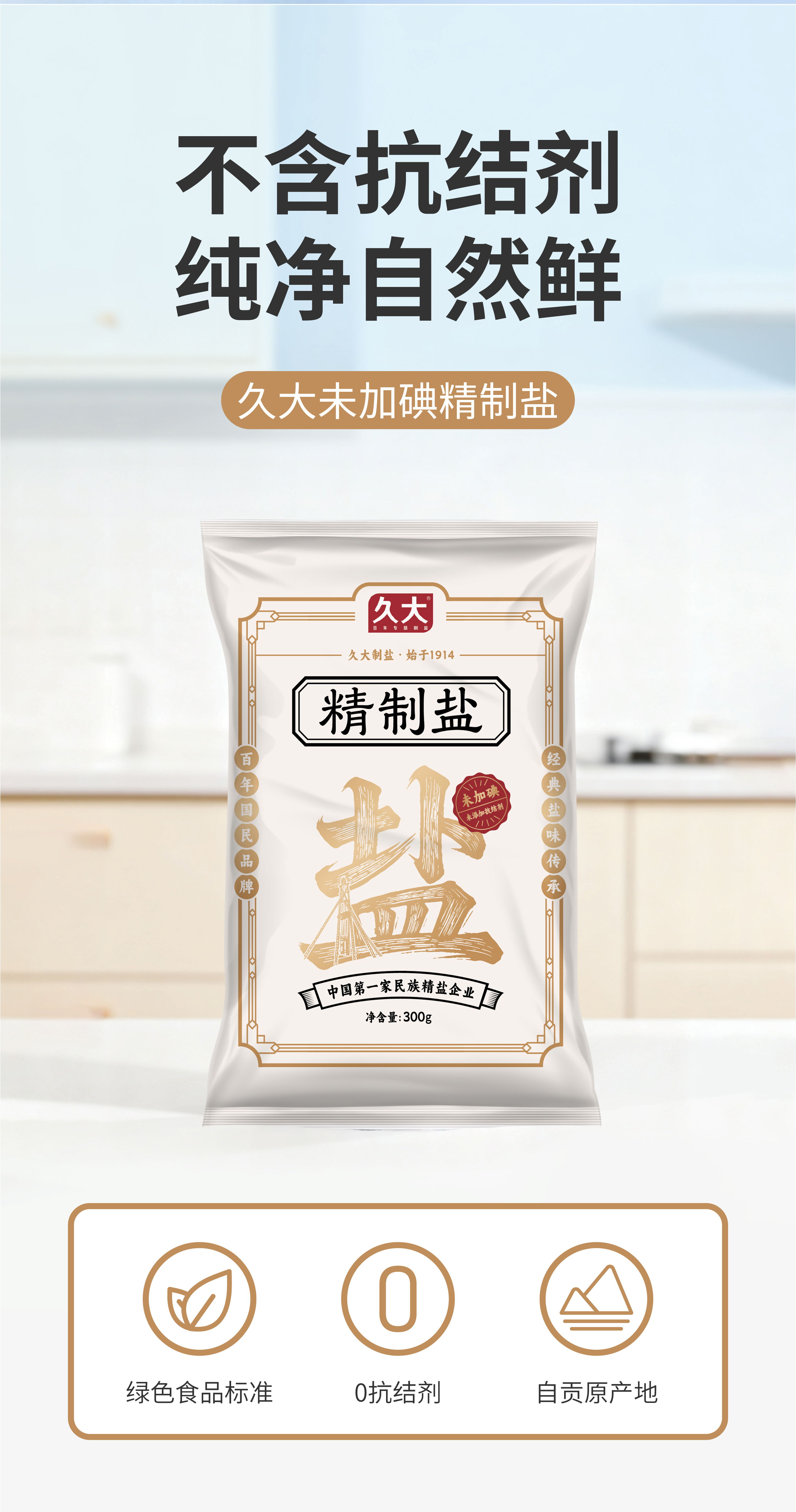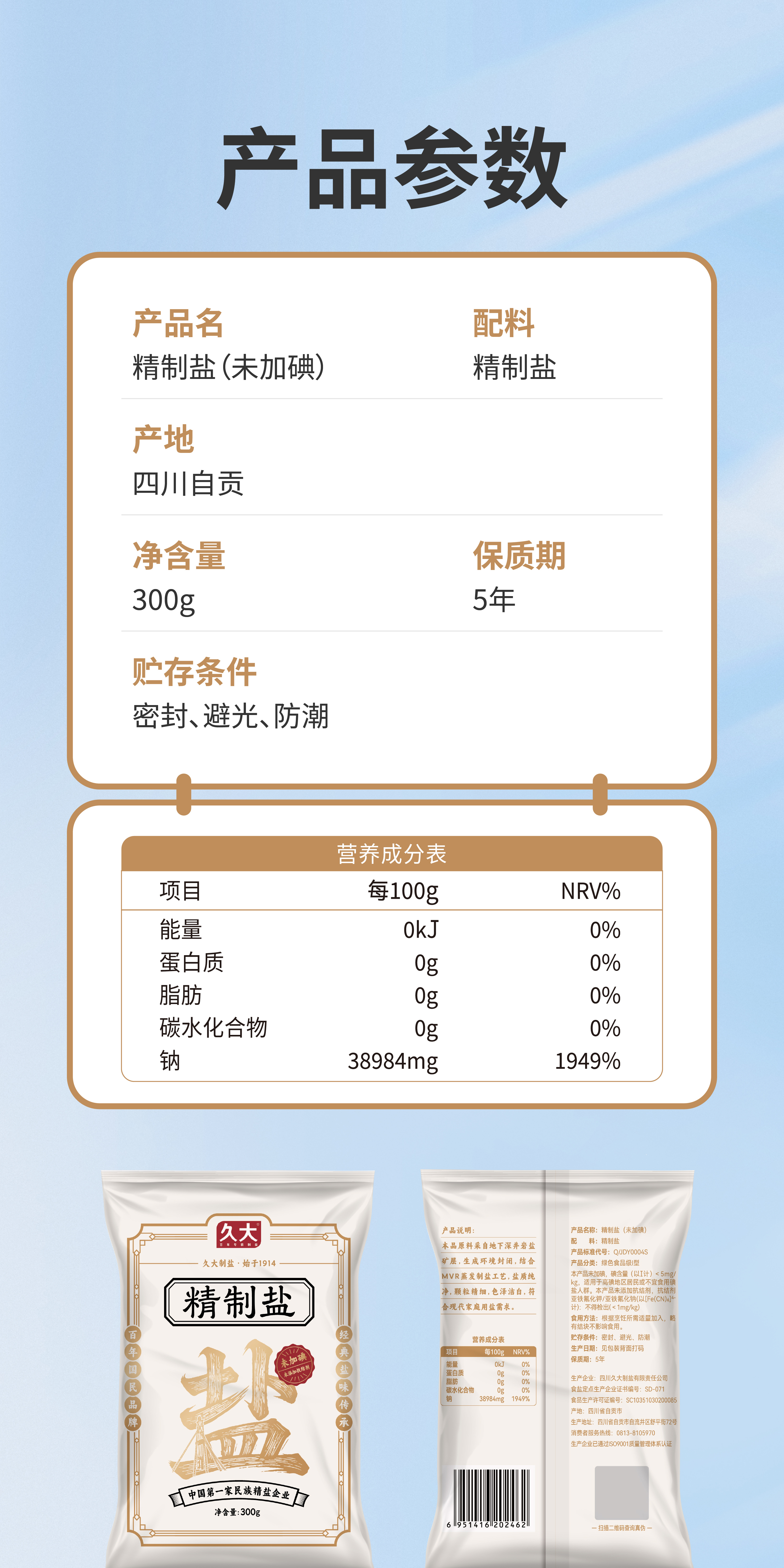 拍1发5、久大自贡、0抗结剂、深井盐、300g、家用食盐、未加碘