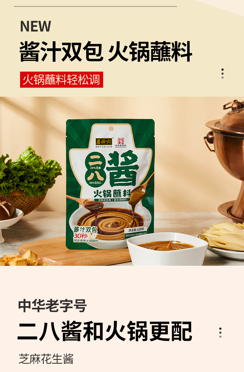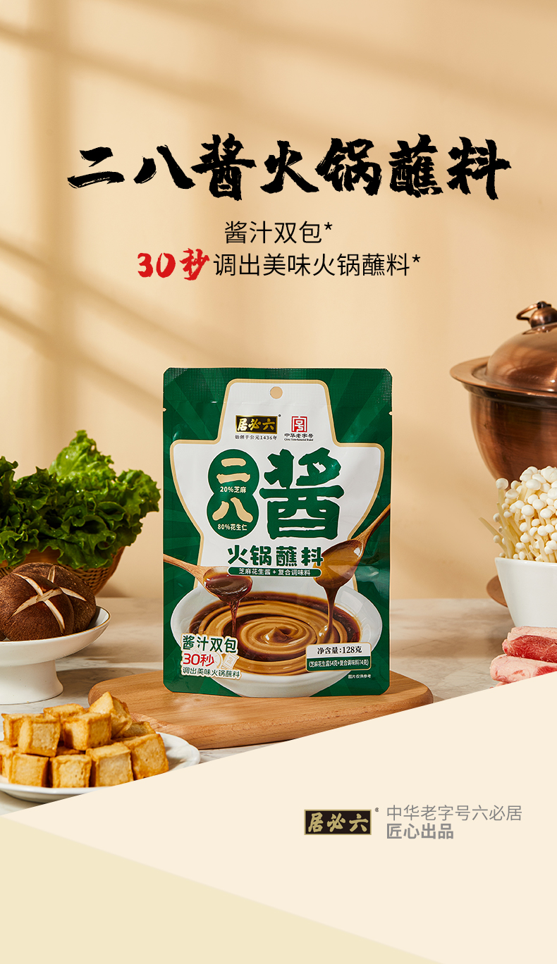 六必居二八酱火锅蘸料4袋家用麻酱调料涮羊肉酱料拌面芝麻酱调料