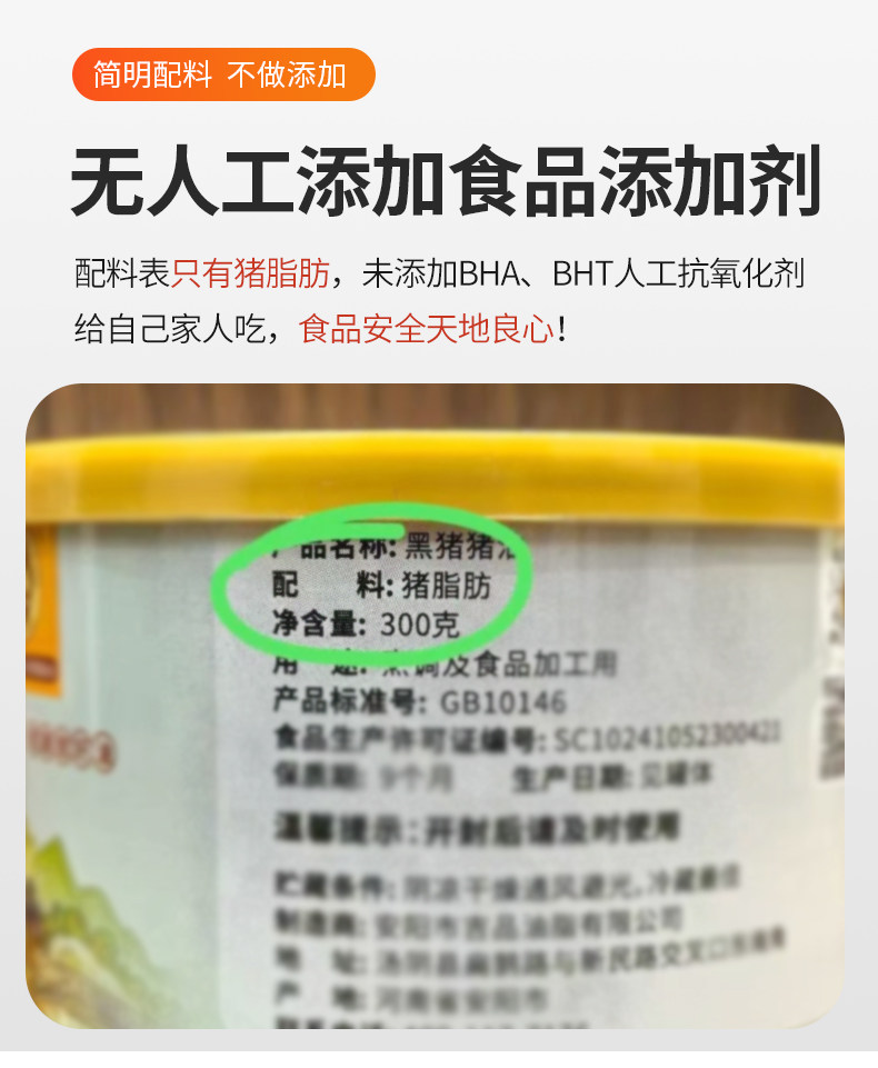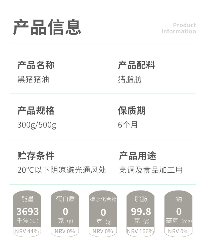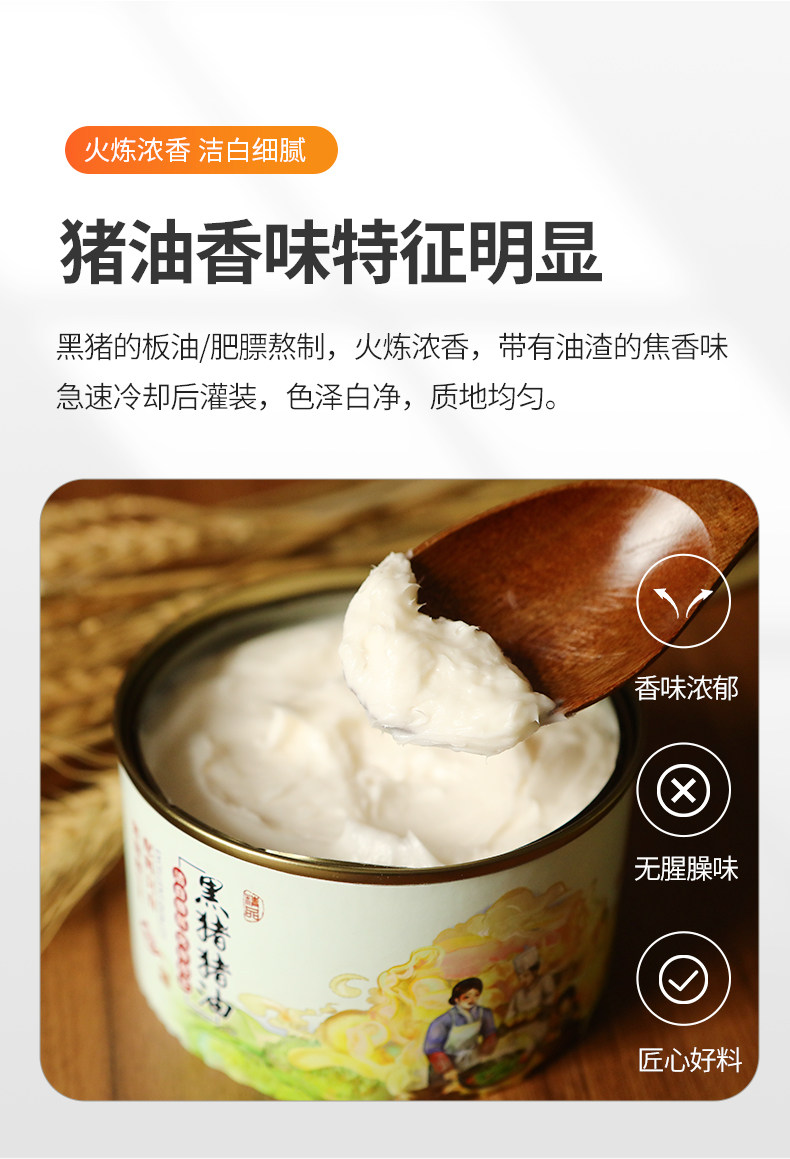 醇臻黑猪、猪油、家用精炼、猪大油、浓焦香、熟猪油、烘焙专用