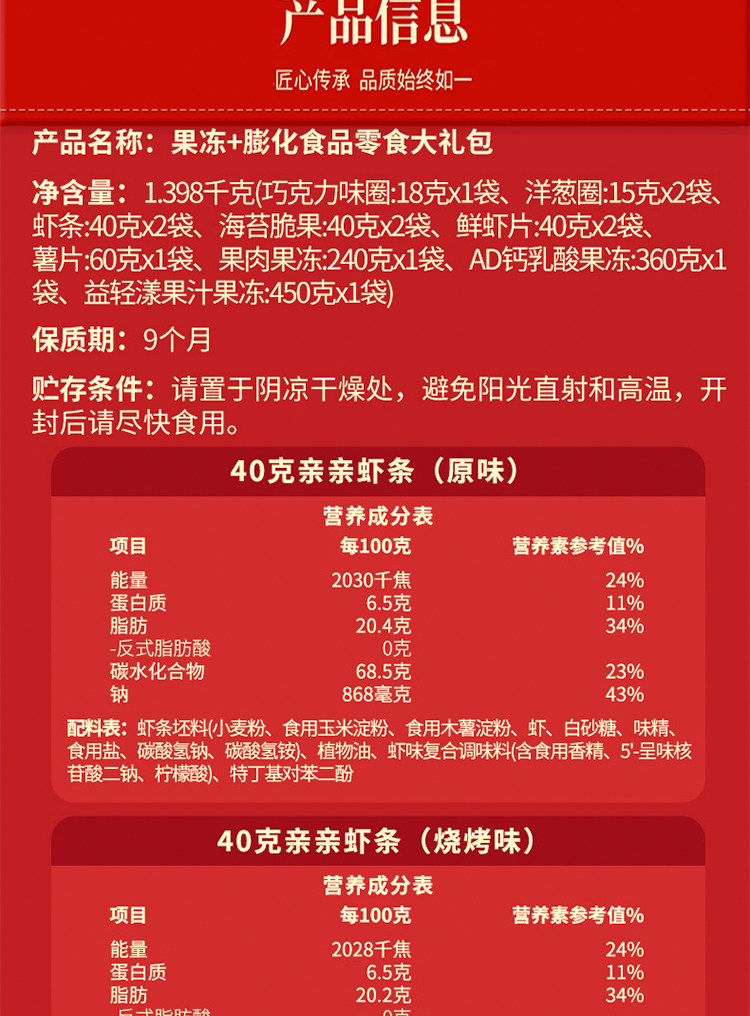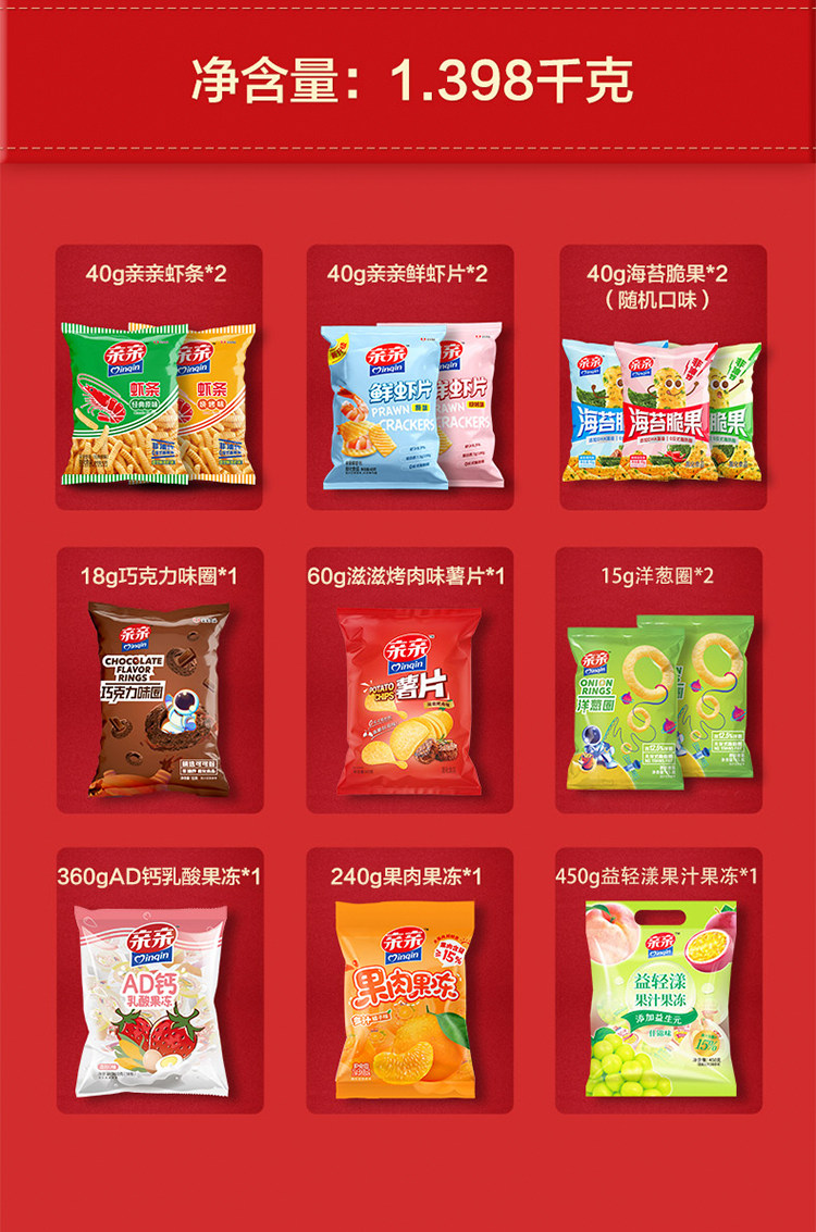 亲亲 大礼包 零食 膨化 水果冻 虾条 薯片